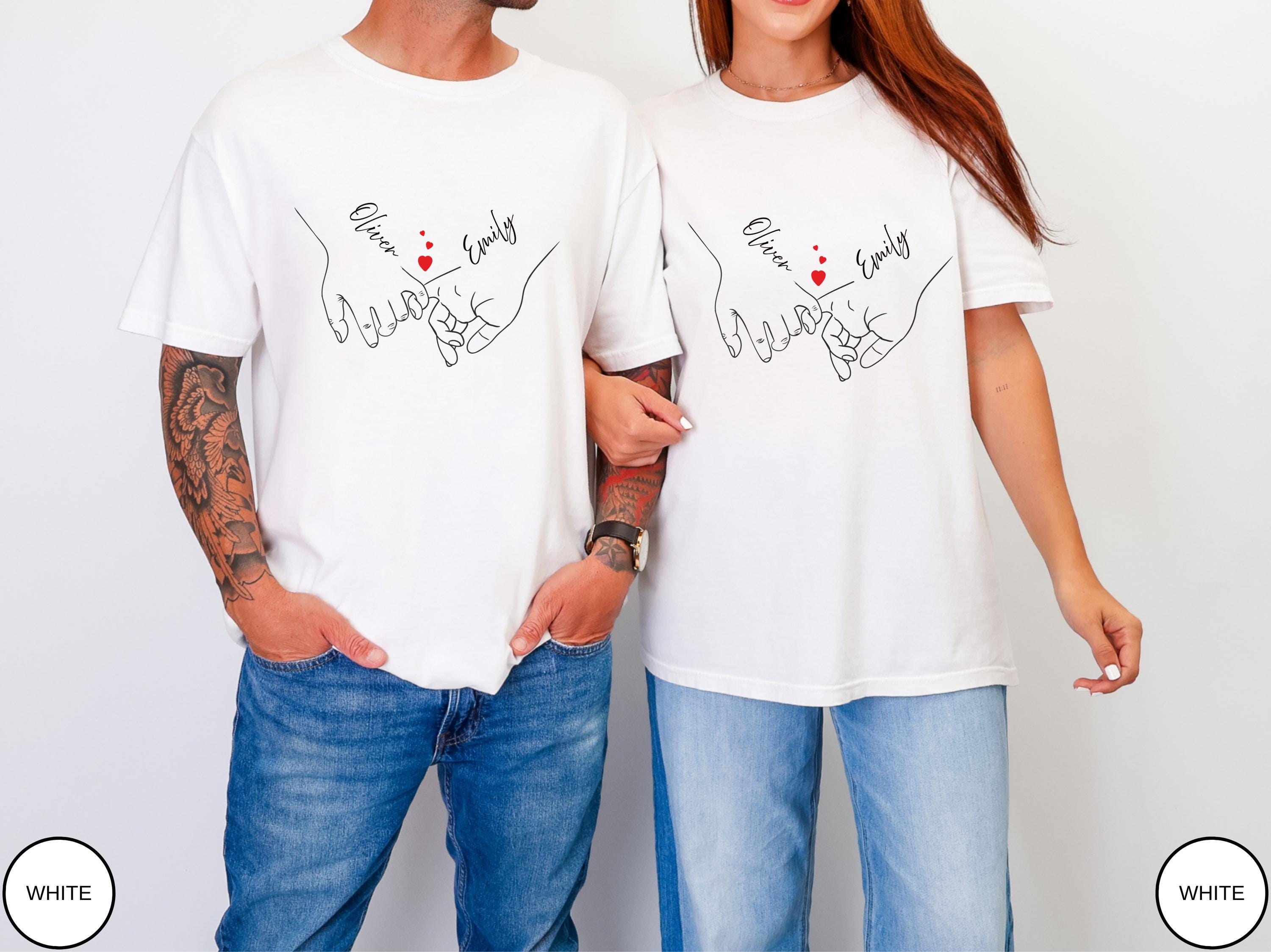 Celebrate love with this Comfort Colors Matching Couple T-Shirt set! Featuring a minimalist pinky promise design with custom names, these personalized shirts make a perfect anniversary gift, Valentine’s Day outfit, or everyday reminder of your bond. A thoughtful and unique gift idea for boyfriend and girlfriend, husband and wife, or any couple who wants to match in style.