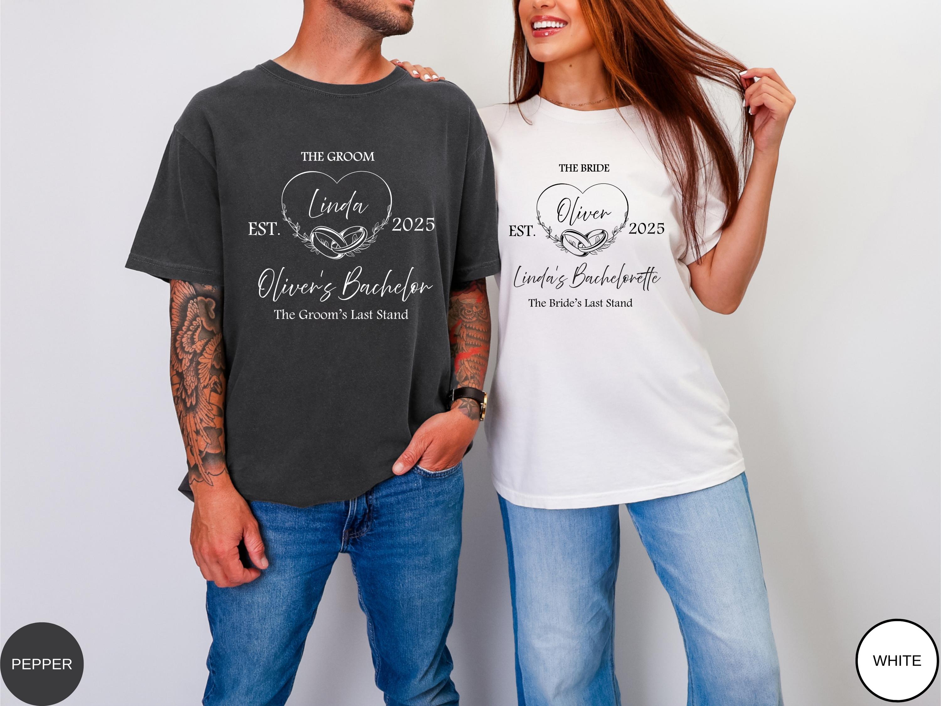 Celebrate love in style with these Comfort Colors Bride & Groom Shirts! Perfect for bachelor and bachelorette parties, weddings, anniversaries, or as a fun gift for couples. Personalized with names and dates, these matching tees make unforgettable keepsakes for every special occasion.
