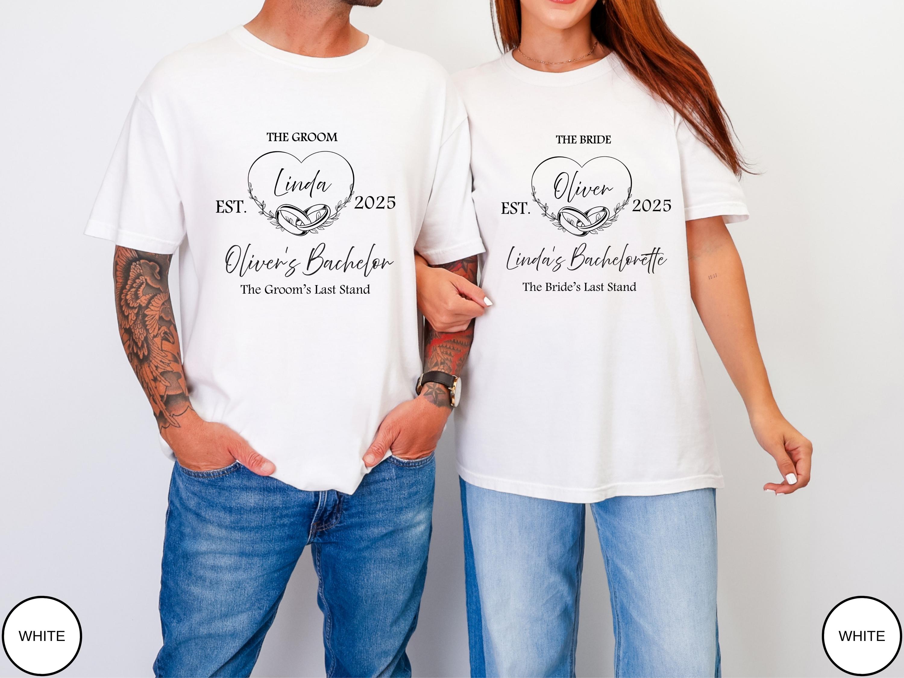 Celebrate the final fling in style with these personalized bachelor and bachelorette party shirts, designed for the perfect joint send-off. These matching Comfort Colors tees feature custom names and dates, making them the ultimate keepsake for the Groom and Bride's "Last Stand."