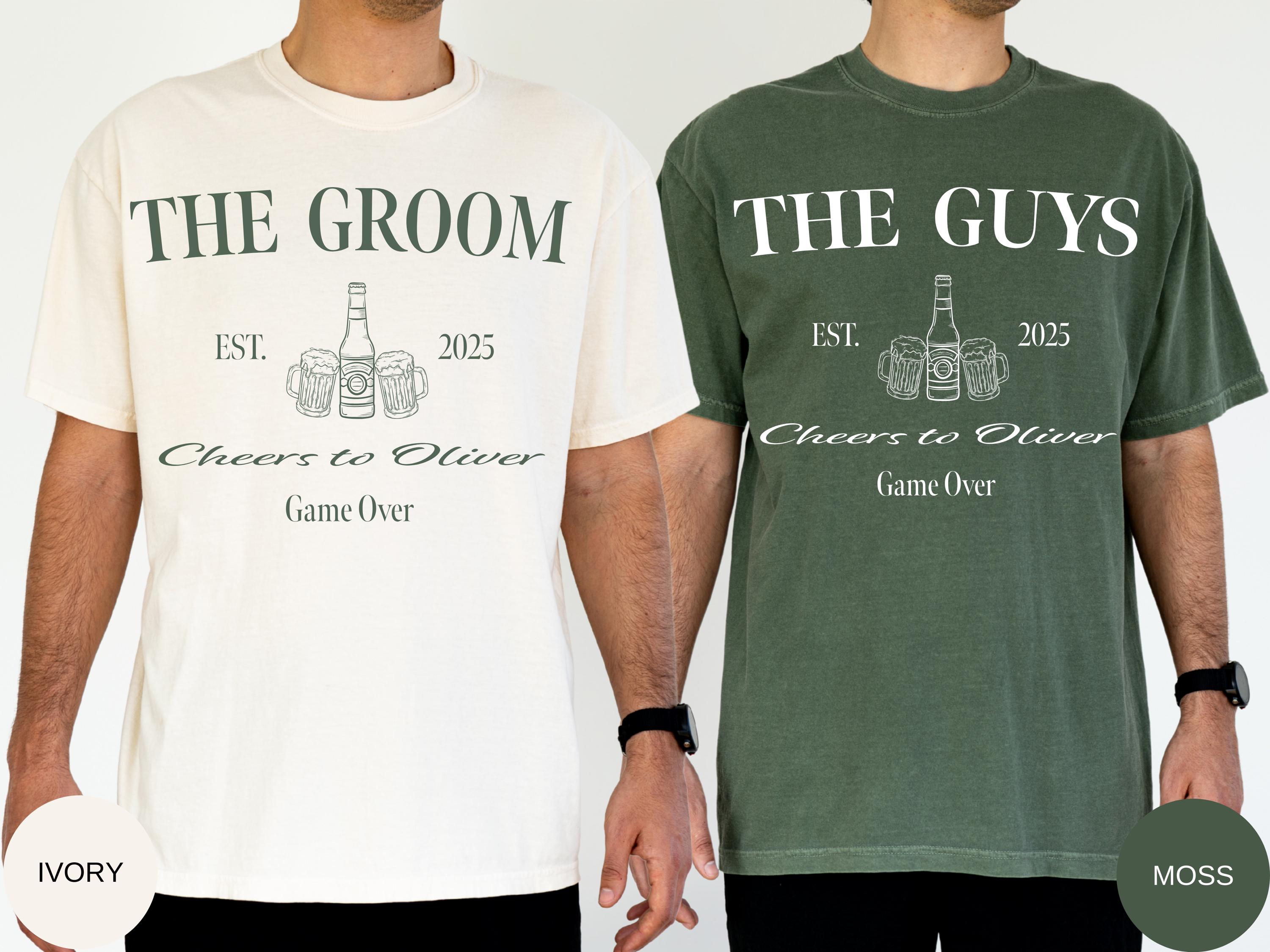 Celebrate the groom’s big night with these Comfort Colors Bachelor Party Shirts! Perfect matching tees for the groom and his groomsmen. Featuring a fun “Game Over / Cheers to the Groom” design, these shirts make the ultimate bachelor party outfit and a great wedding keepsake. Ideal for bachelor weekends, guys’ trips, or wedding party gifts
