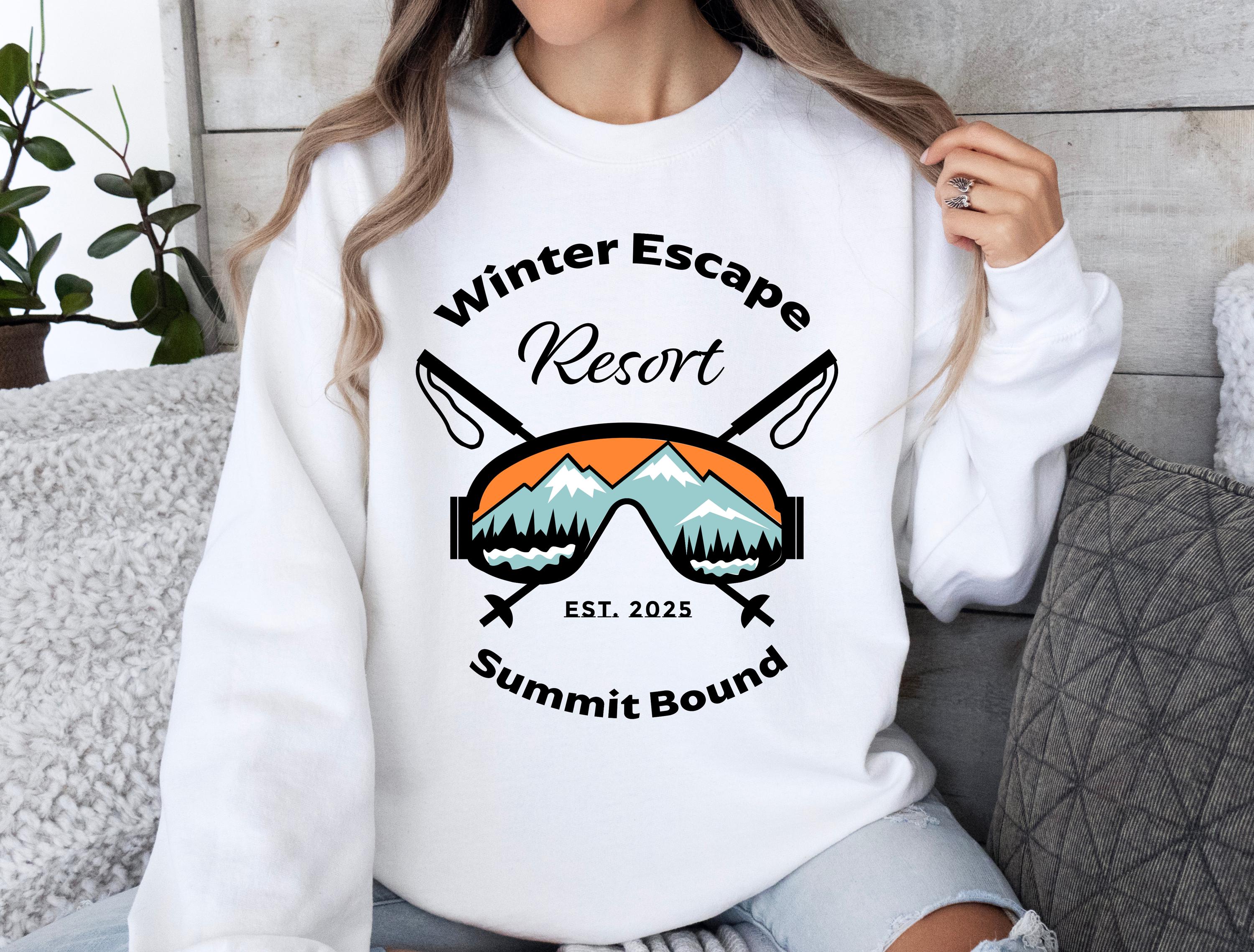 Cozy up in this Winter Escape ski sweatshirt featuring retro ski goggles and snowy mountain peaks. Perfect for ski trips, winter vacations, apres ski nights, or mountain lodge weekends. Makes a great gift for skiers, snowboarders, or anyone who loves the alpine lifestyle.