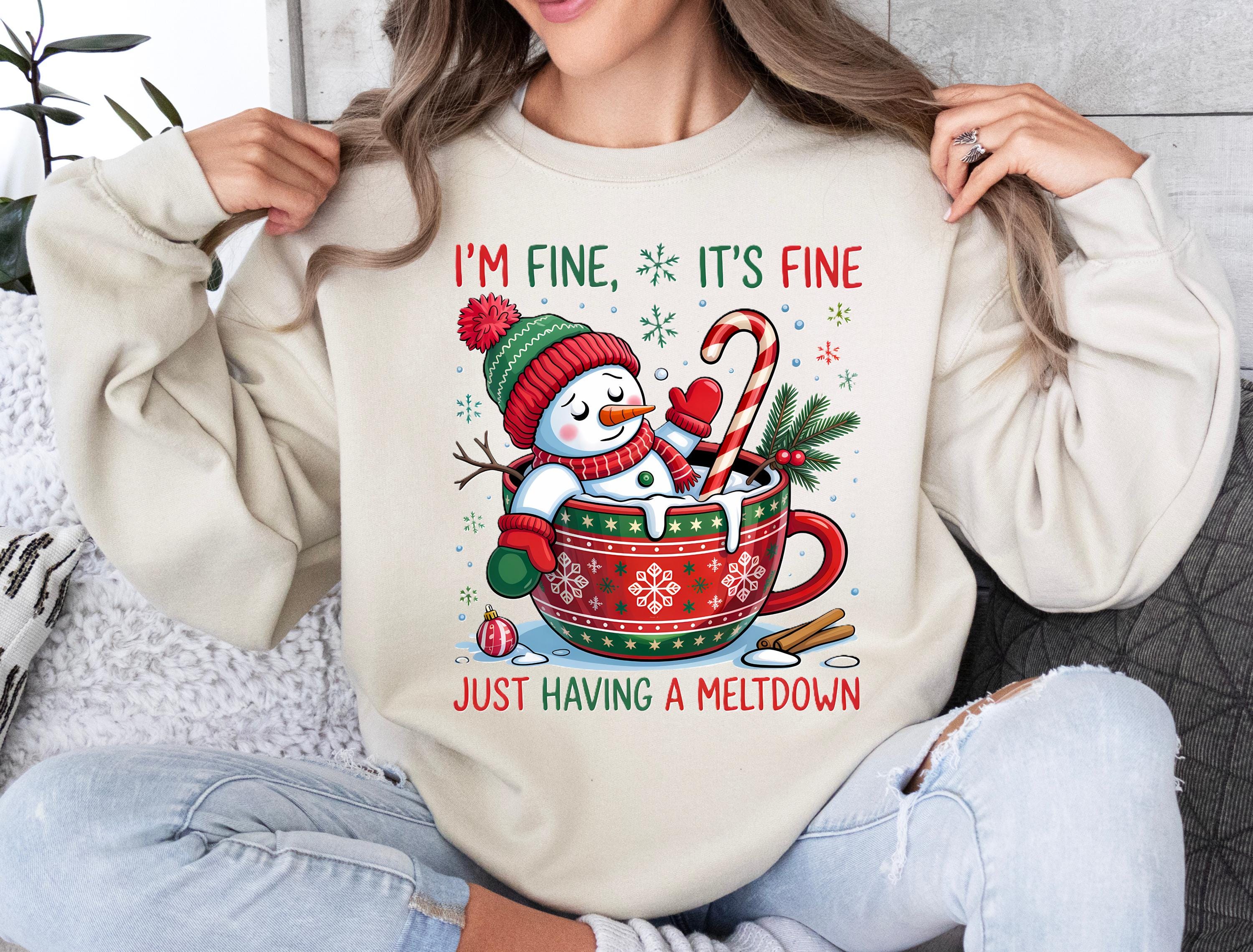 Get festive and funny with this adorable snowman meltdown Christmas sweatshirt! Featuring the playful phrase “I’m Fine, It’s Fine, Just Having a Meltdown,” this cozy sweater is perfect for holiday parties, ugly Christmas sweater contests, or lounging with hot cocoa. Makes a hilarious gift for women, teachers, coworkers, or anyone who loves winter humor. Stay comfy, cheerful, and spread laughs this holiday season! 📌 Product Features (Gildan 64000, 5000B, 5400, 18000)