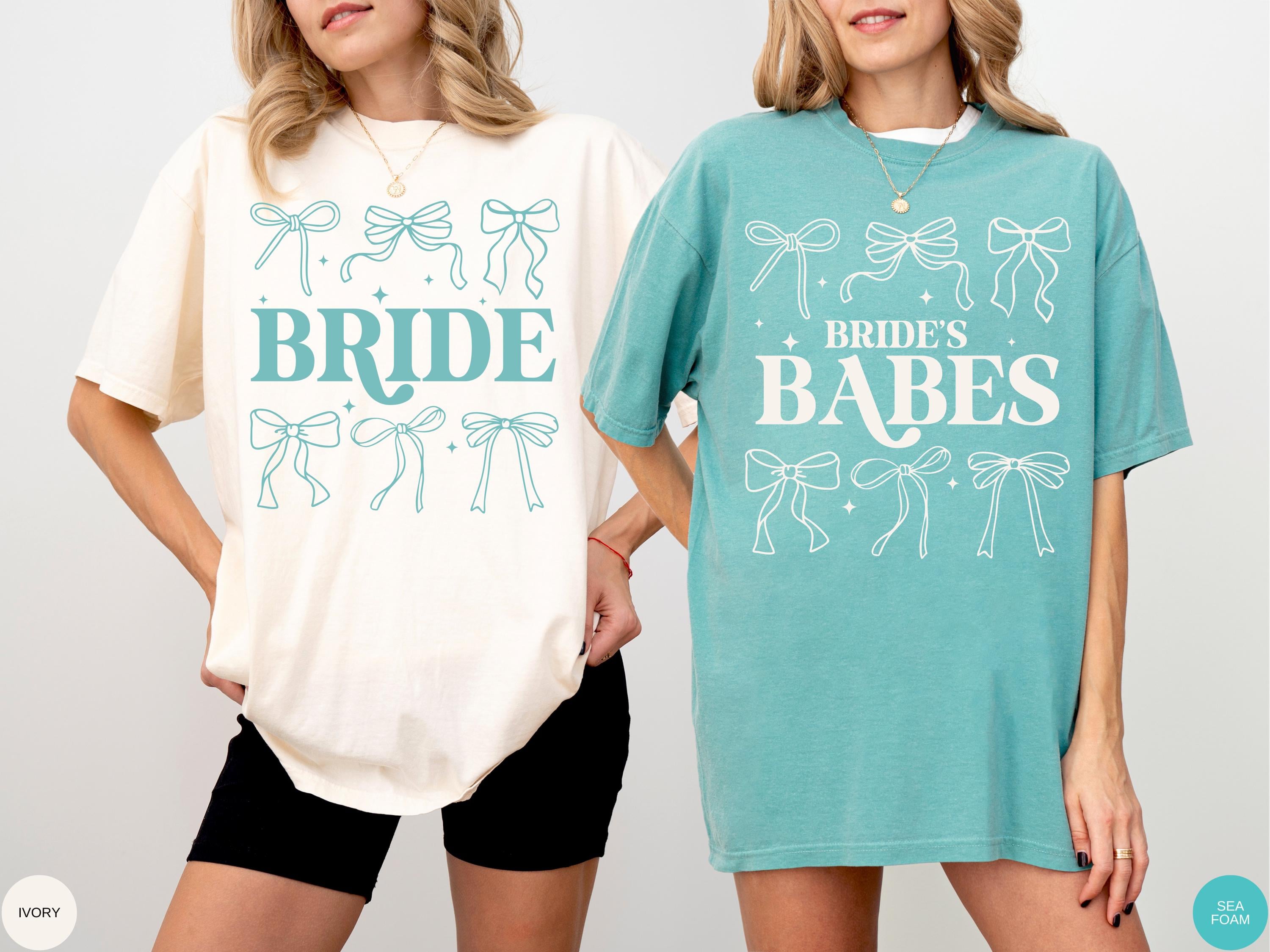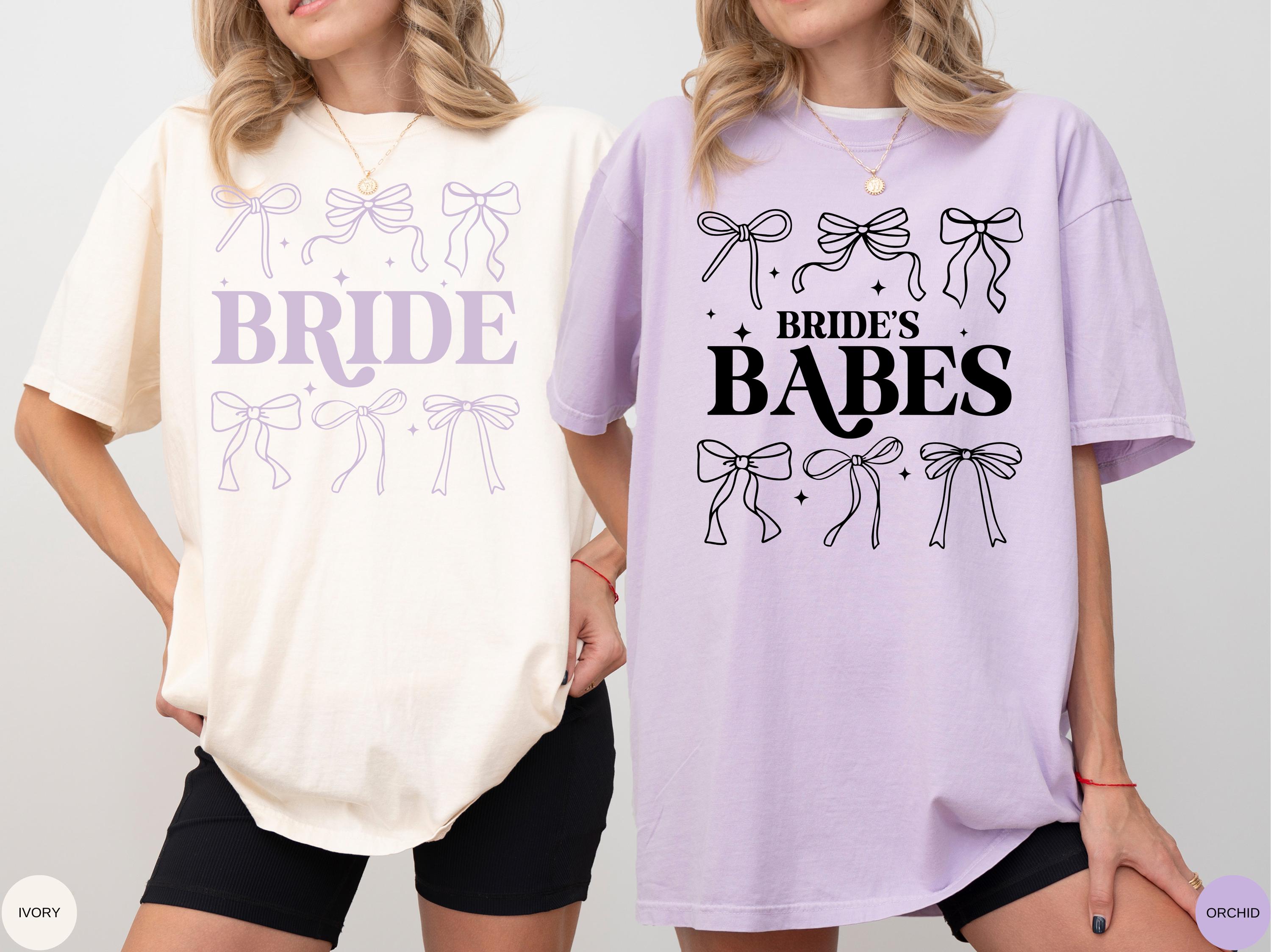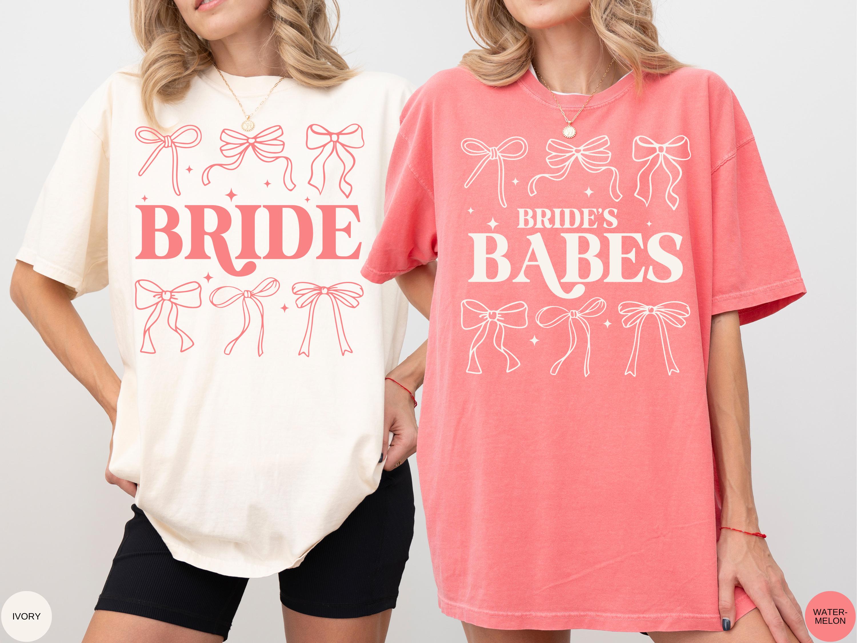Celebrate in style with these Comfort Colors bride and bridesmaid shirts! Perfect for bachelorette parties, wedding weekends, and bridal party events. The “Bride” and “Bride’s Babes” matching tees make a fun and trendy outfit for the entire group. Great gift idea for brides, bridesmaids, and wedding squads who want cute, aesthetic, and Instagram-worthy matching shirts.