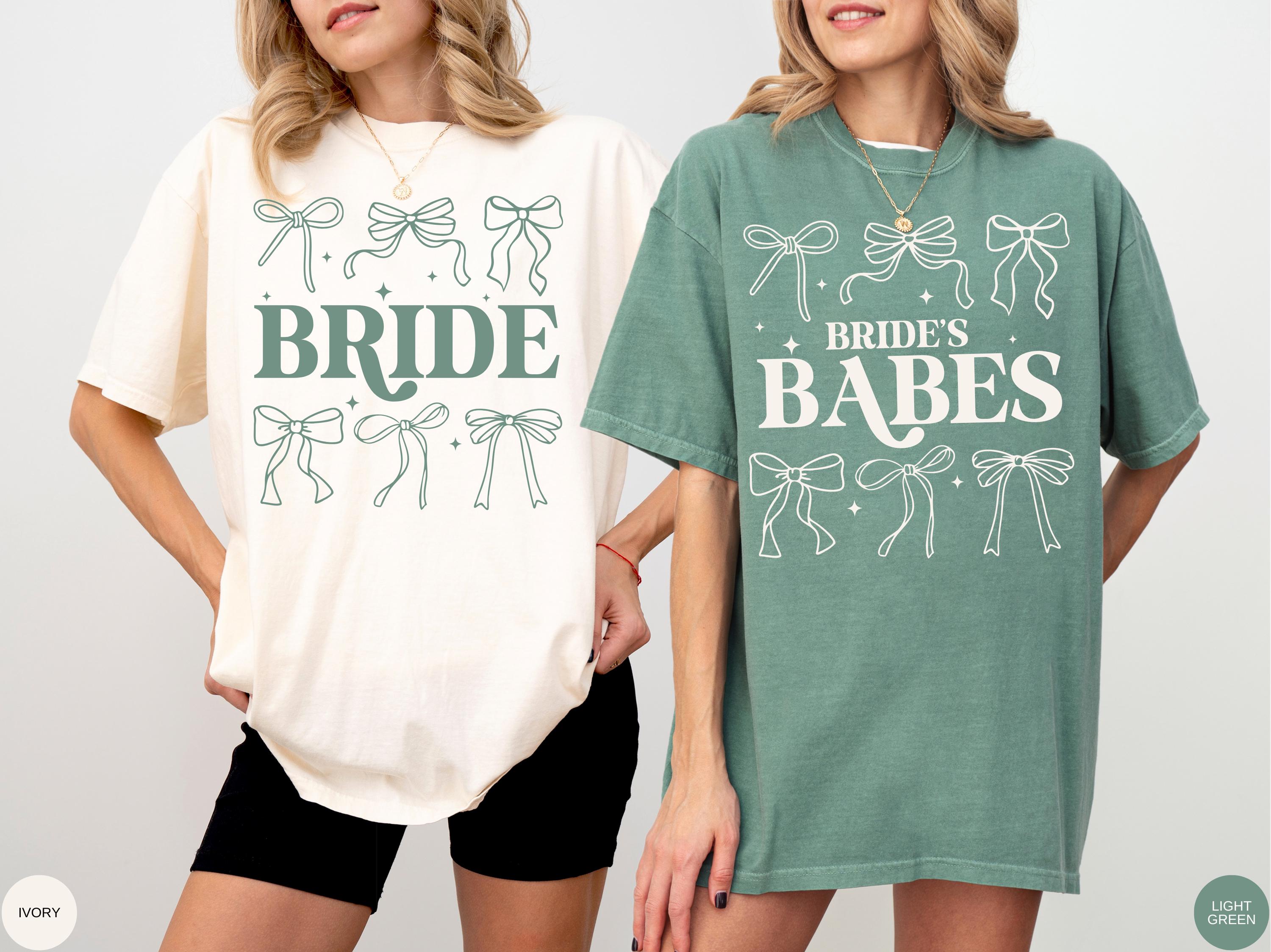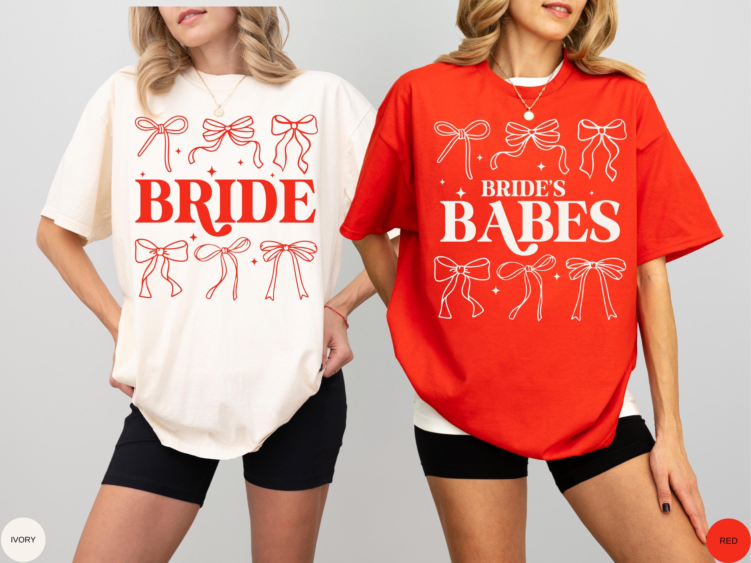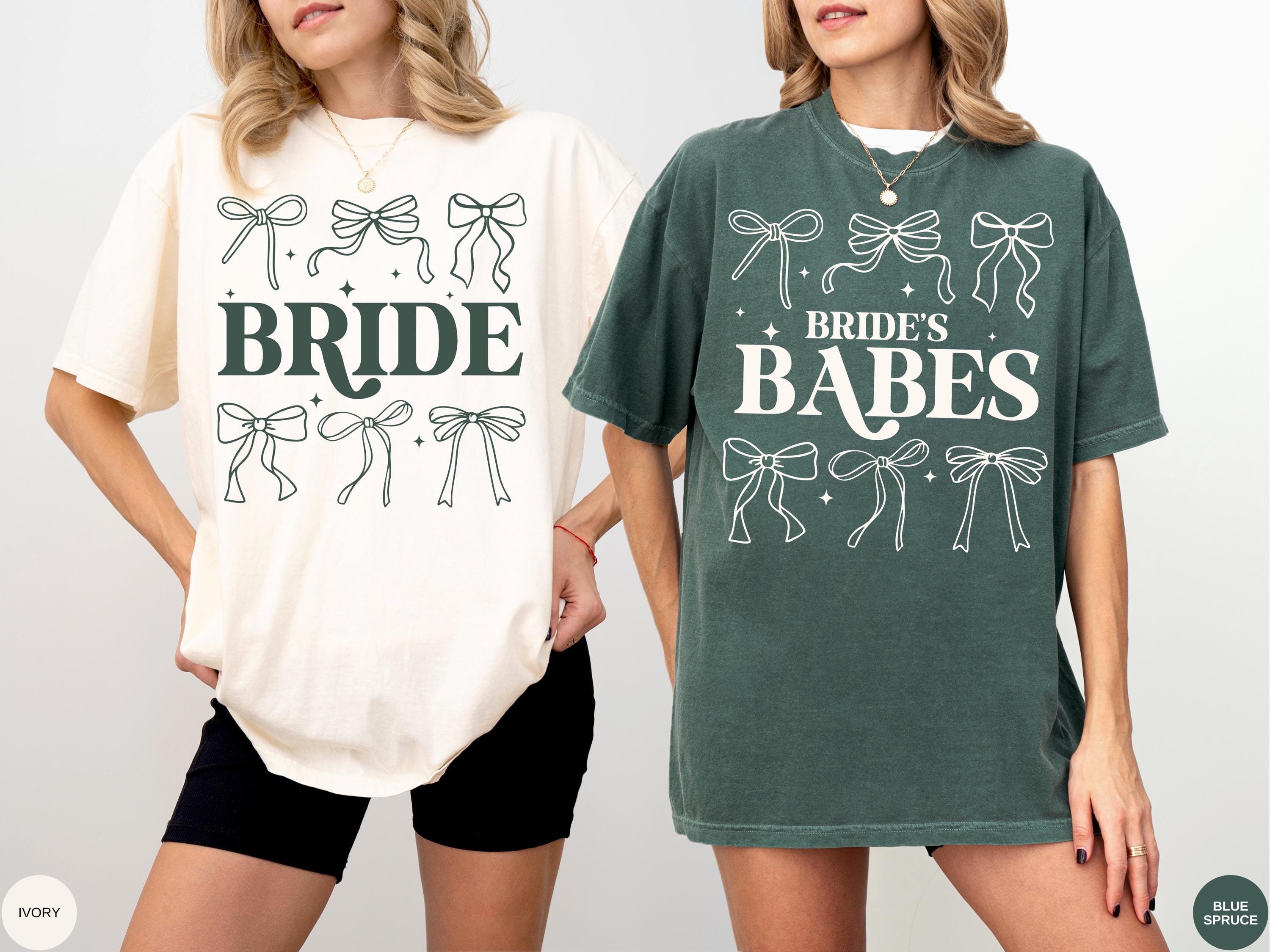 Celebrate in style with these Comfort Colors bride and bridesmaid shirts! Perfect for bachelorette parties, wedding weekends, and bridal party events. The “Bride” and “Bride’s Babes” matching tees make a fun and trendy outfit for the entire group. Great gift idea for brides, bridesmaids, and wedding squads who want cute, aesthetic, and Instagram-worthy matching shirts.