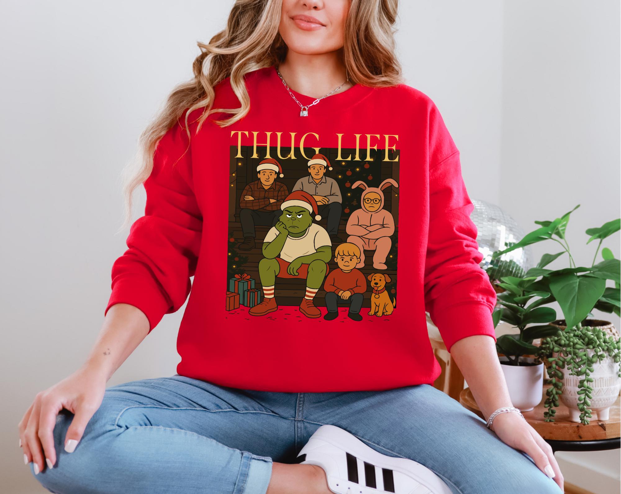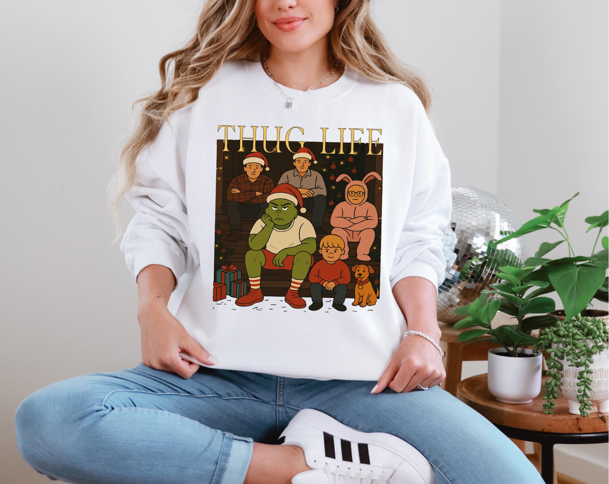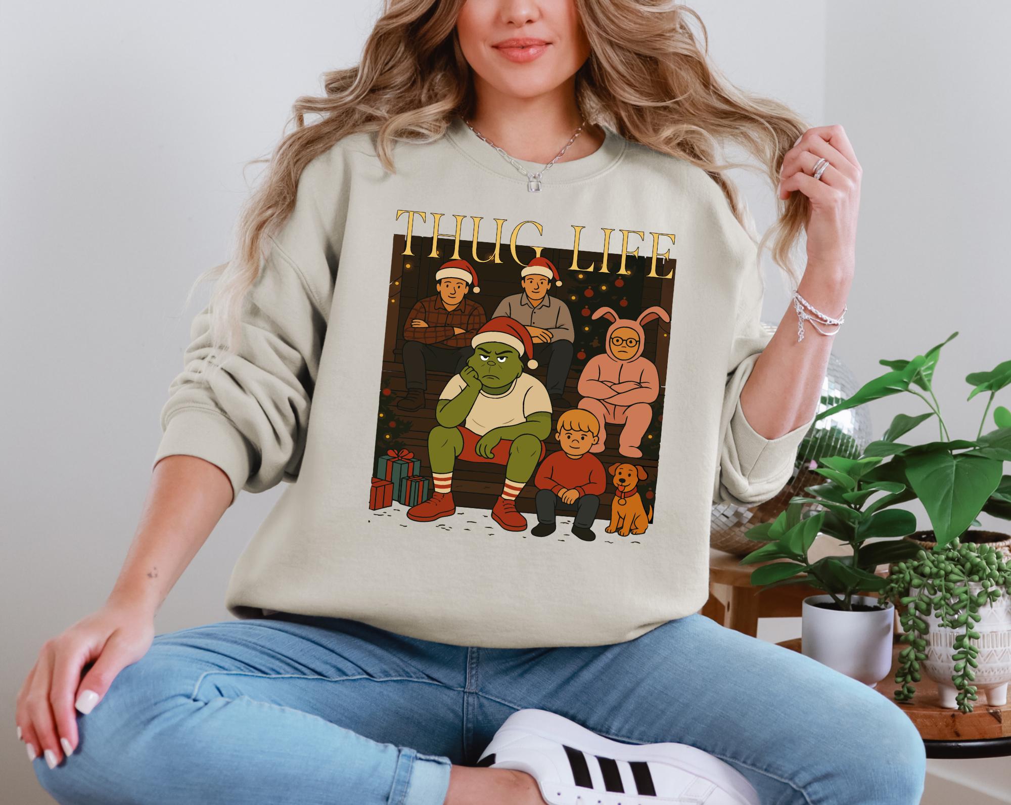 Get into the holiday spirit with this Funny Thug Life Christmas Sweatshirt featuring the Grinch, family vibes, and cozy holiday humor. Perfect for Christmas parties, ugly sweater contests, matching family photos, or as a unique gift for him or her. Celebrate the season with comfort and style while showing off your playful holiday side! 🎄✨