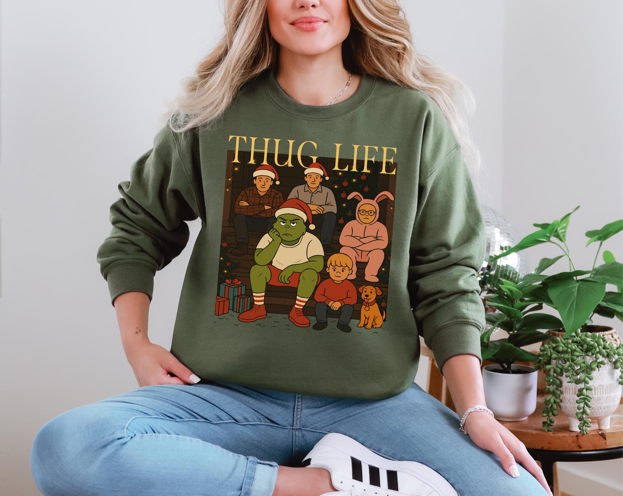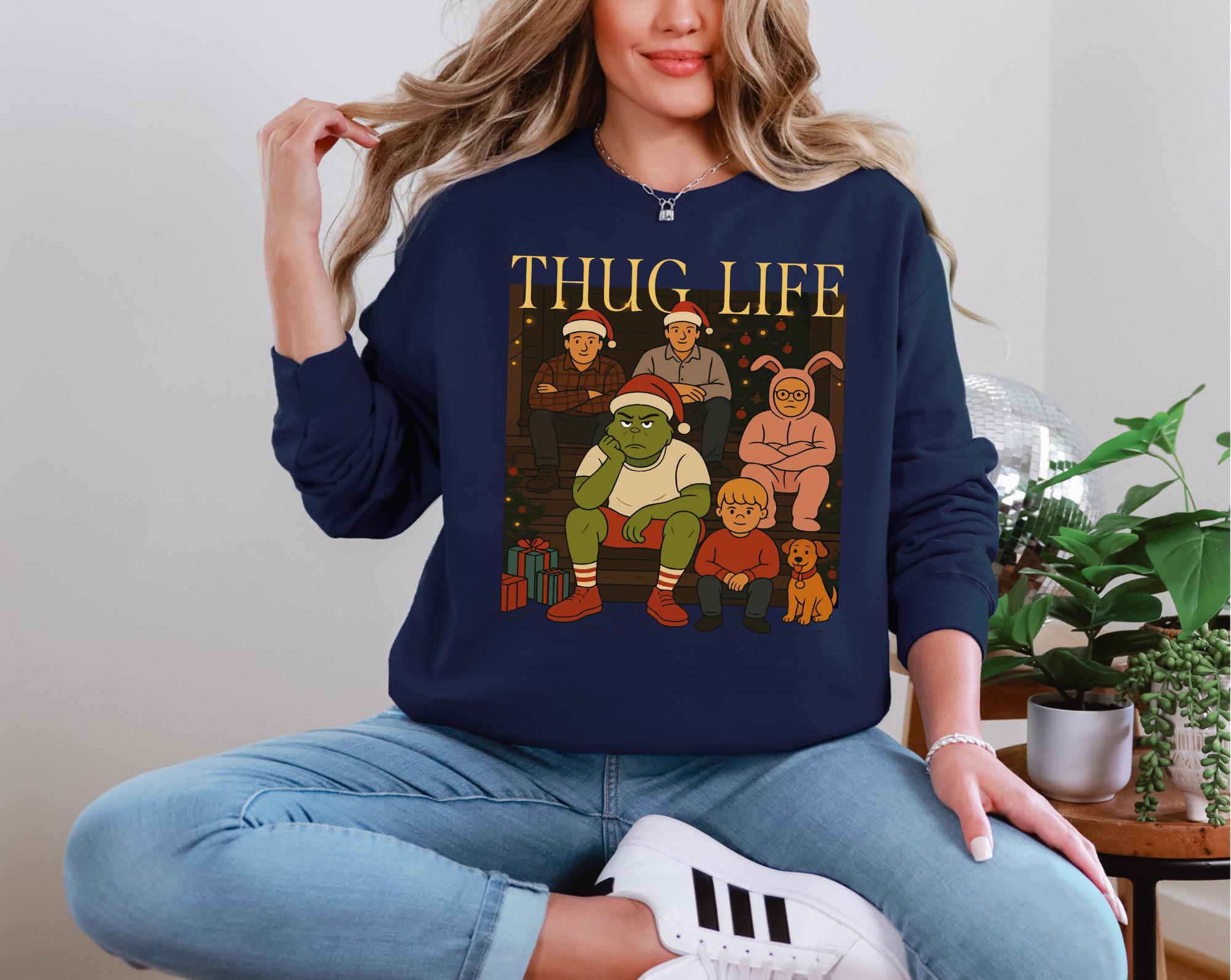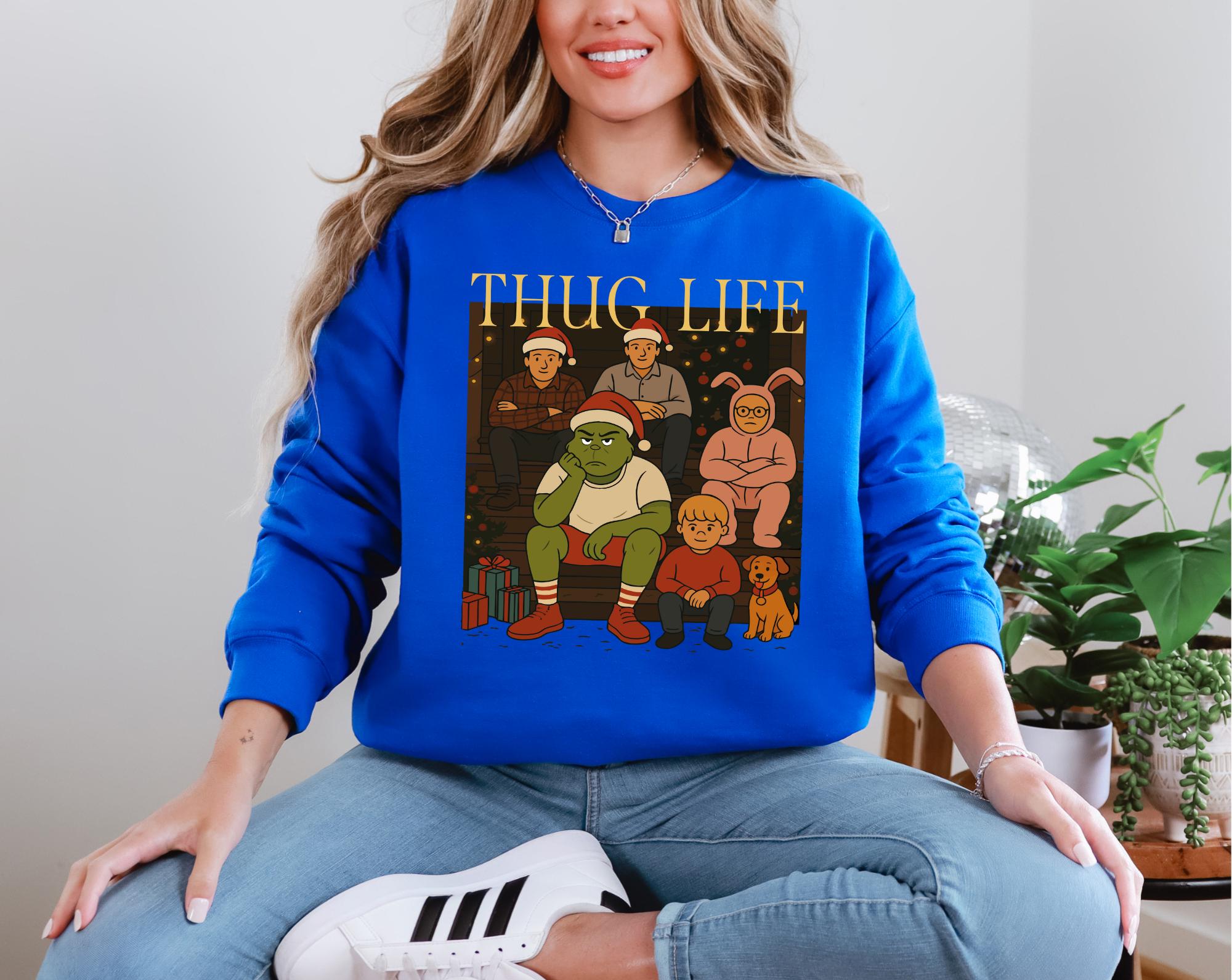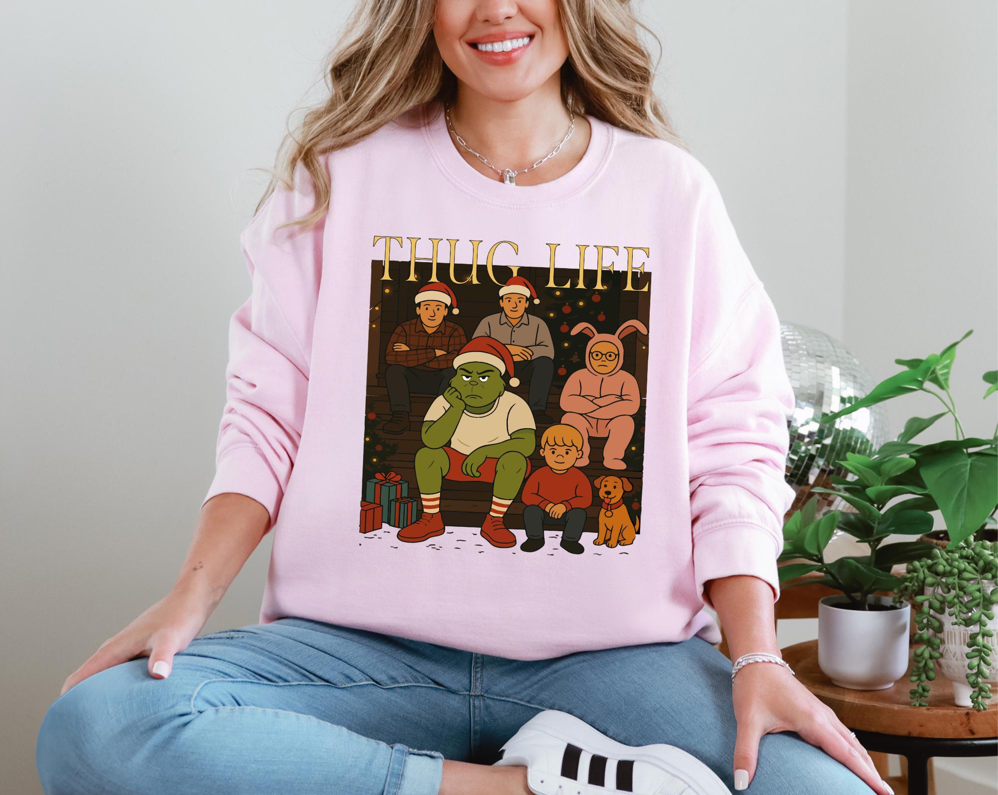 Get into the holiday spirit with this Funny Thug Life Christmas Sweatshirt featuring the Grinch, family vibes, and cozy holiday humor. Perfect for Christmas parties, ugly sweater contests, matching family photos, or as a unique gift for him or her. Celebrate the season with comfort and style while showing off your playful holiday side! 🎄✨
