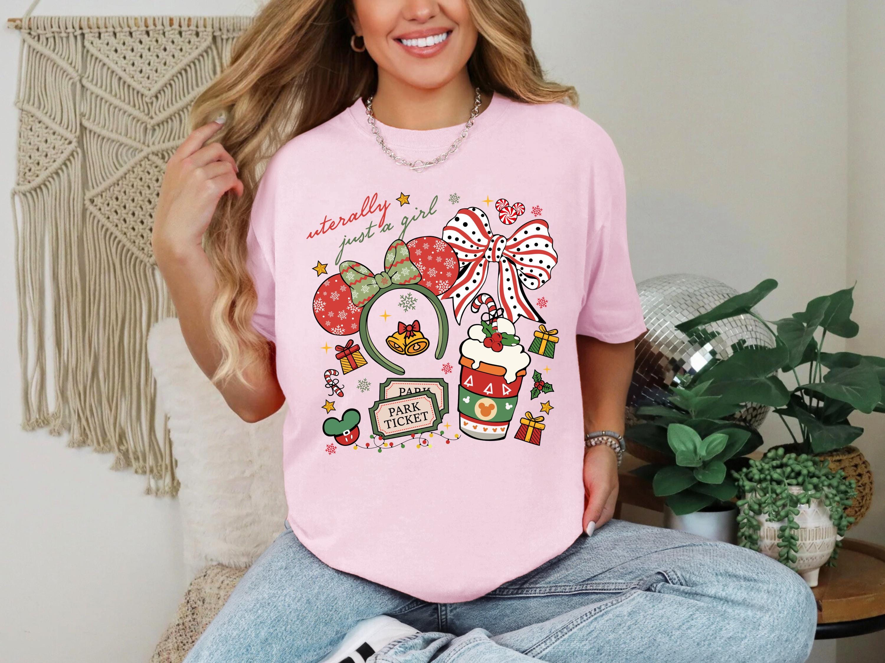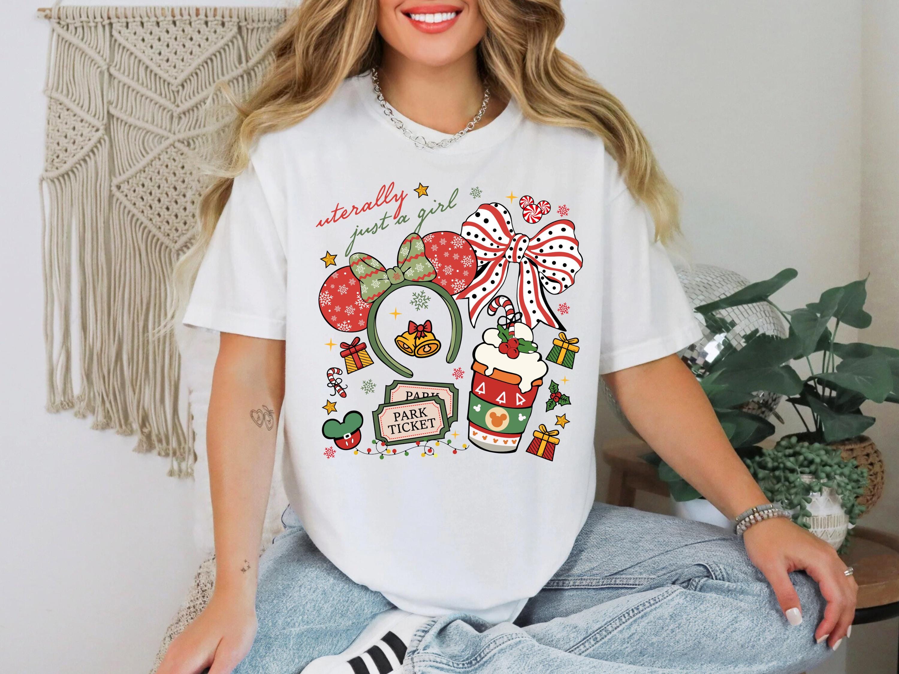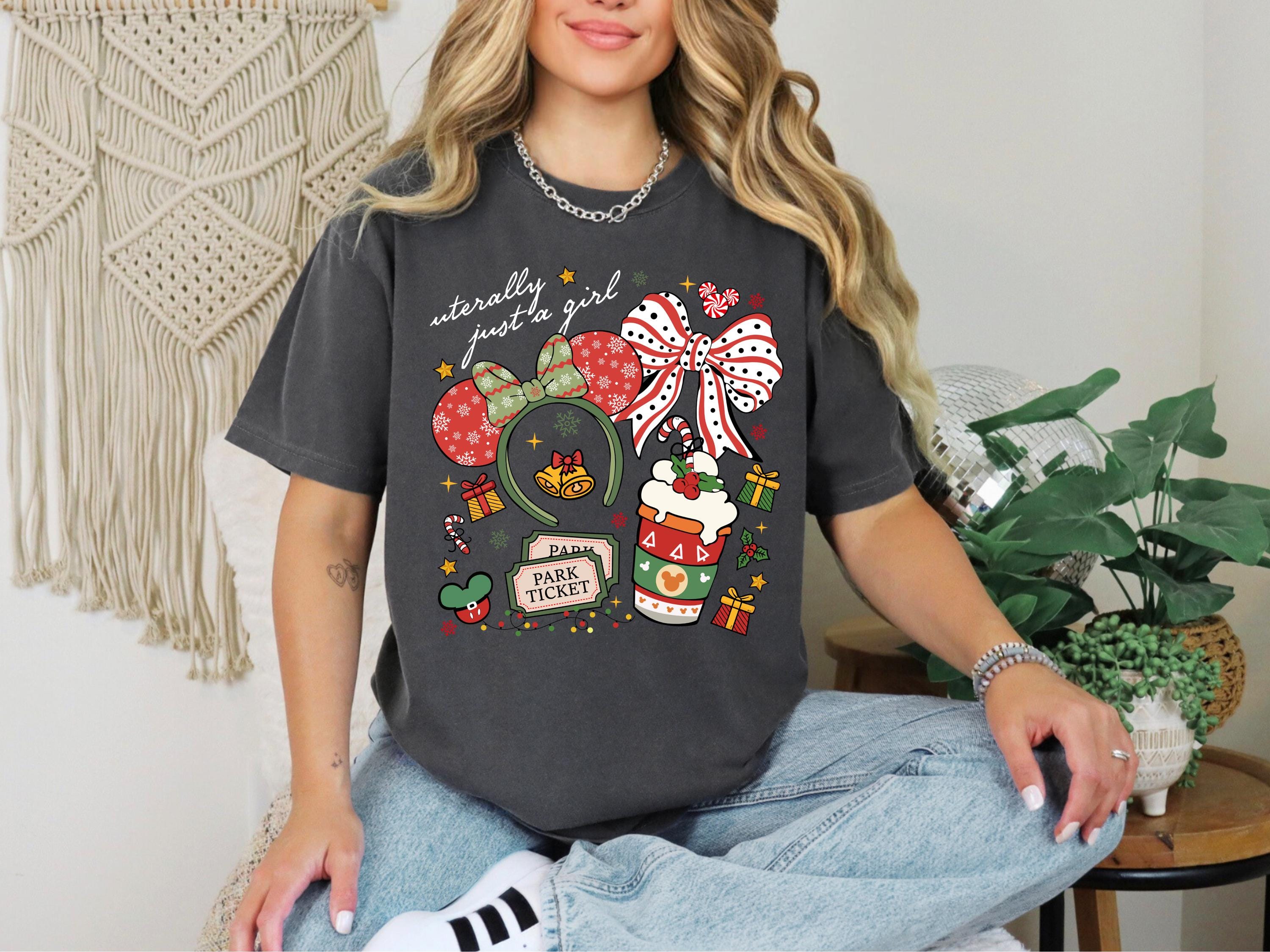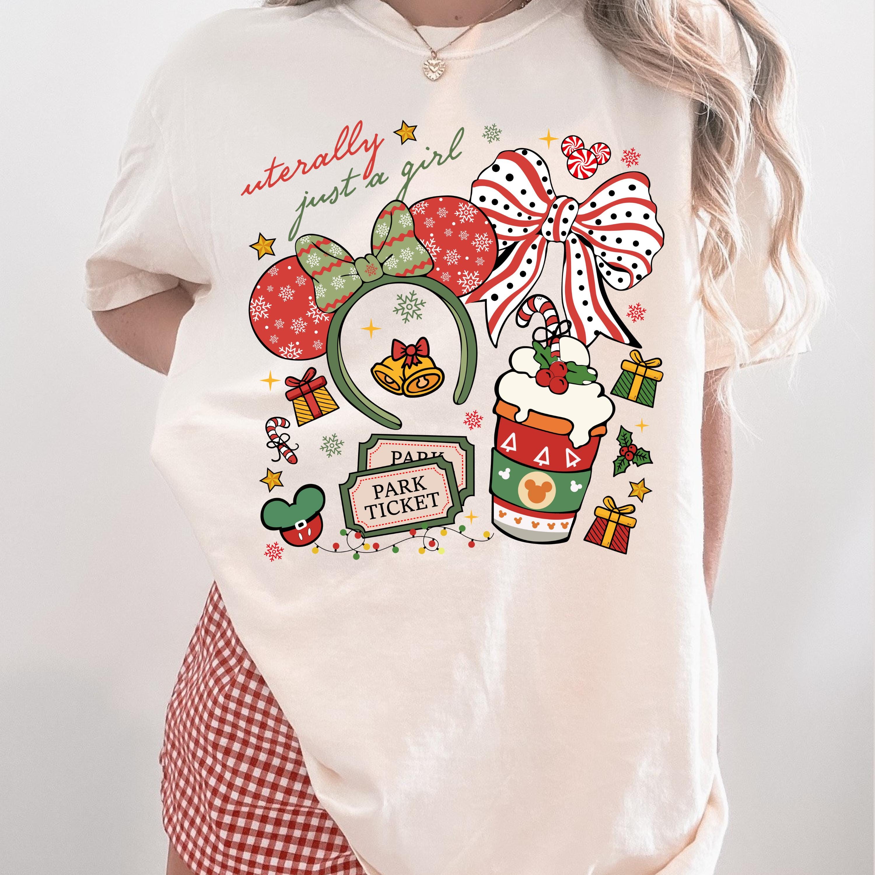 Celebrate the holidays in style with this Disney inspired Christmas Comfort Colors shirt. Featuring Minnie bow, park ticket, coffee cup and festive holiday details, itโs the perfect tee for your next Disneyland trip, Christmas party, or holiday gift. A cozy oversized look makes it great for everyday wear or magical vacation outfits.