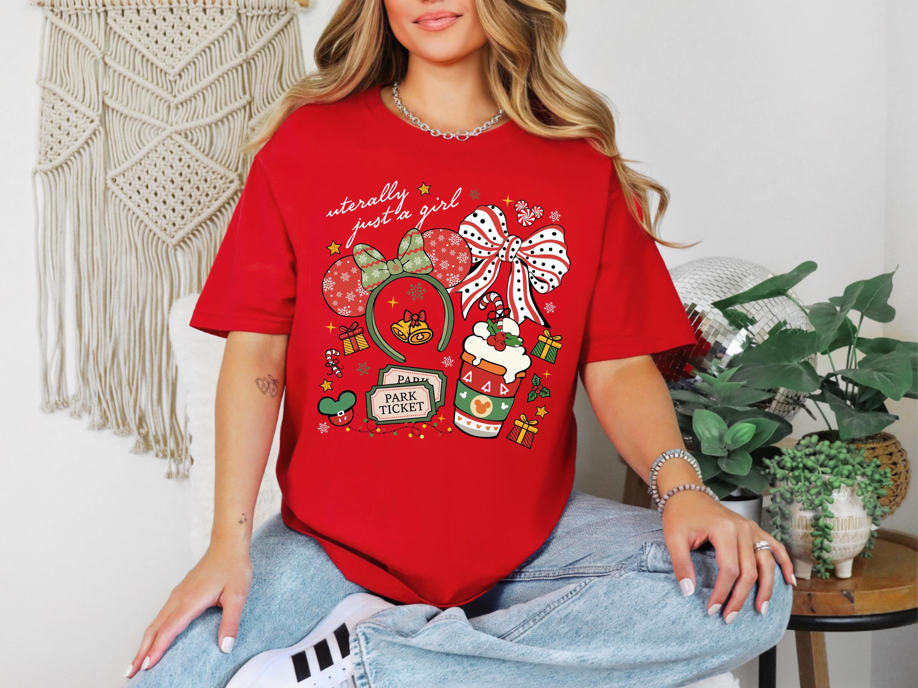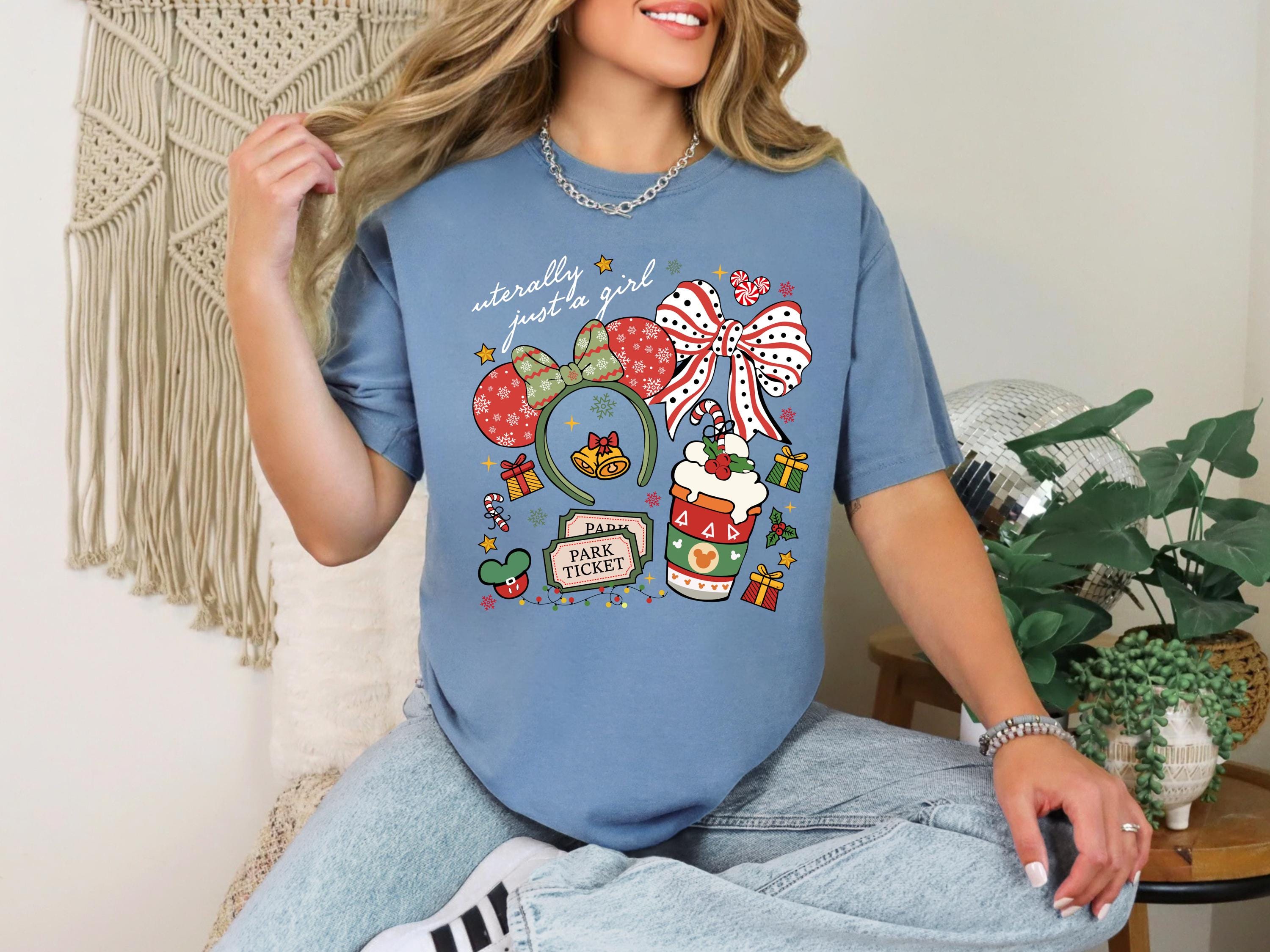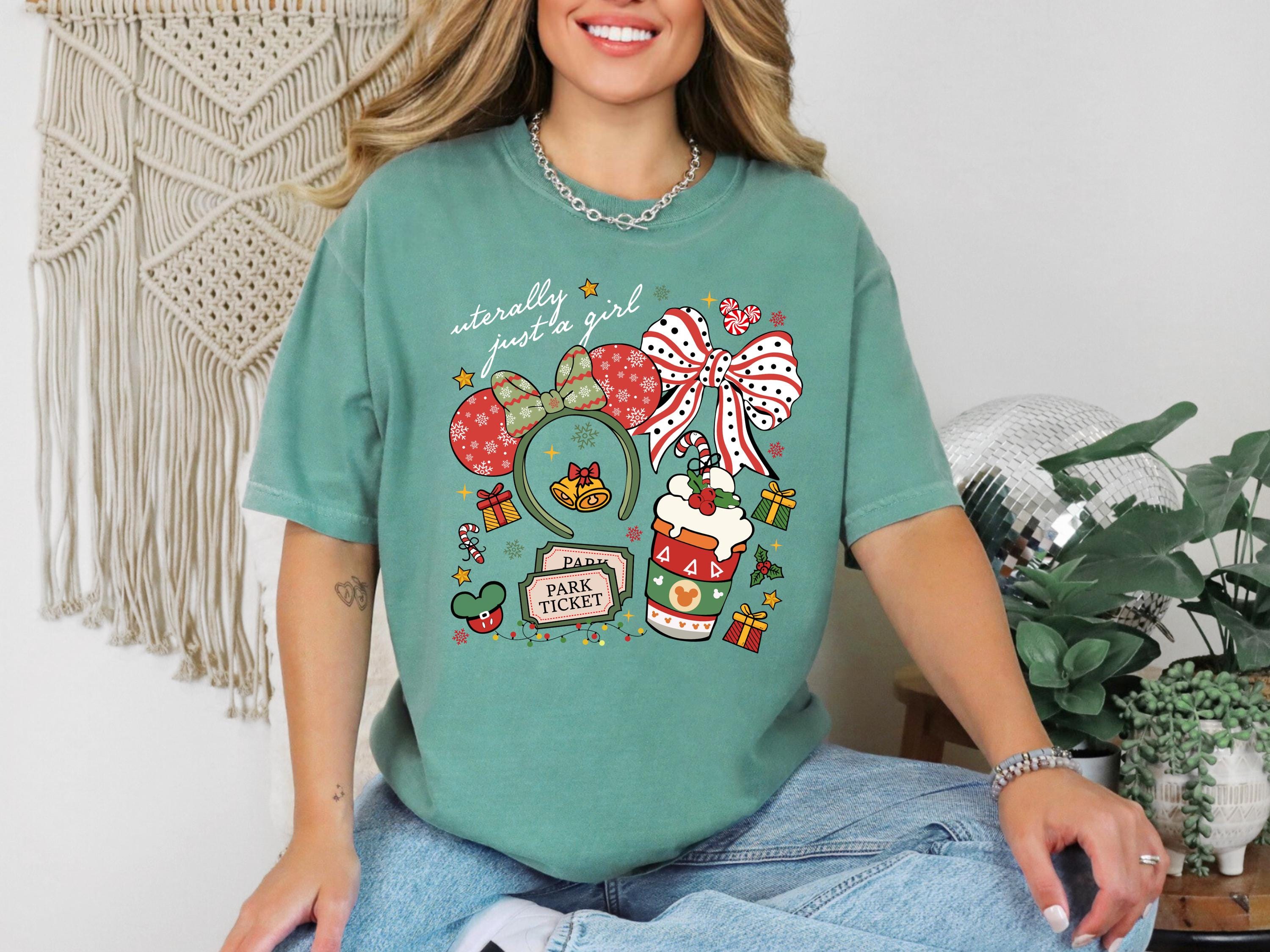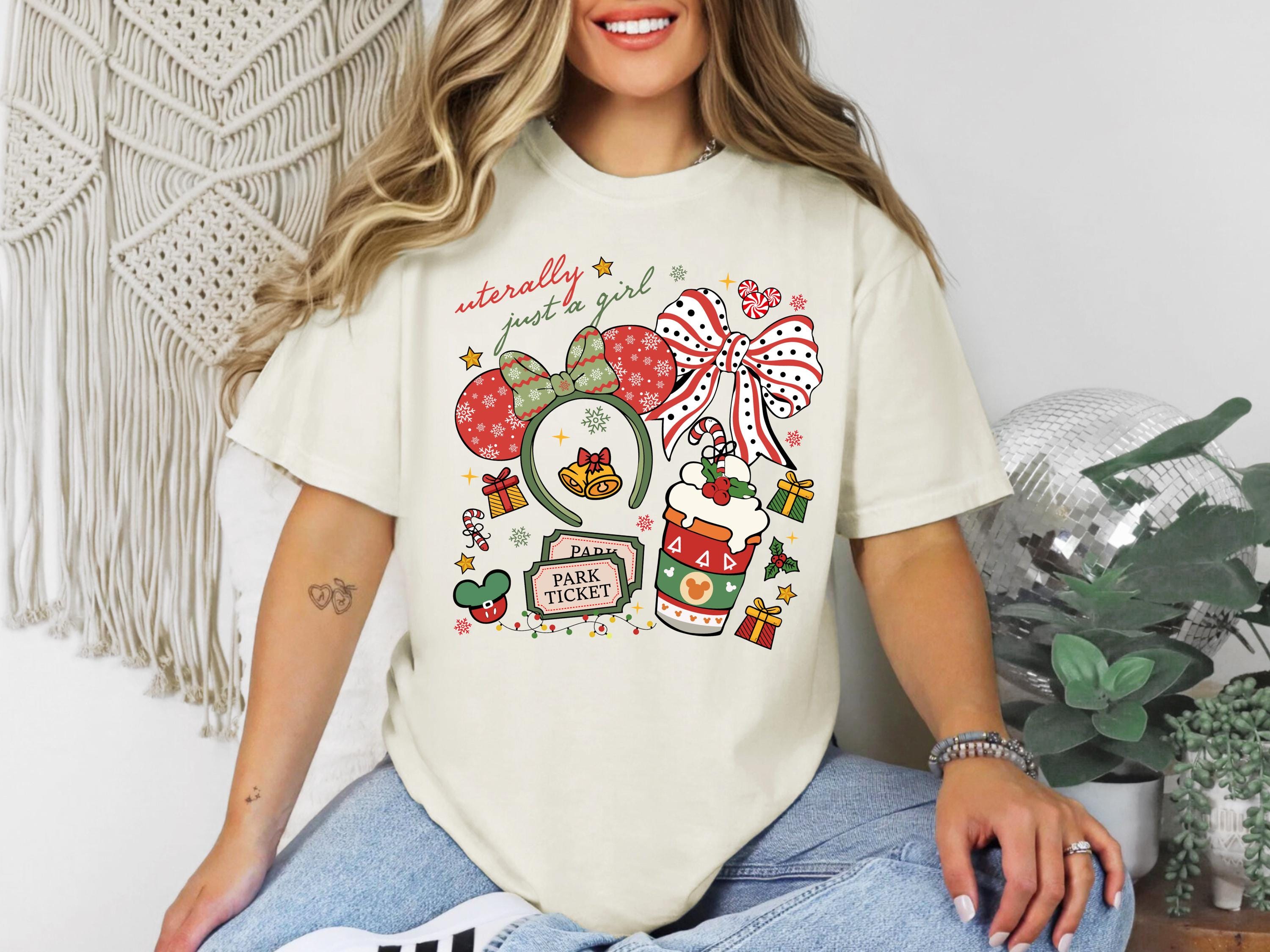 Celebrate the holidays in style with this Disney inspired Christmas Comfort Colors shirt. Featuring Minnie bow, park ticket, coffee cup and festive holiday details, itโs the perfect tee for your next Disneyland trip, Christmas party, or holiday gift. A cozy oversized look makes it great for everyday wear or magical vacation outfits.