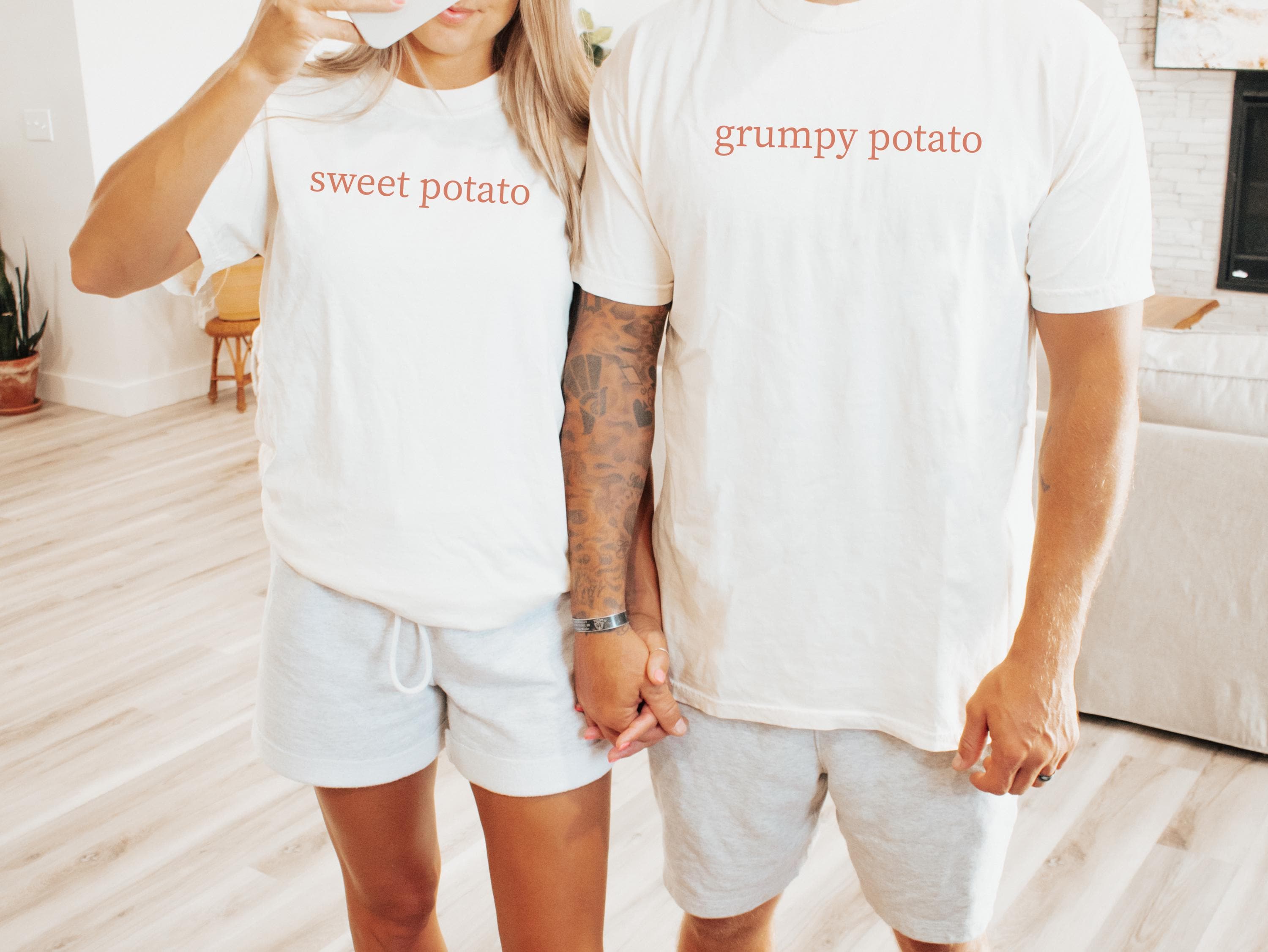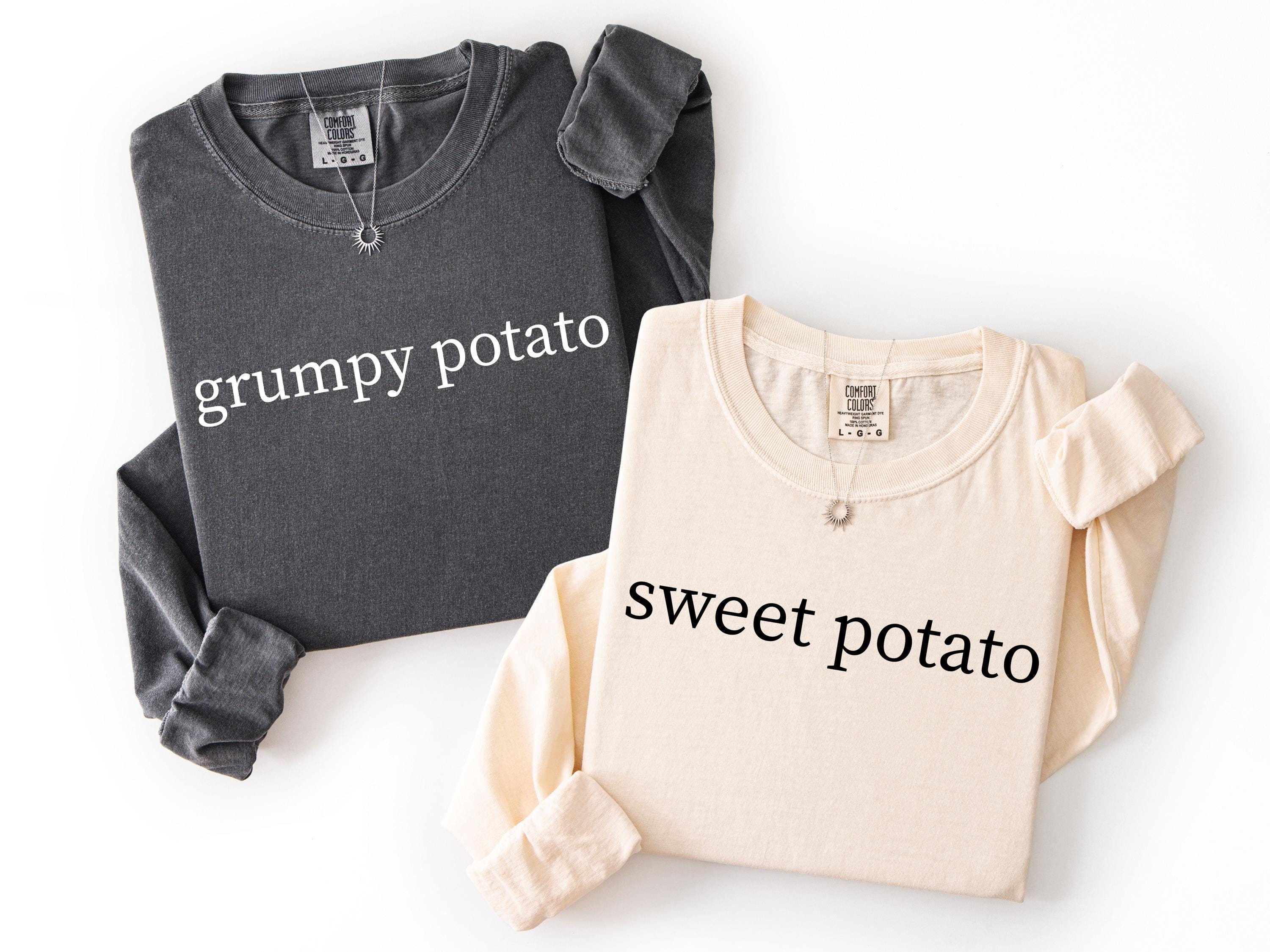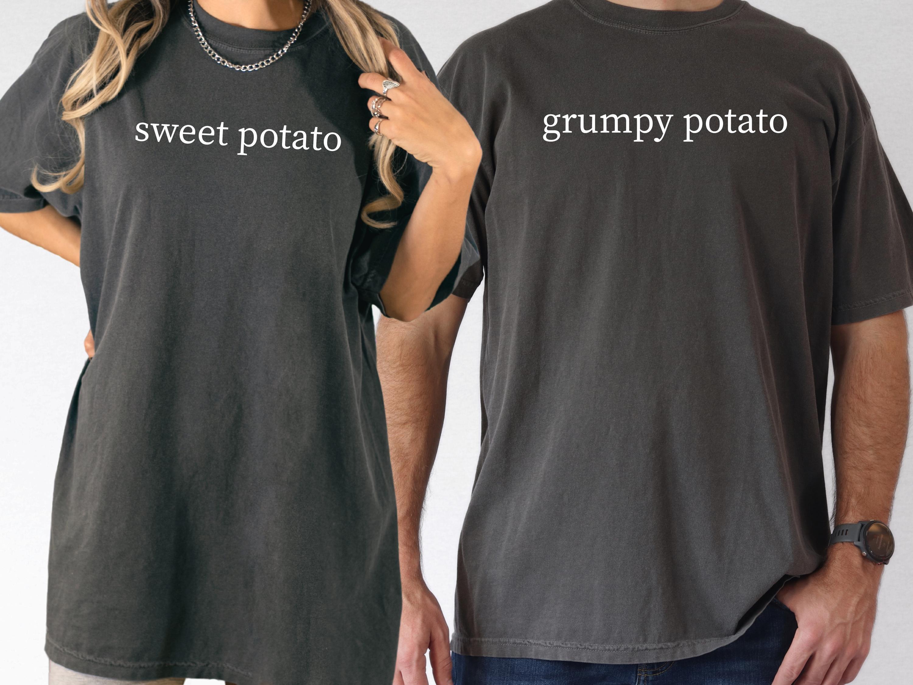 These unisex Comfort Colors® shirts are designed for couples who love to match! Featuring “Sweet Potato” and “Grumpy Potato” prints, they’re perfect for Thanksgiving, fall outfits, or everyday wear. A funny and cozy matching gift for couples, anniversaries, or holiday photos.
