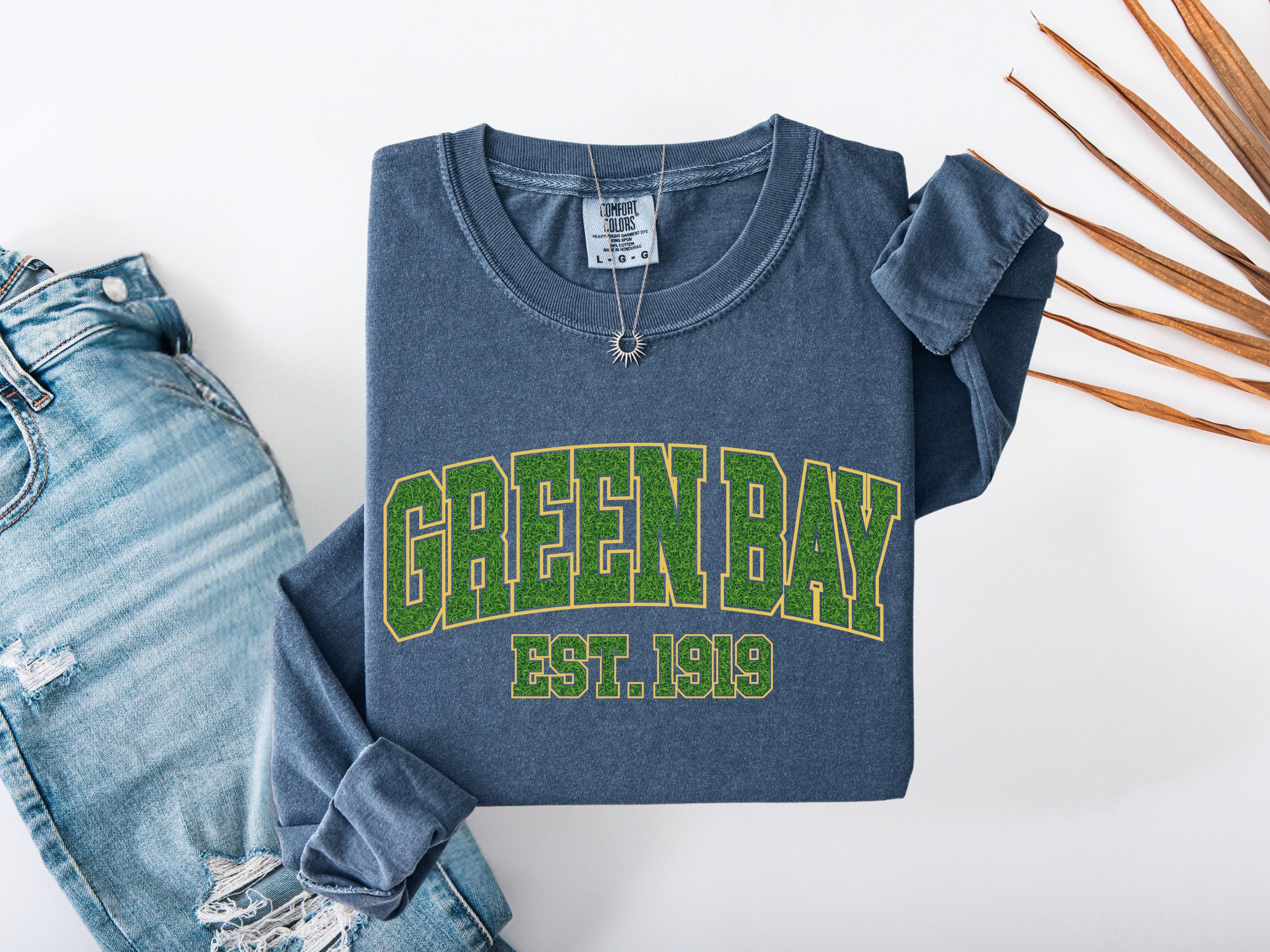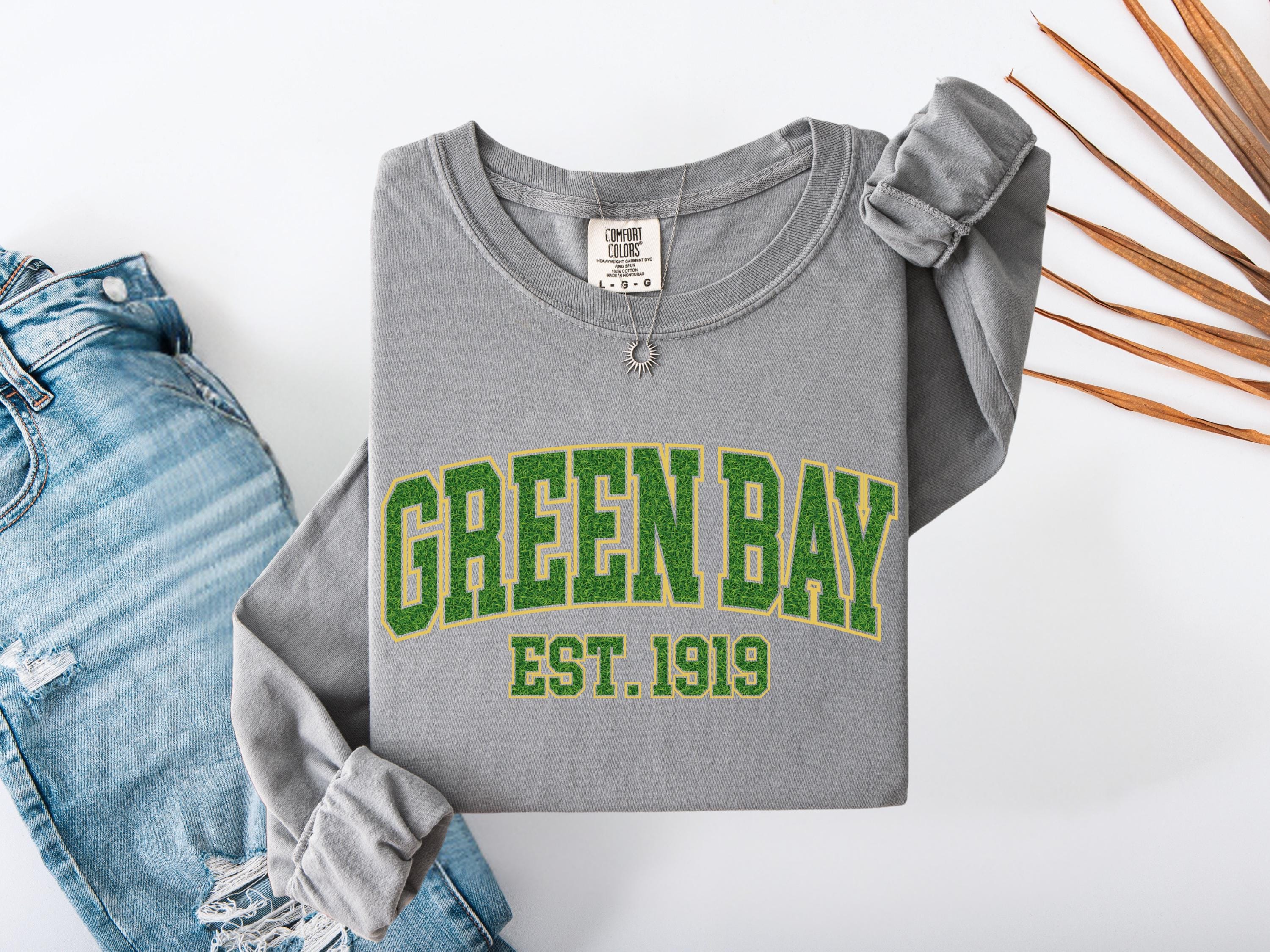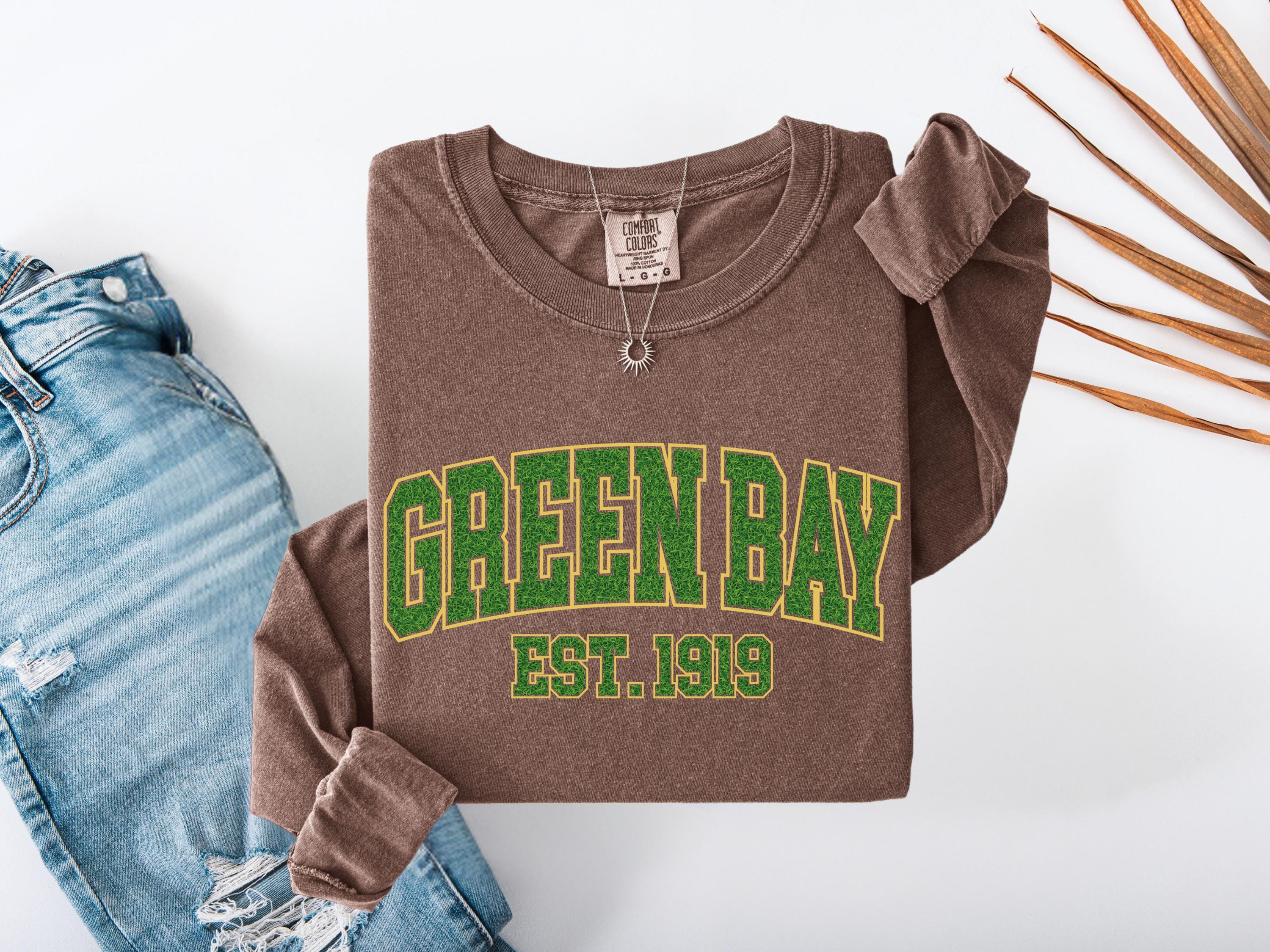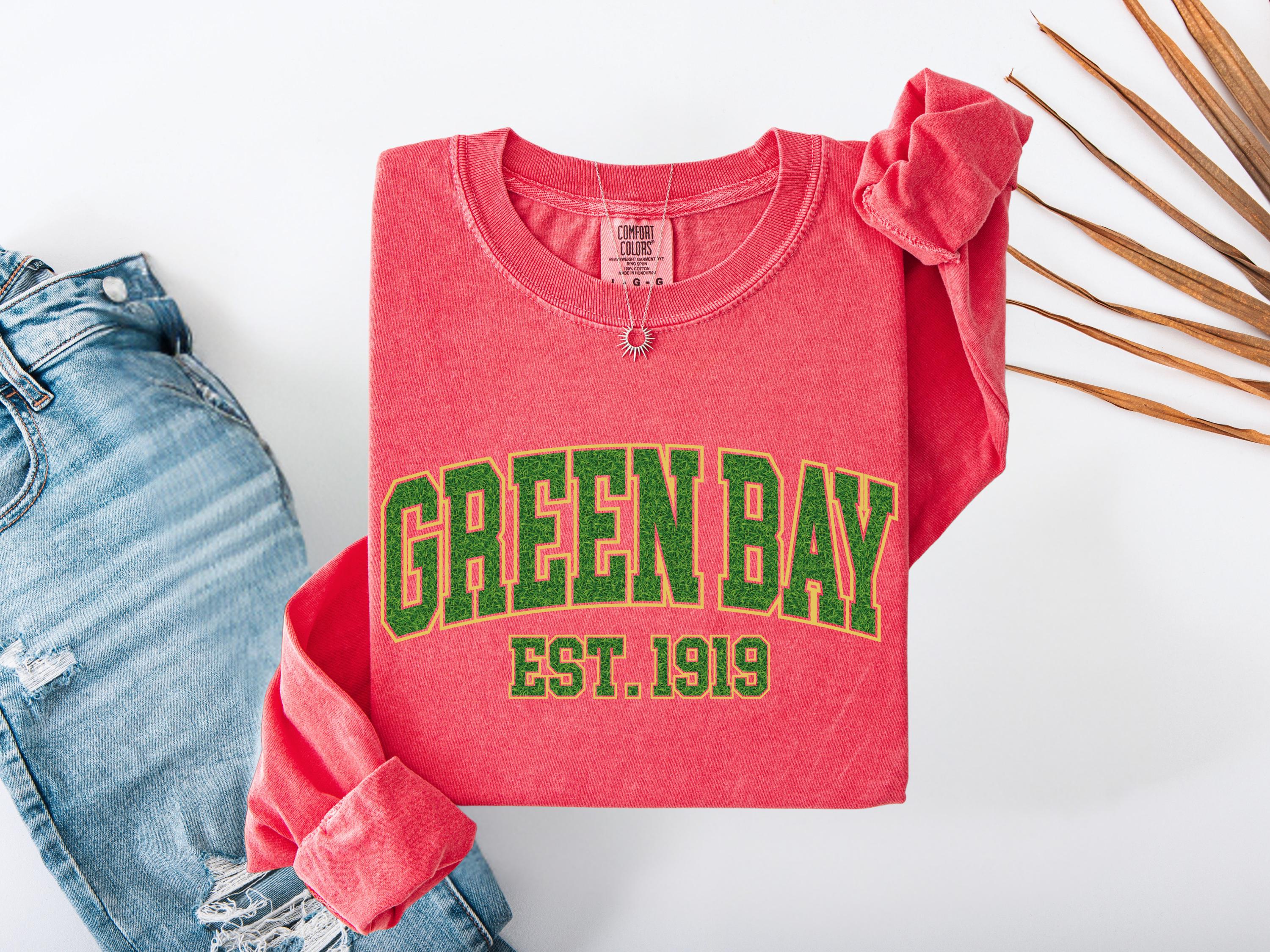 This Green Bay “Est. 1919” Comfort Colors® t-shirt has a vintage college style design perfect for everyday wear. A classic retro look that makes a great gift for fans, students, or anyone who loves Green Bay spirit and old-school athletic style. Cozy and stylish, this graphic tee is perfect for casual outfits, football season, or unique gifts.
