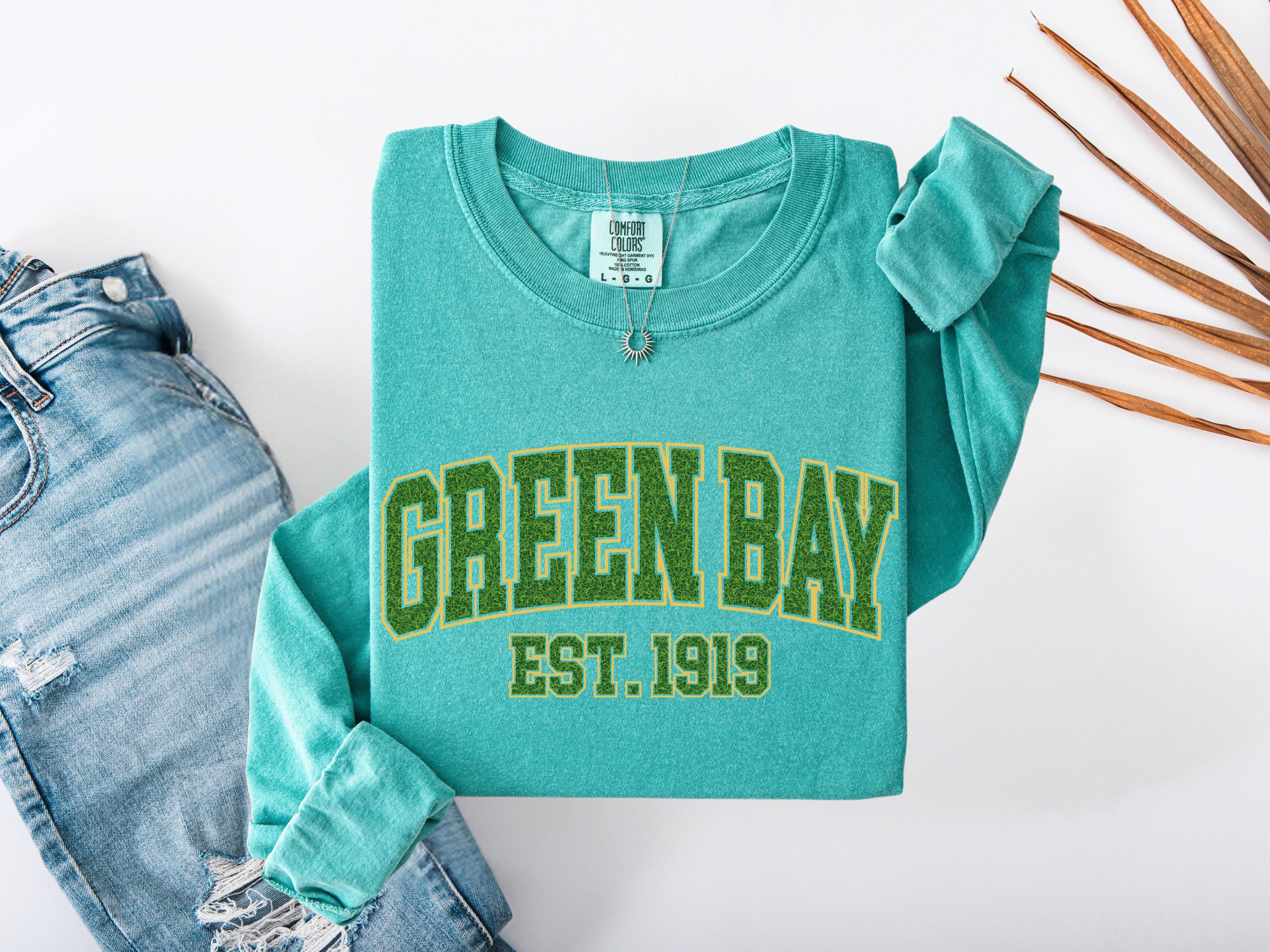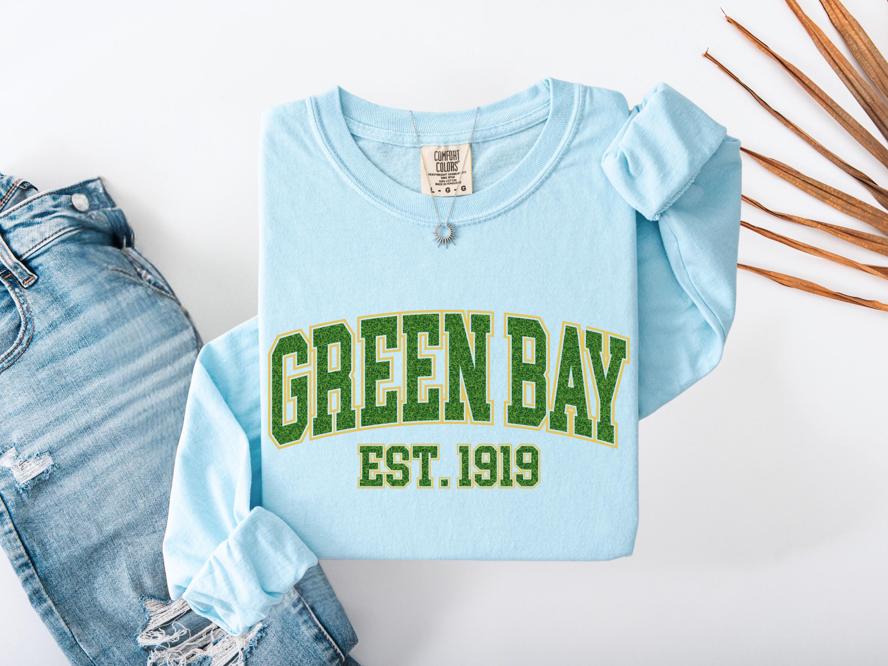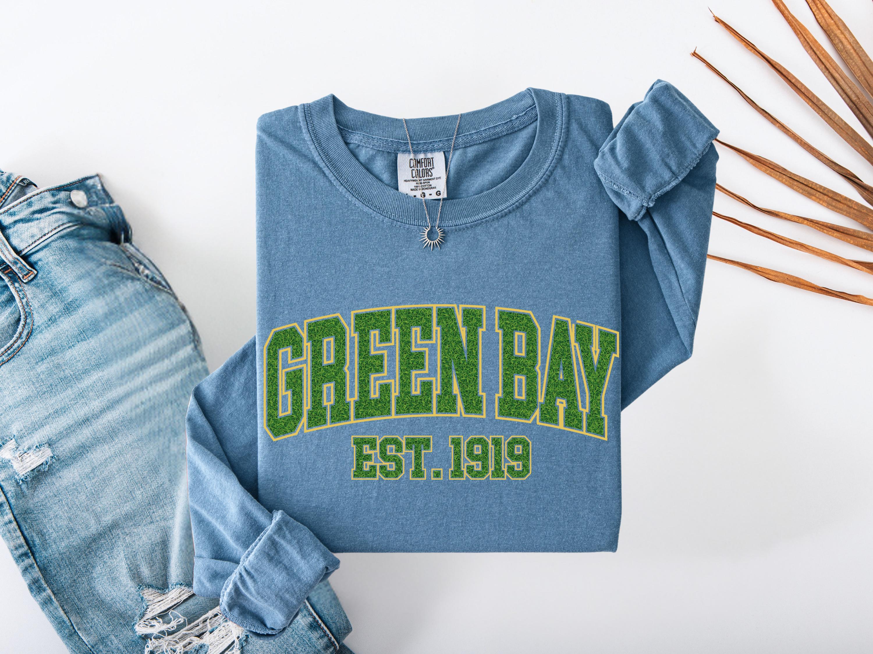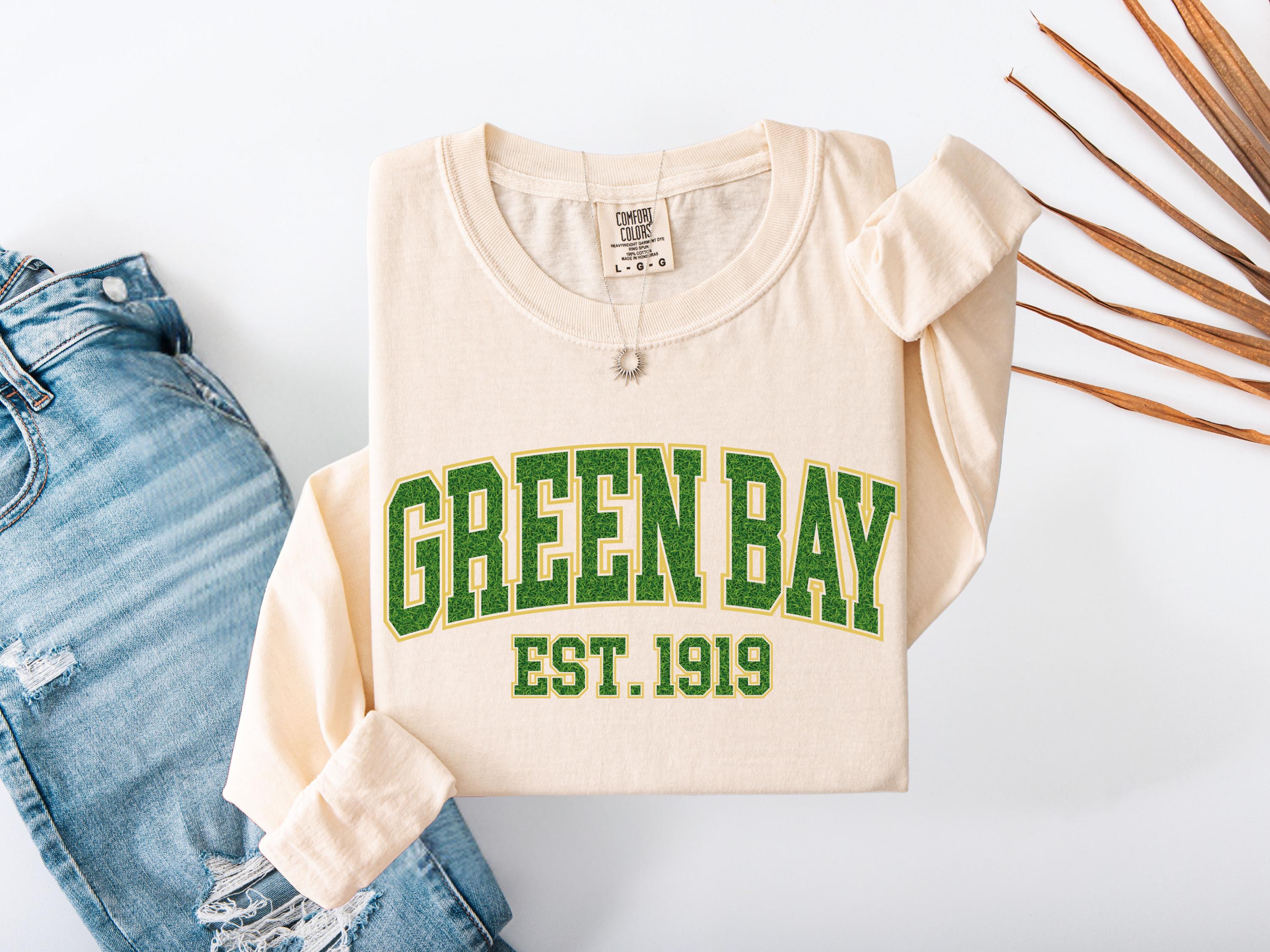 This Green Bay “Est. 1919” Comfort Colors® t-shirt has a vintage college style design perfect for everyday wear. A classic retro look that makes a great gift for fans, students, or anyone who loves Green Bay spirit and old-school athletic style. Cozy and stylish, this graphic tee is perfect for casual outfits, football season, or unique gifts.