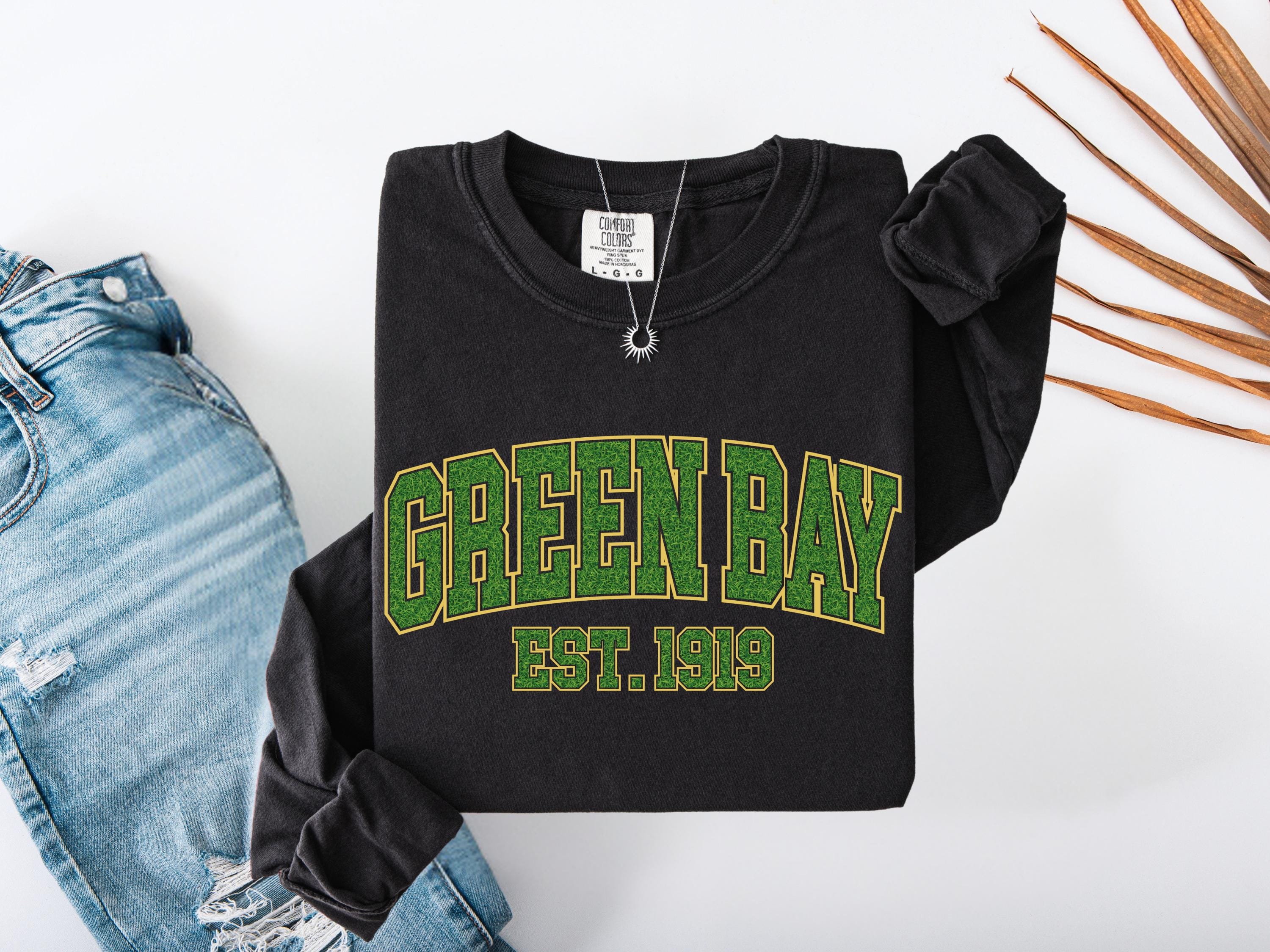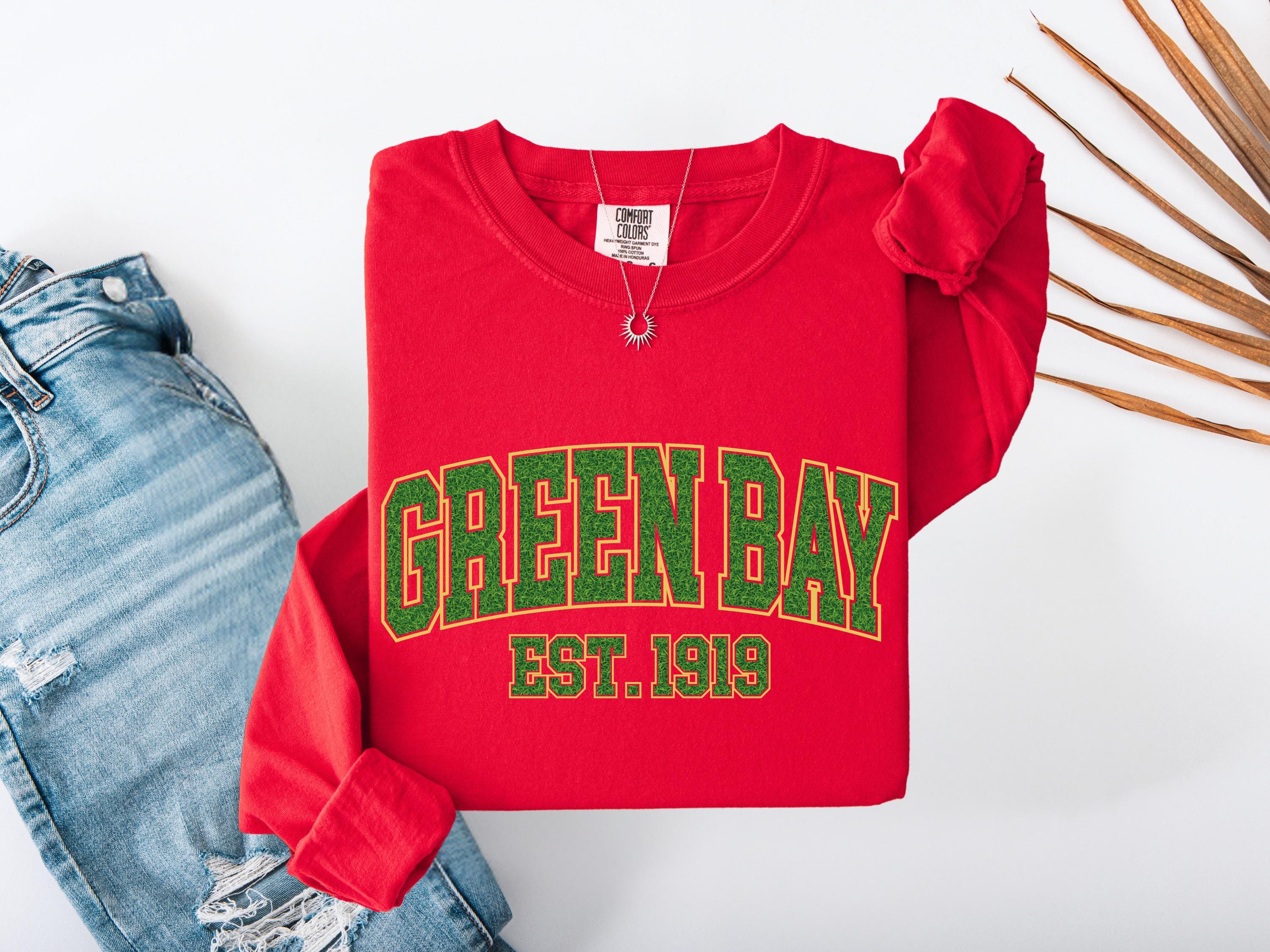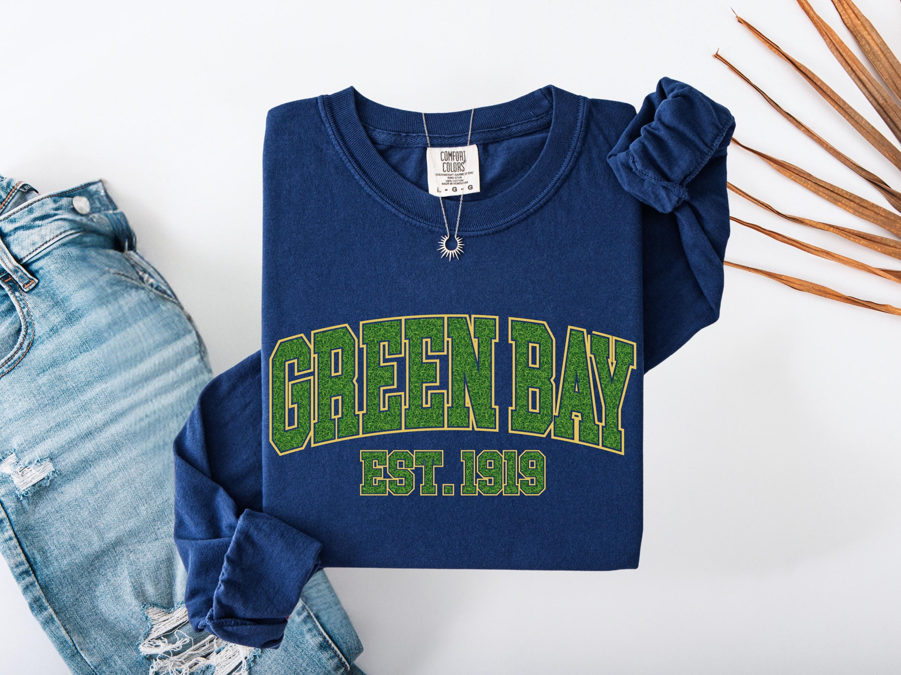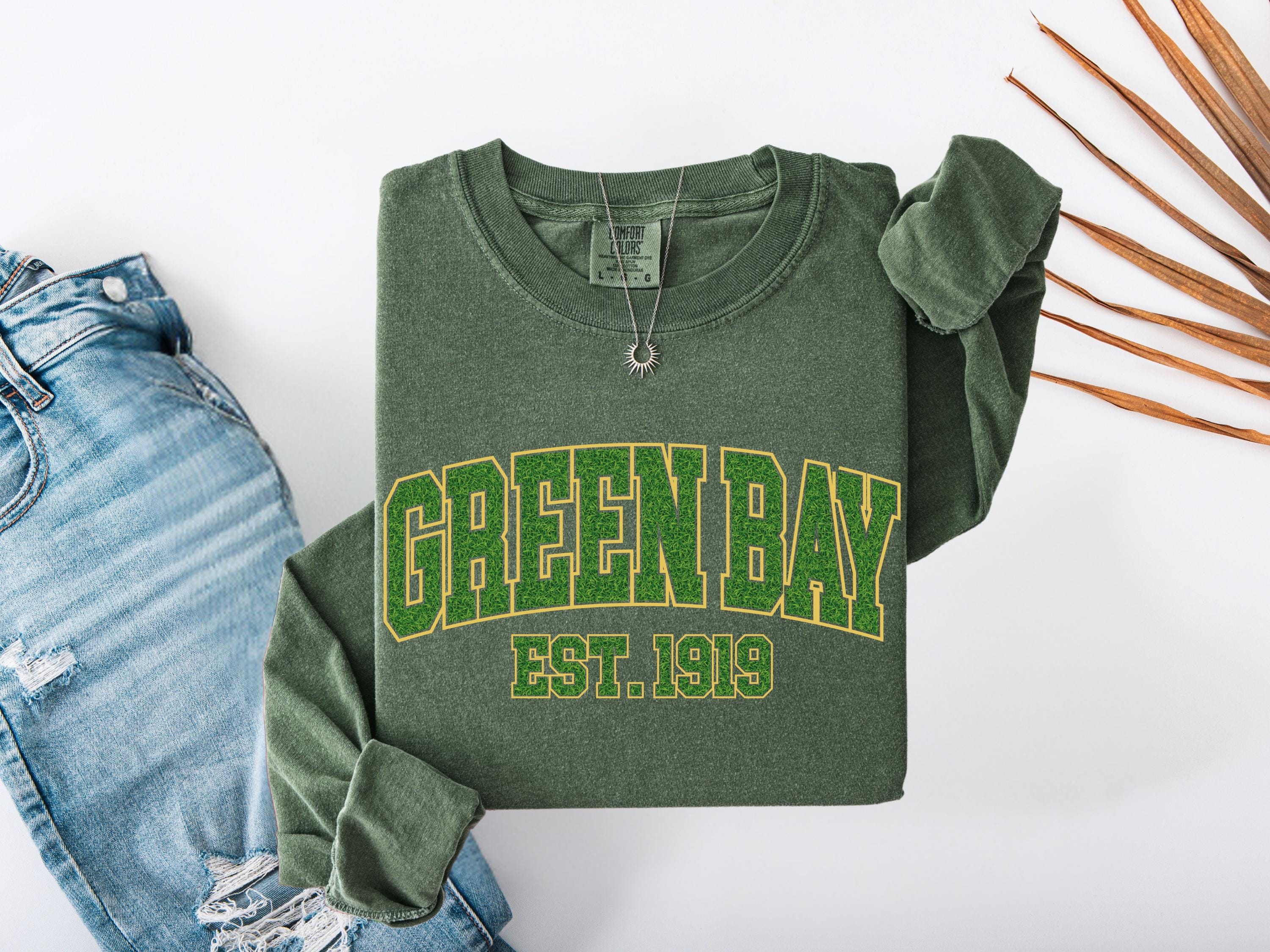 This Green Bay “Est. 1919” Comfort Colors® t-shirt has a vintage college style design perfect for everyday wear. A classic retro look that makes a great gift for fans, students, or anyone who loves Green Bay spirit and old-school athletic style. Cozy and stylish, this graphic tee is perfect for casual outfits, football season, or unique gifts.