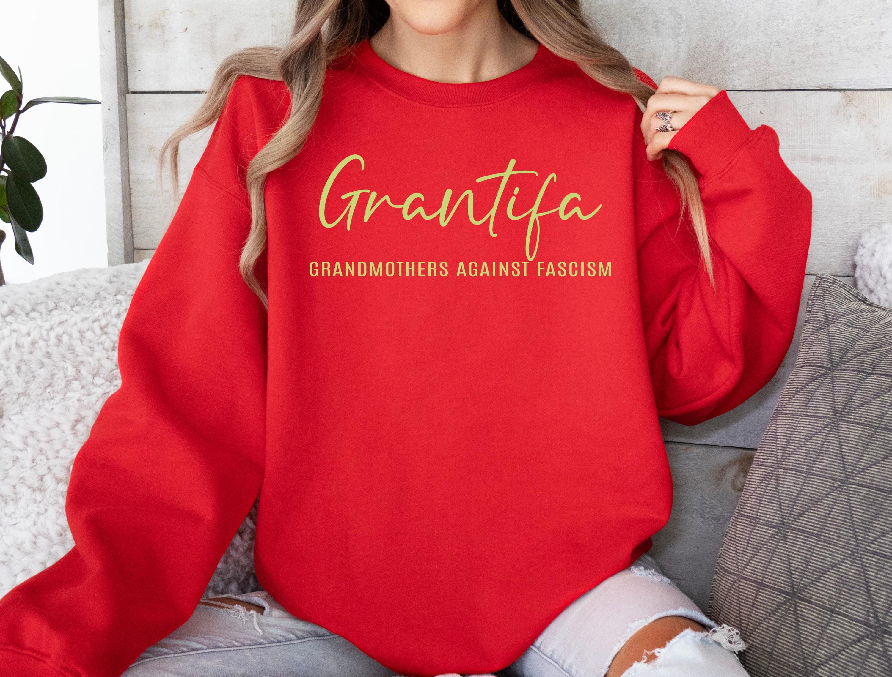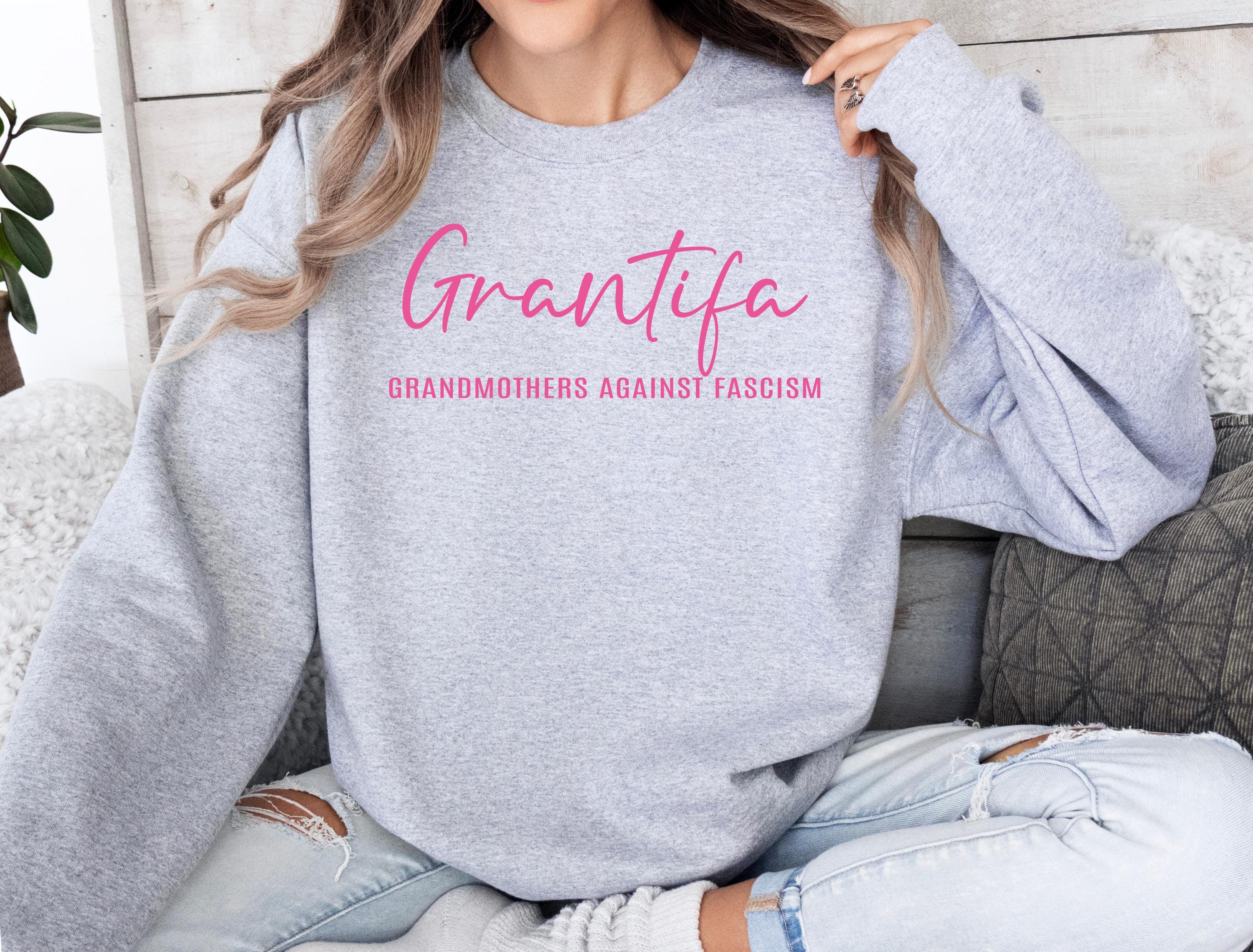 Show your activist side with this Grantifa – Grandmothers Against Fascism sweatshirt 💕 A bold and witty statement for strong, caring, and outspoken grandmothers who believe in equality and kindness.