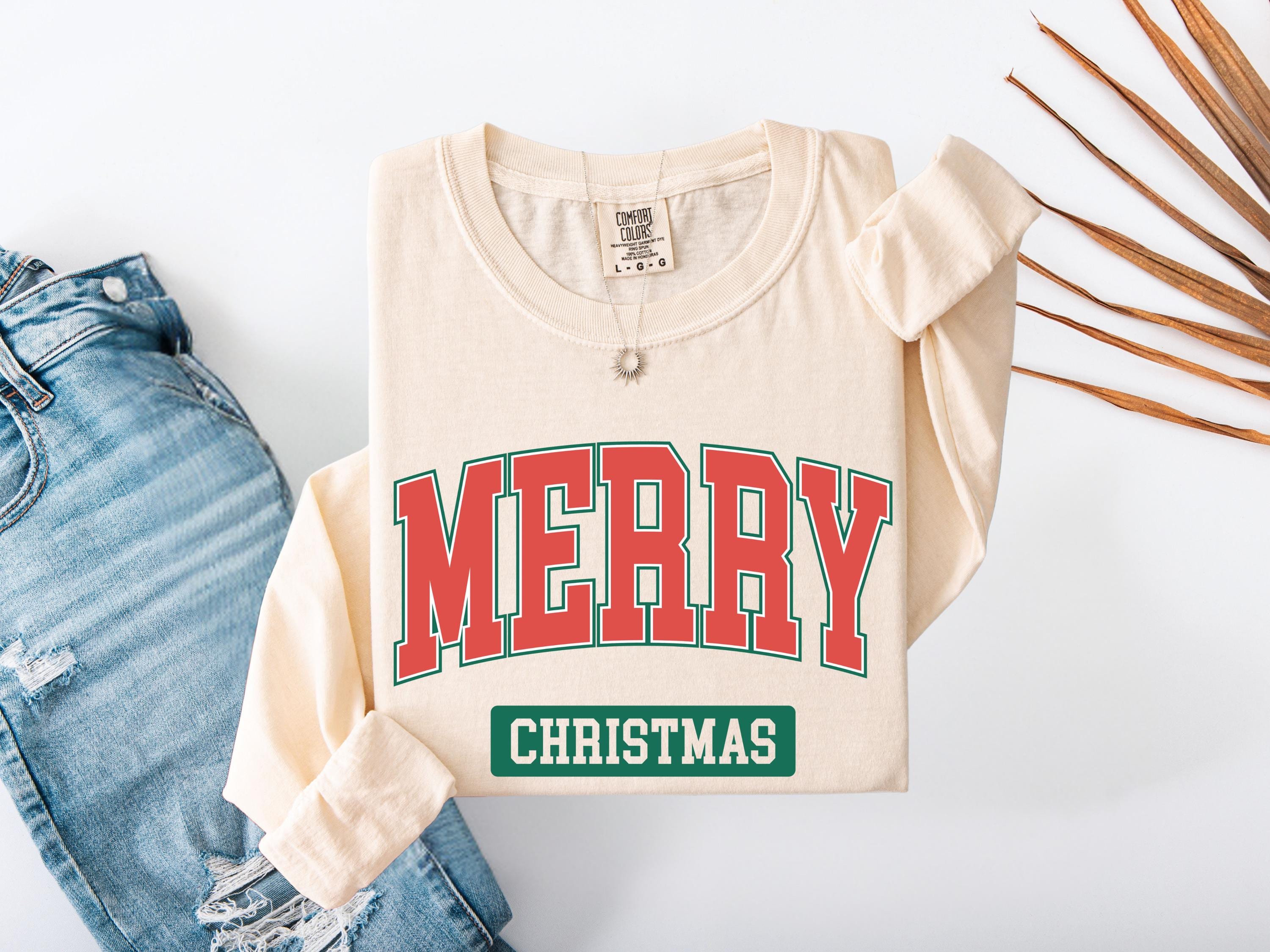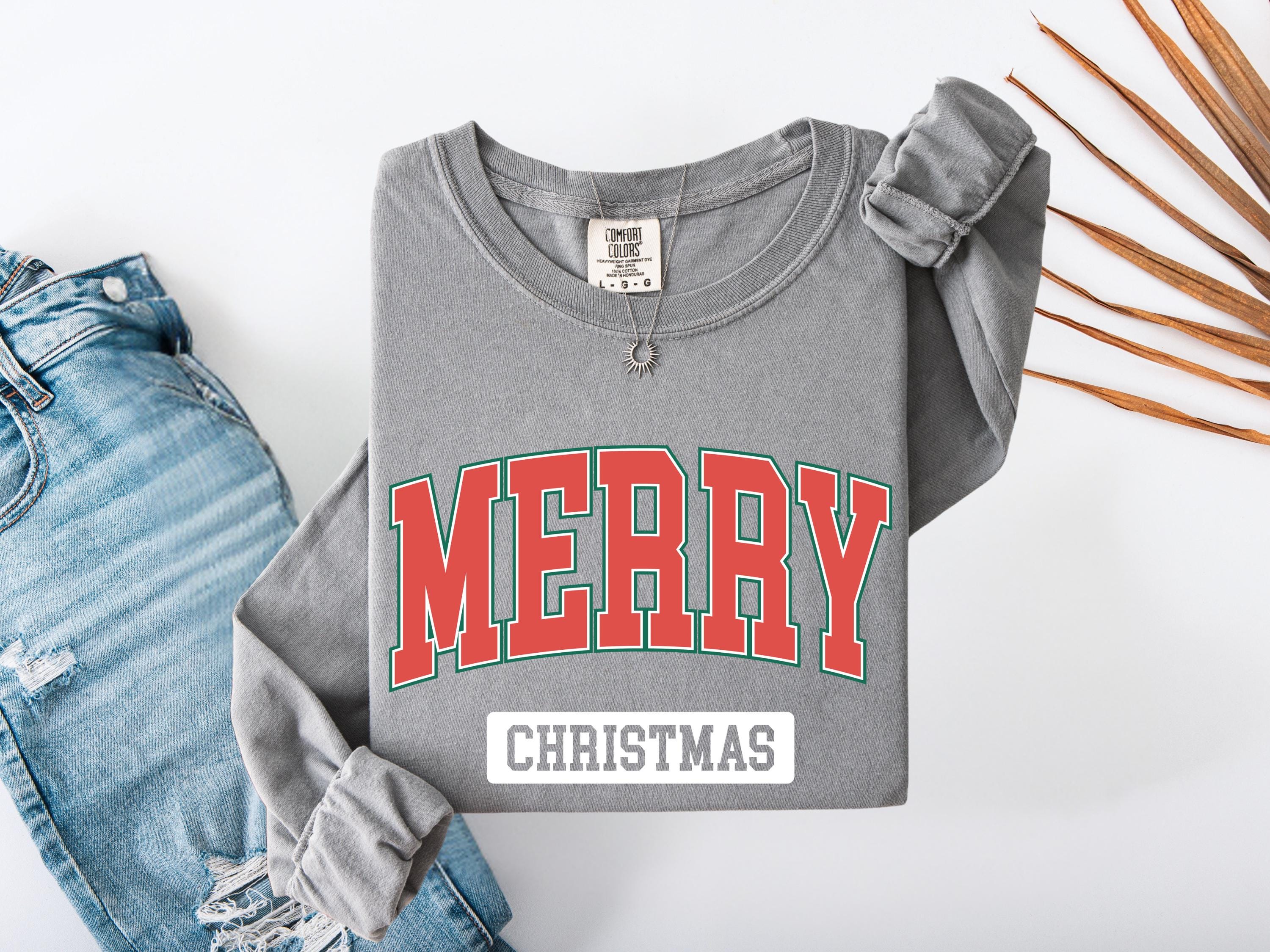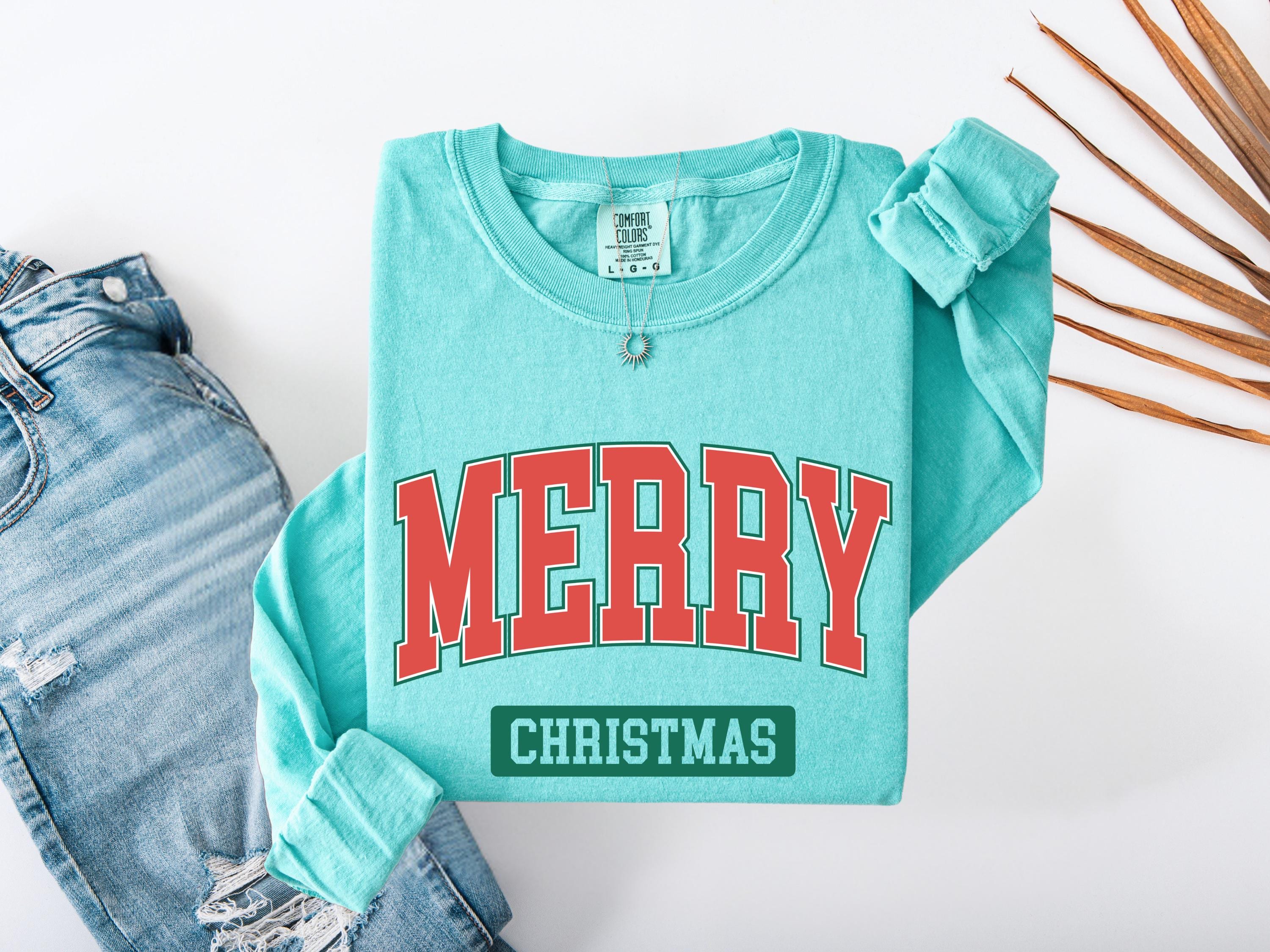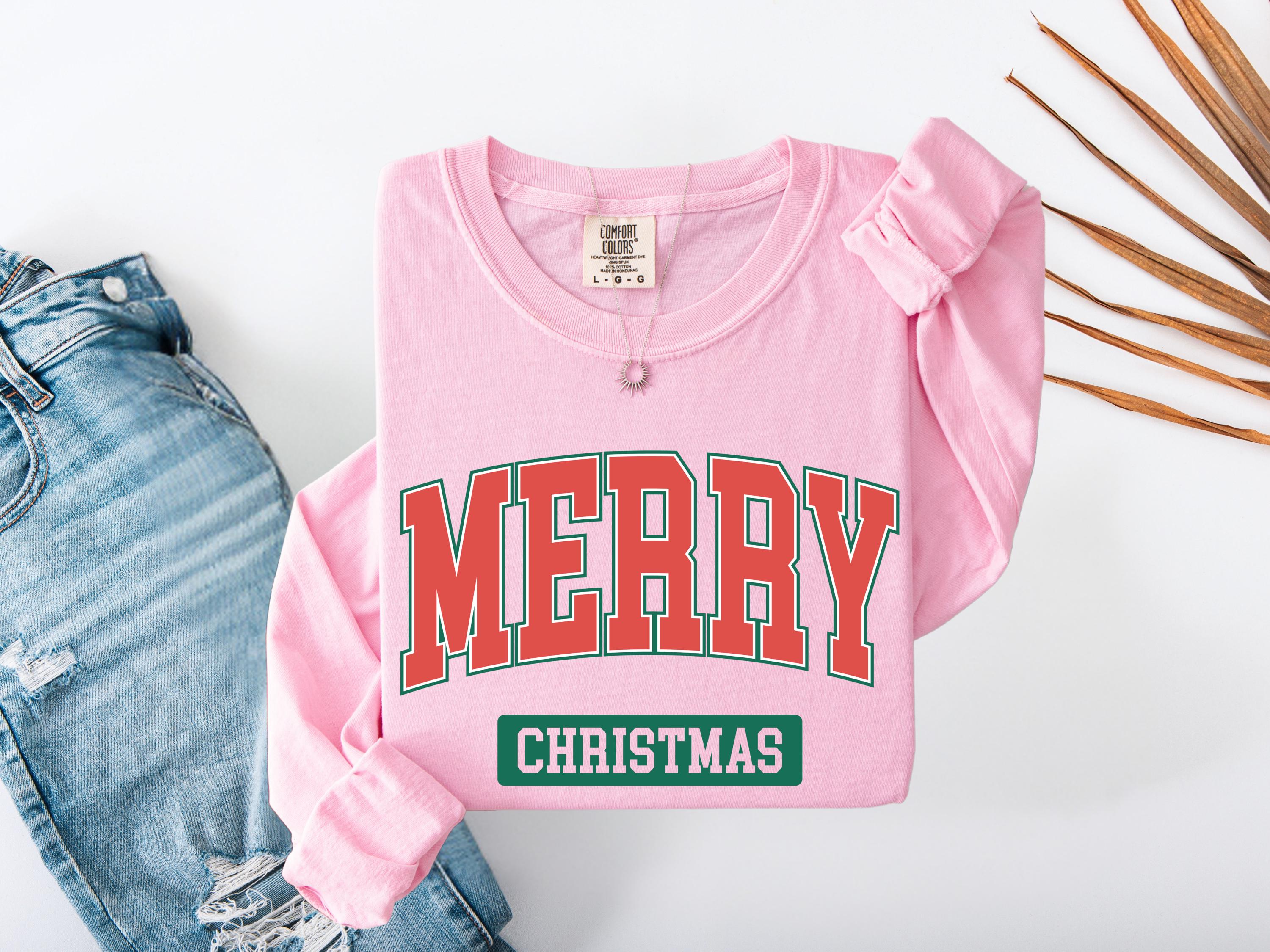 Preppy Merry Christmas long sleeve printed on authentic Comfort Colors for the soft, cozy, washed-in feel everyone loves. Perfect for holiday parties, baking nights, classroom celebrations, Christmas morning photos, or gifting. Cute, comfy, relaxed fit — your new favorite festive long sleeve for the entire winter season.