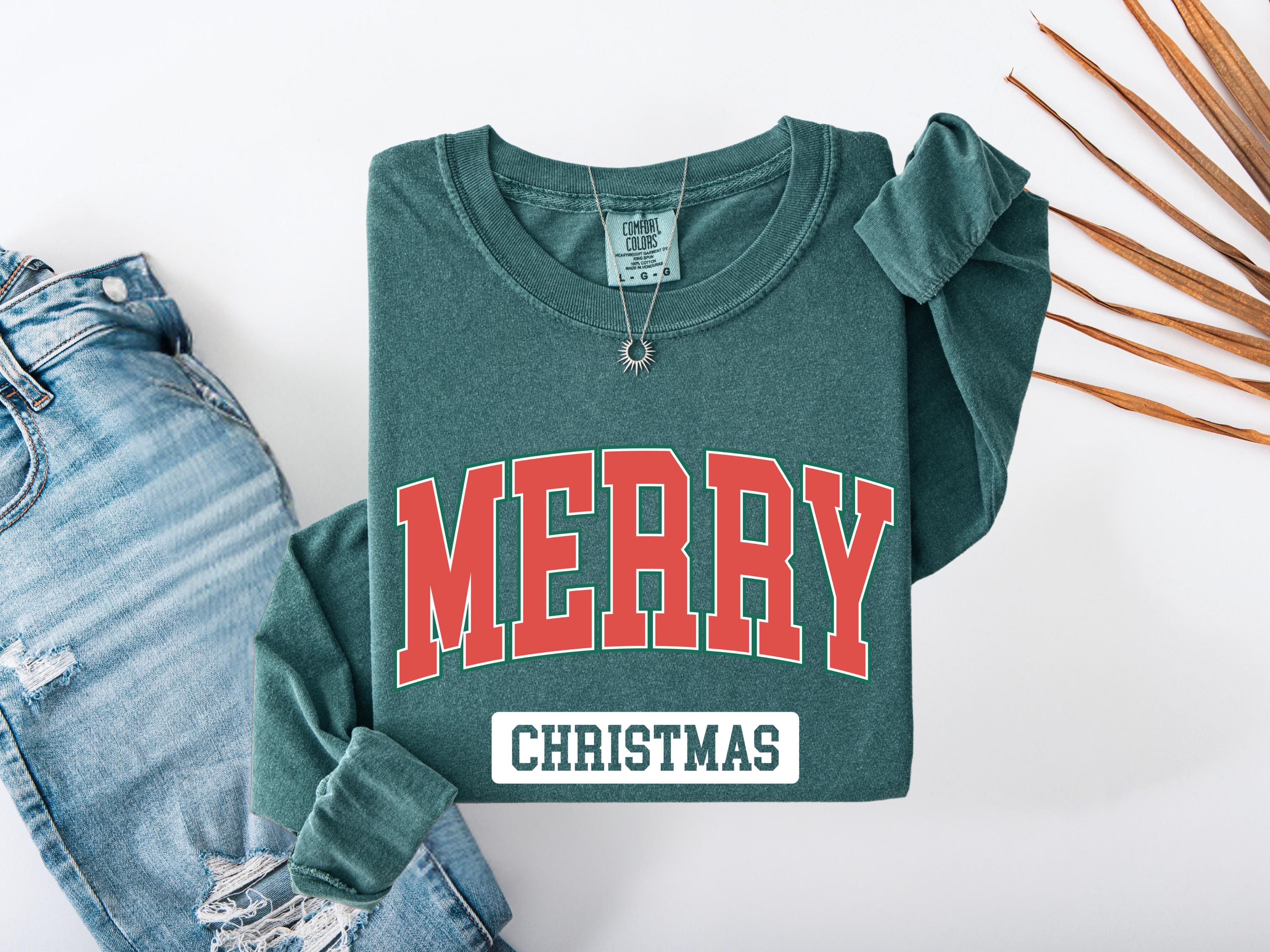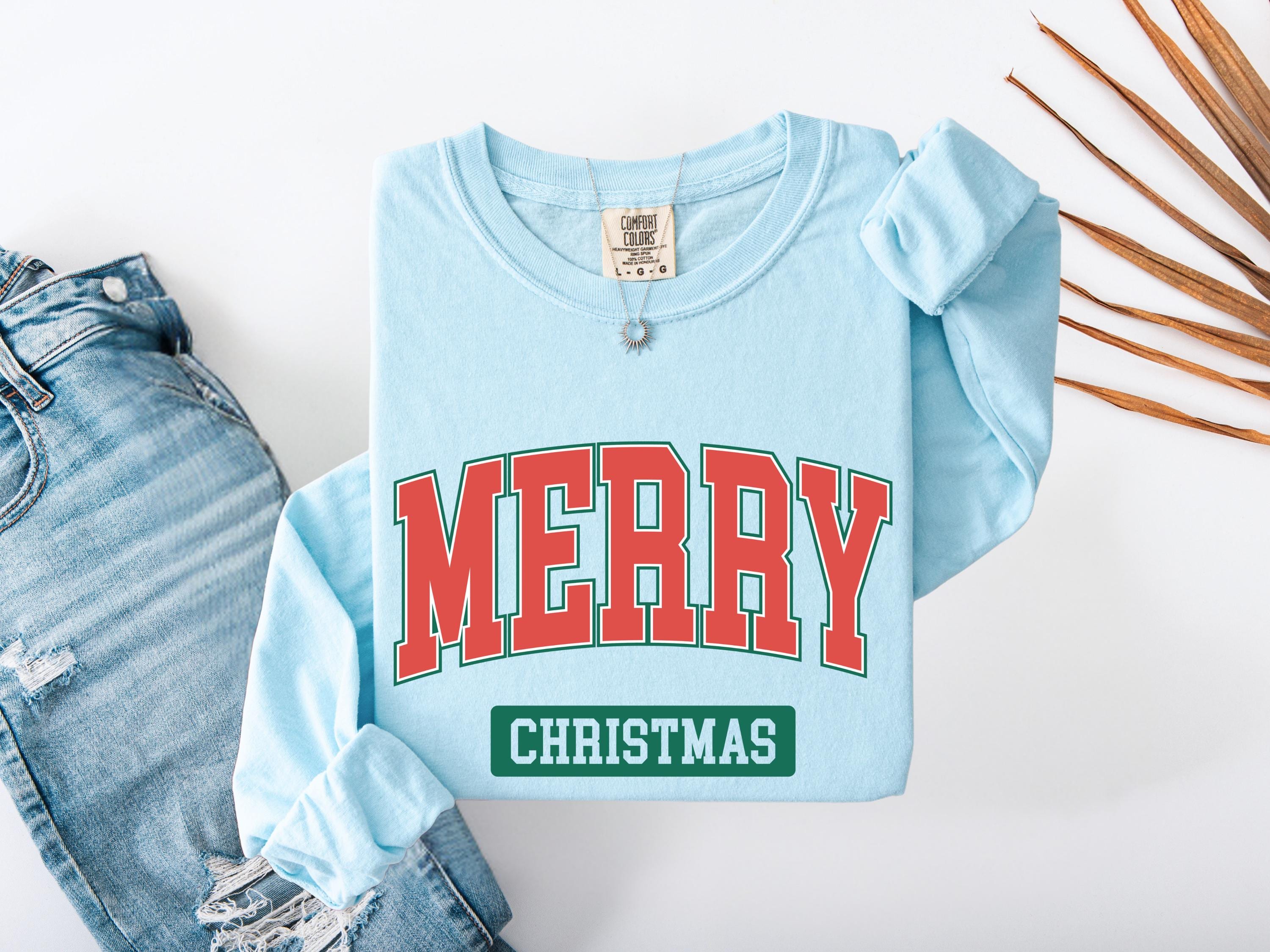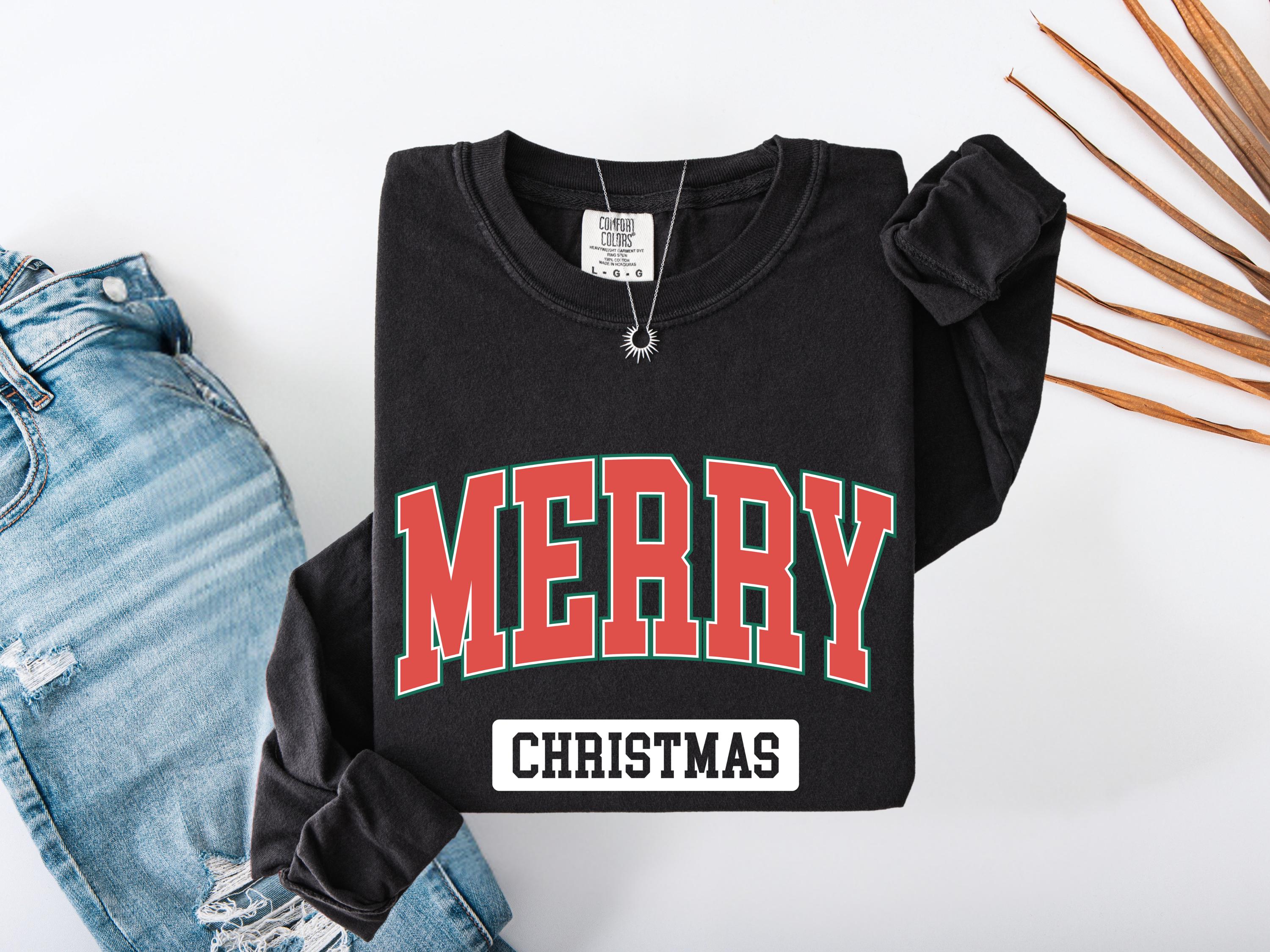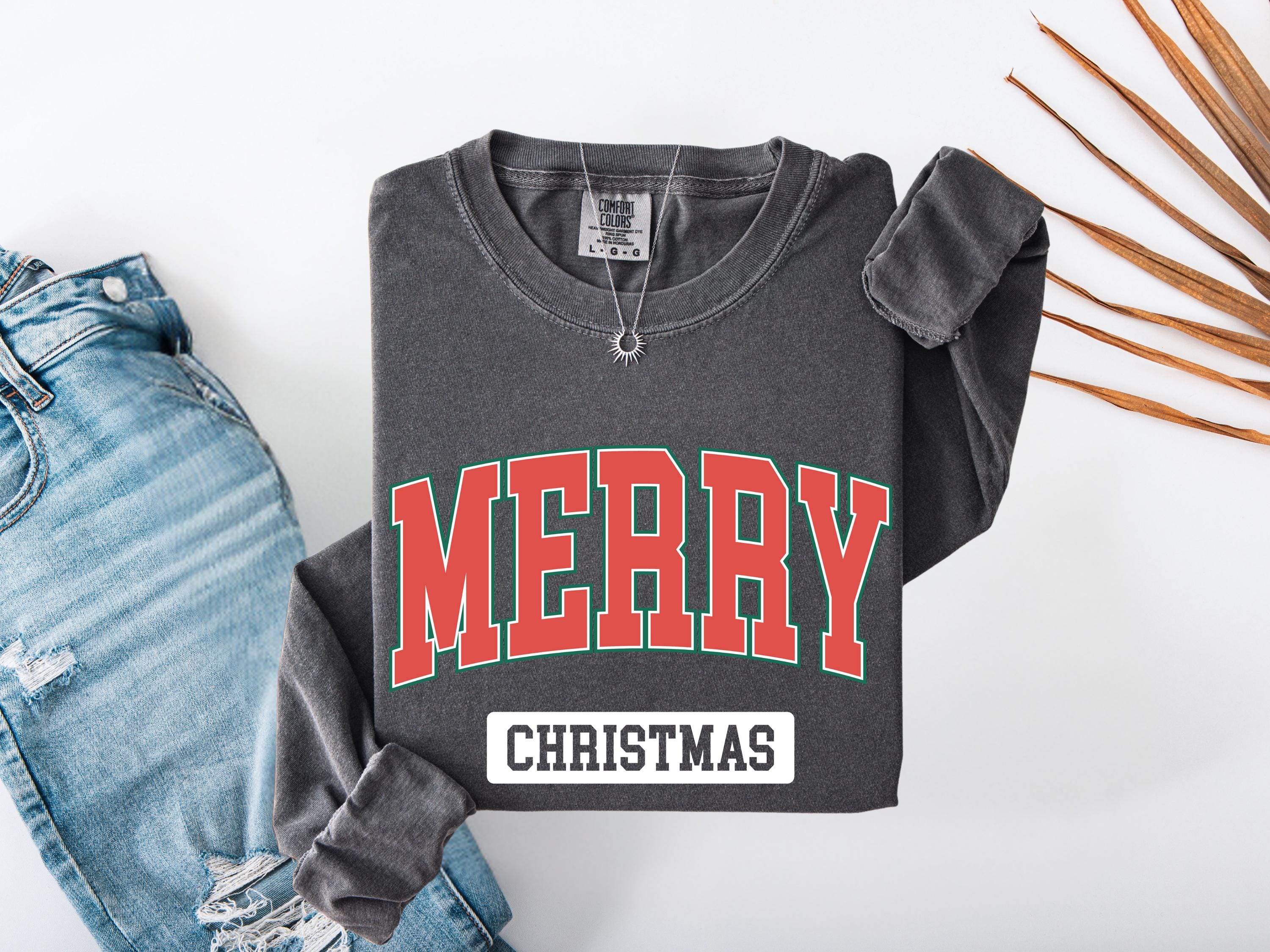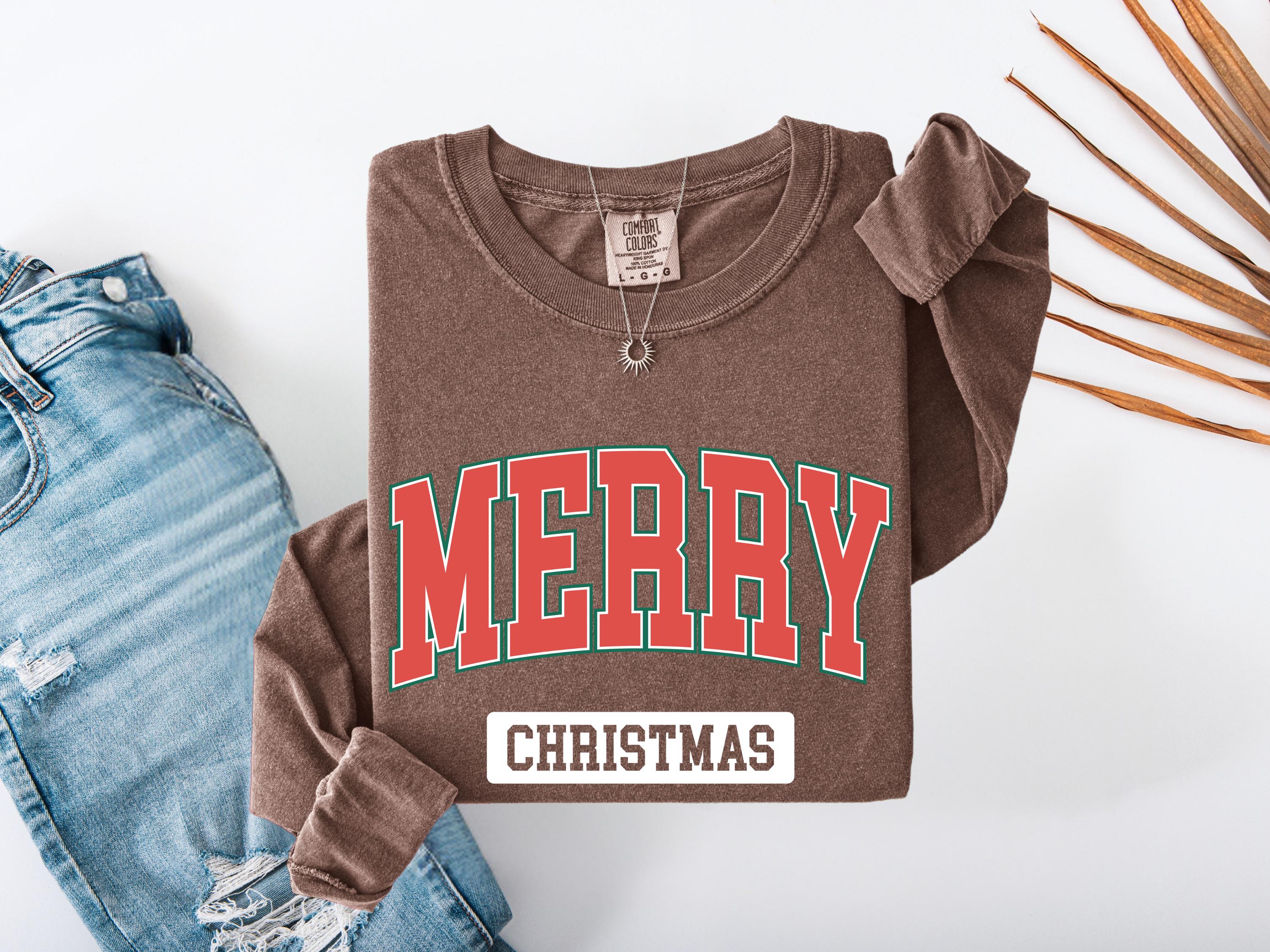 Preppy Merry Christmas long sleeve printed on authentic Comfort Colors for the soft, cozy, washed-in feel everyone loves. Perfect for holiday parties, baking nights, classroom celebrations, Christmas morning photos, or gifting. Cute, comfy, relaxed fit — your new favorite festive long sleeve for the entire winter season.