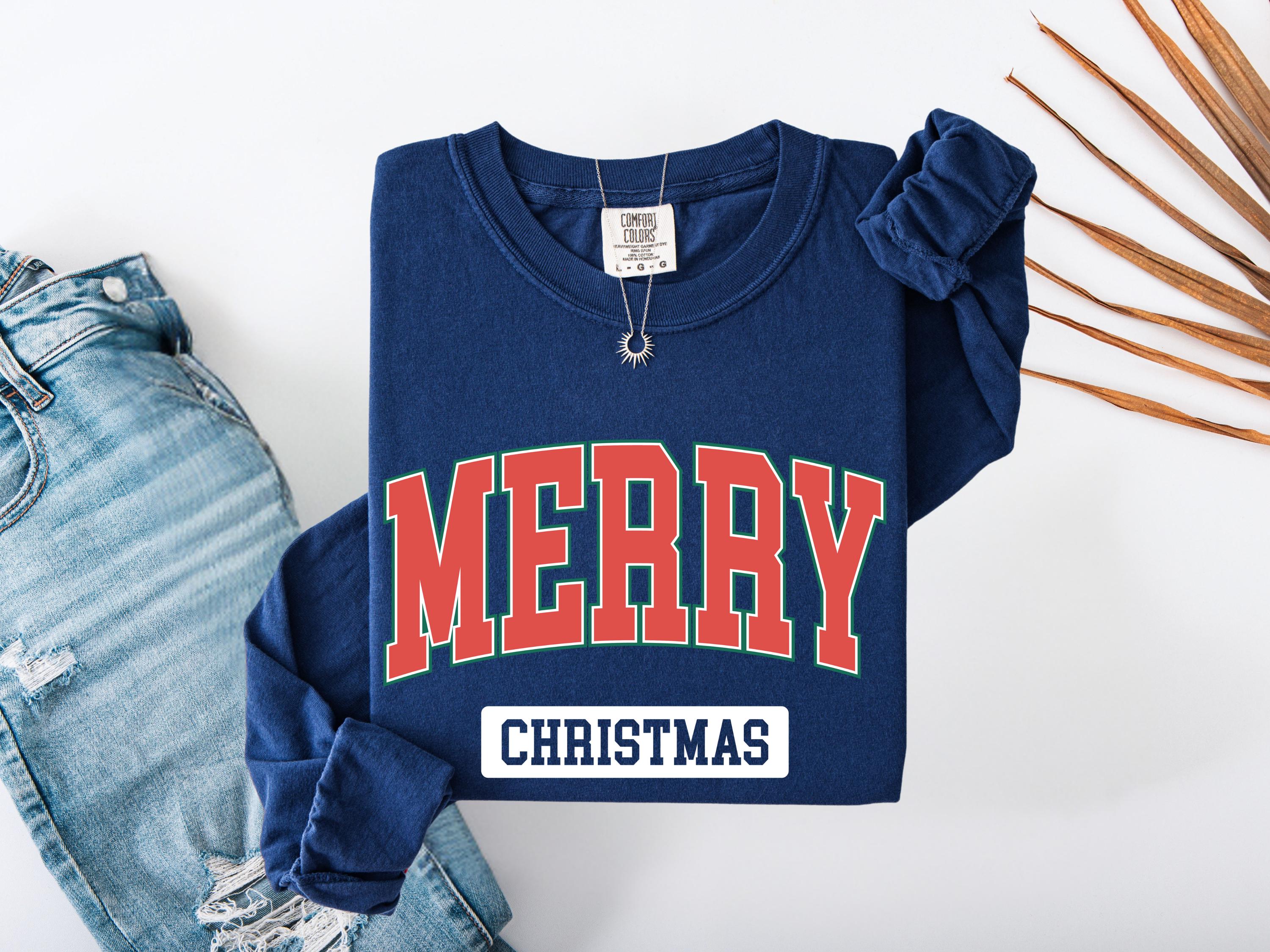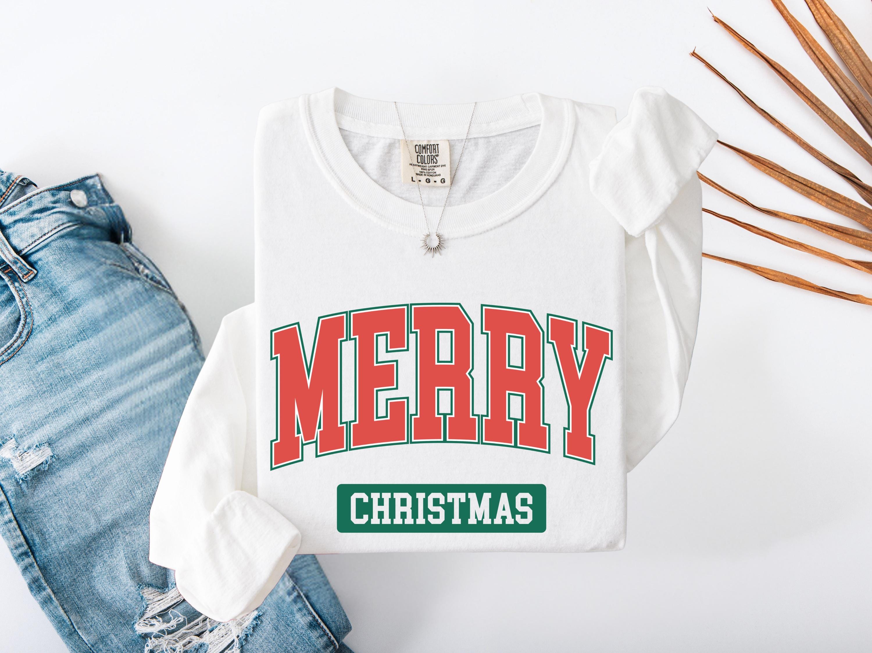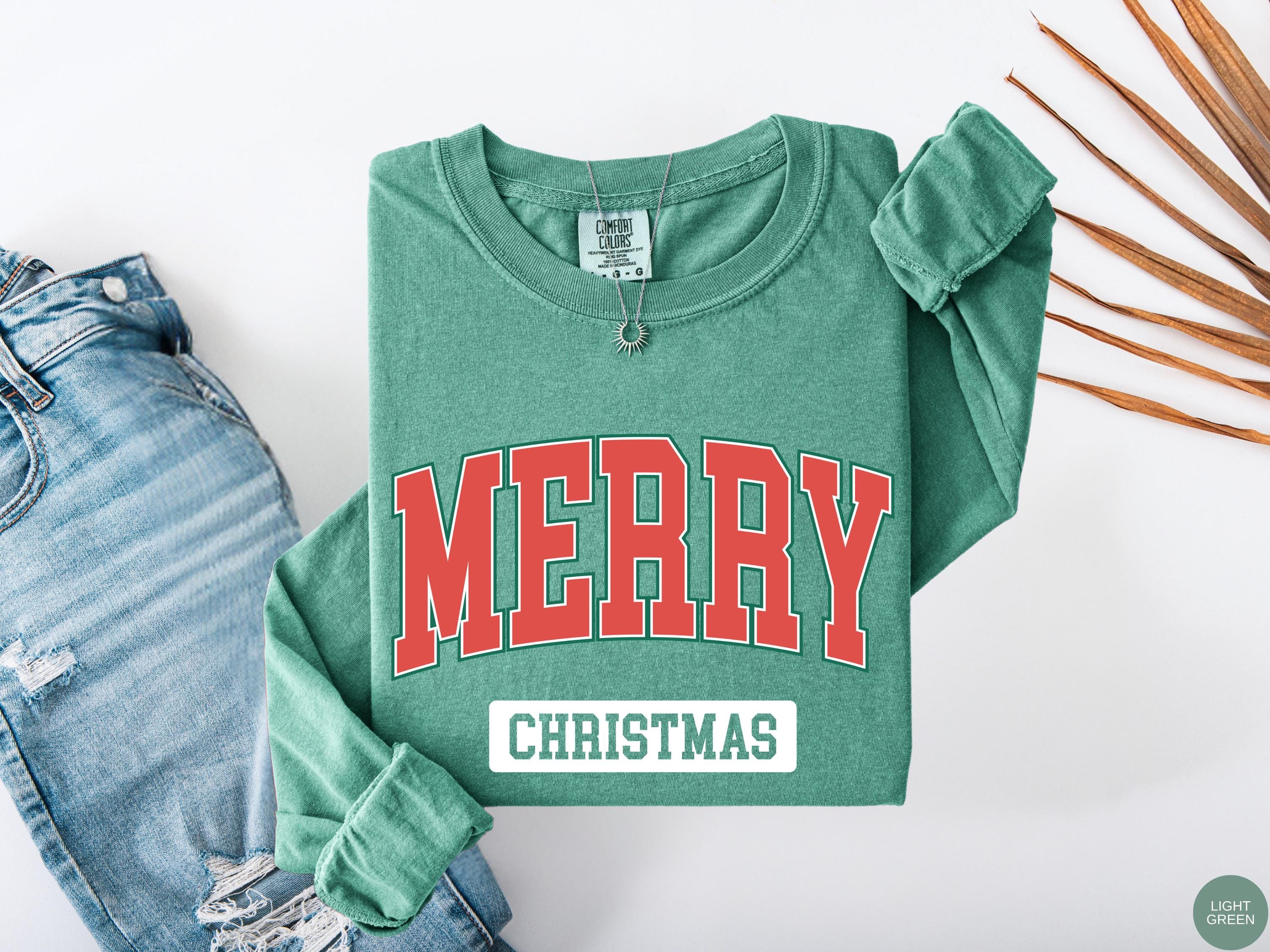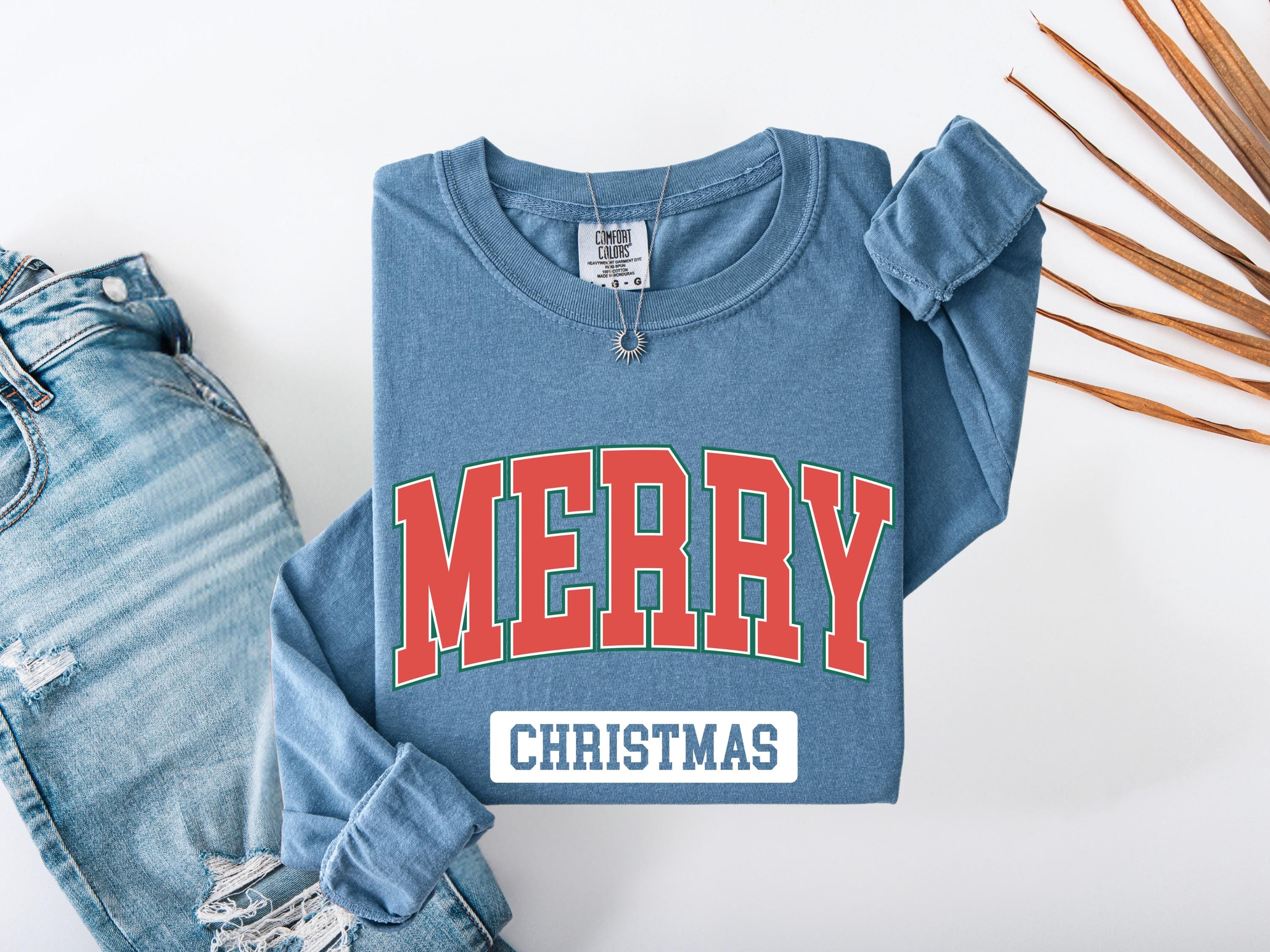 Preppy Merry Christmas long sleeve printed on authentic Comfort Colors for the soft, cozy, washed-in feel everyone loves. Perfect for holiday parties, baking nights, classroom celebrations, Christmas morning photos, or gifting. Cute, comfy, relaxed fit — your new favorite festive long sleeve for the entire winter season.