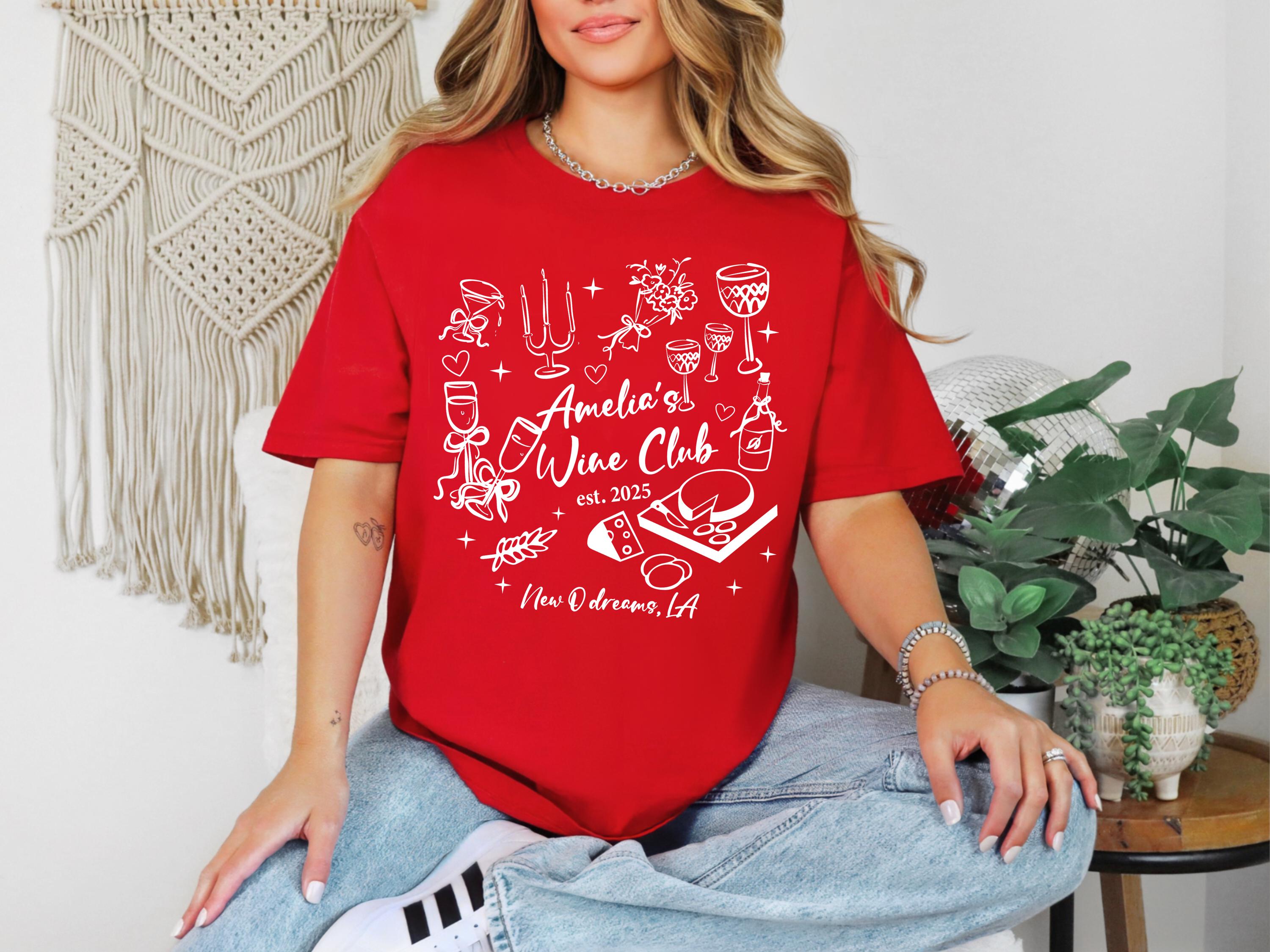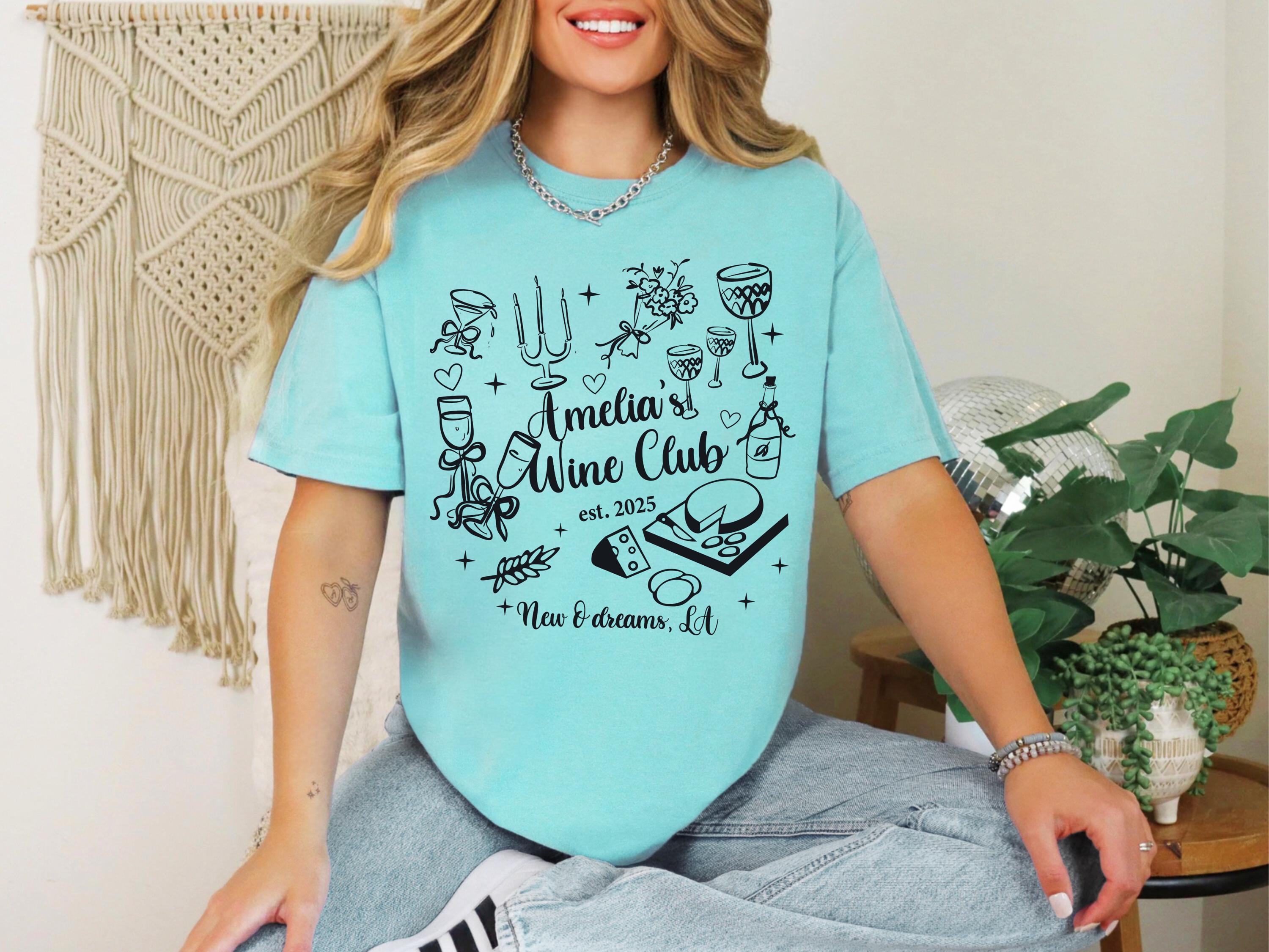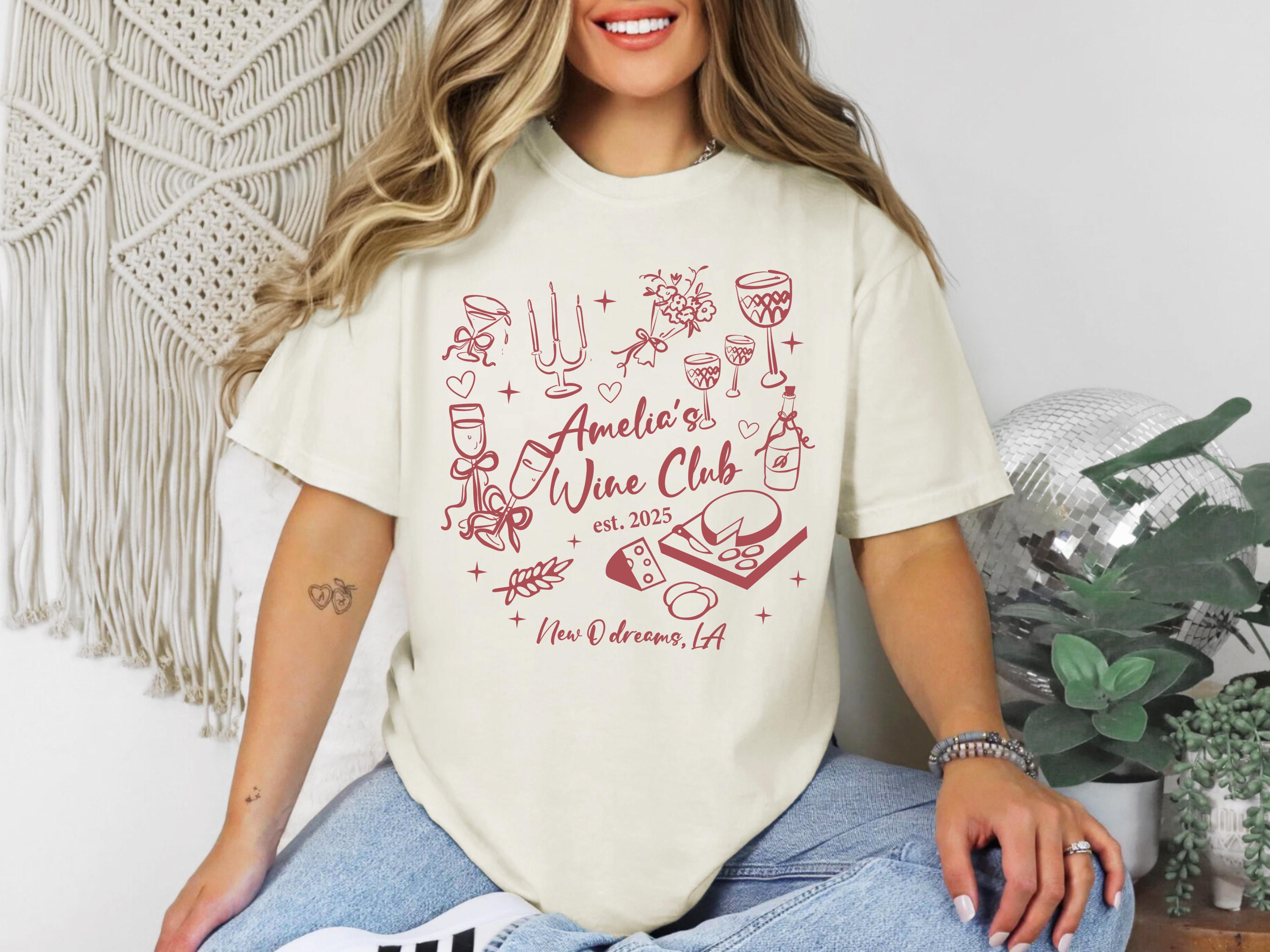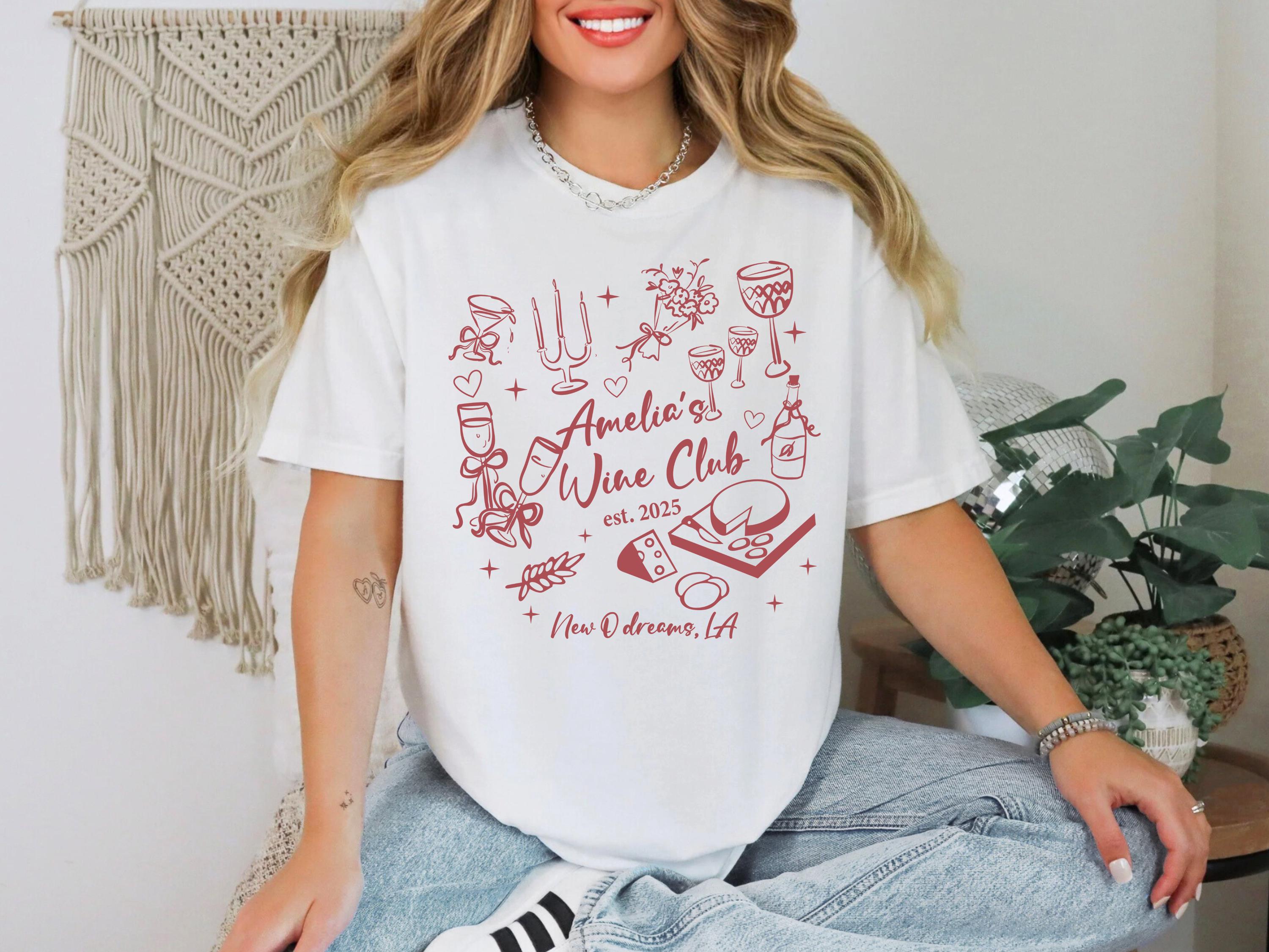 A cozy and fun wine-themed for girls nights, wine club meetups, bachelorette trips, birthdays, and weekend gatherings. Customizable with names, dates, or locations to make it personal and memorable. Perfect gift for your best friends, sister, bridesmaids, brides, or anyone who loves a cute wine night aesthetic.