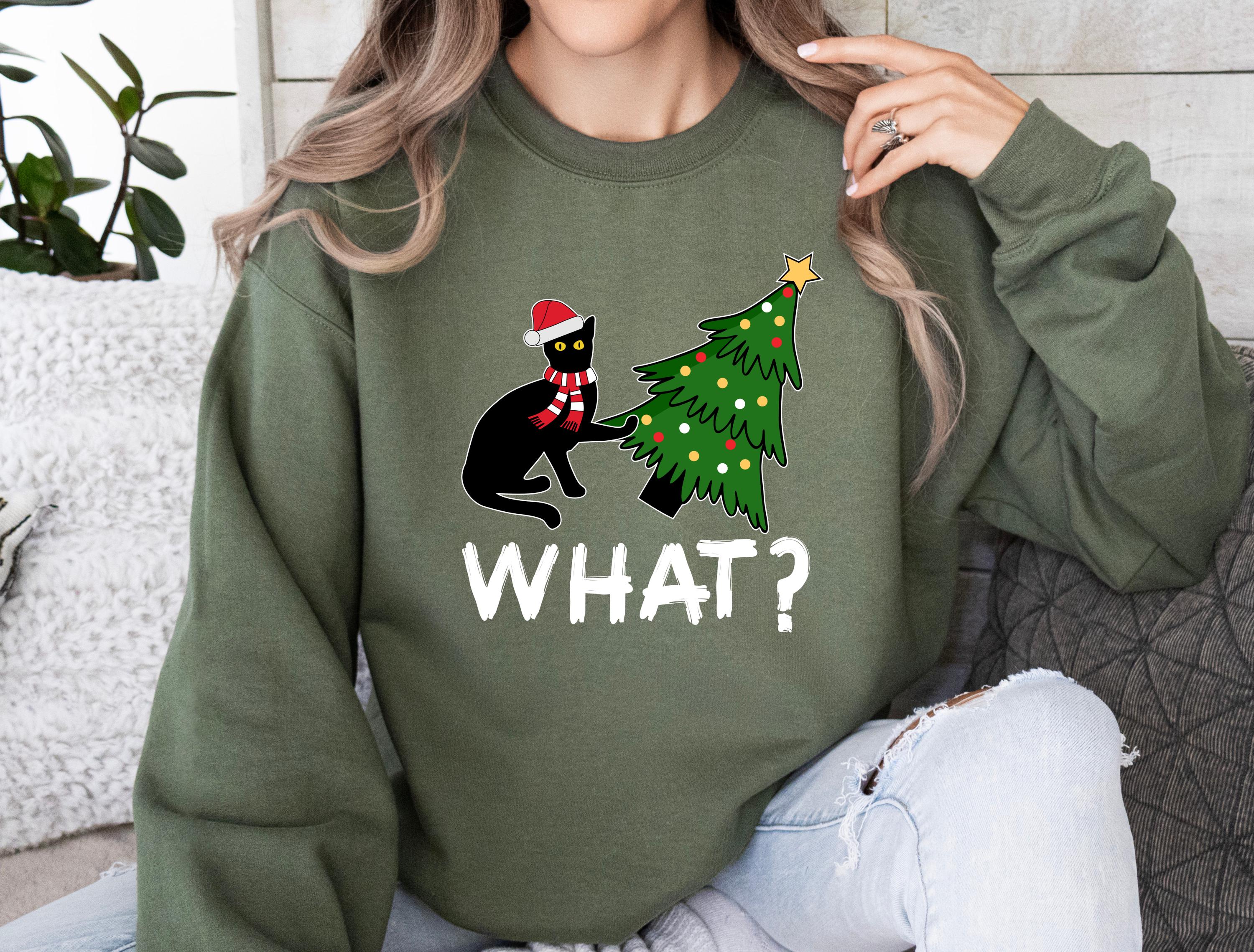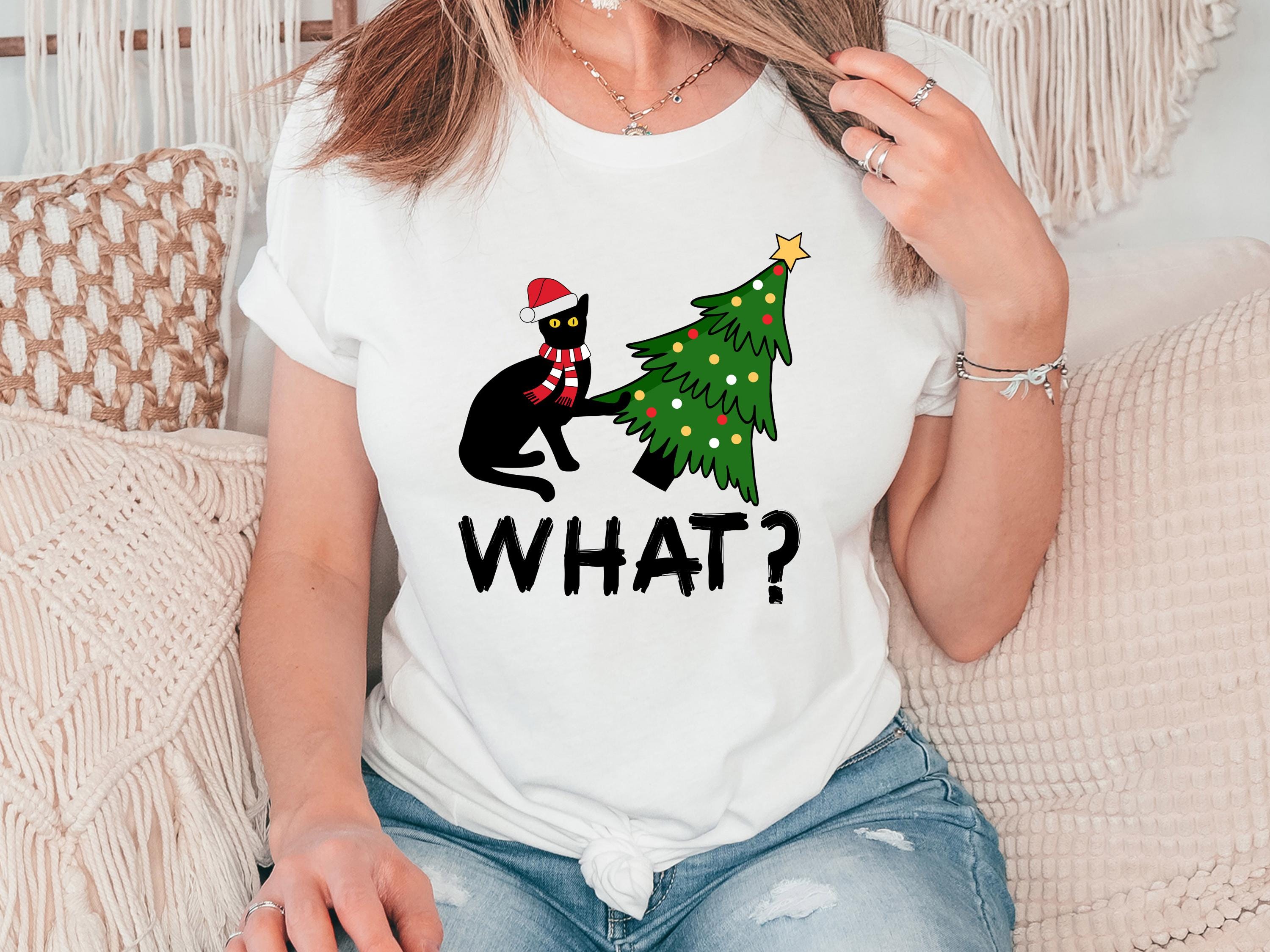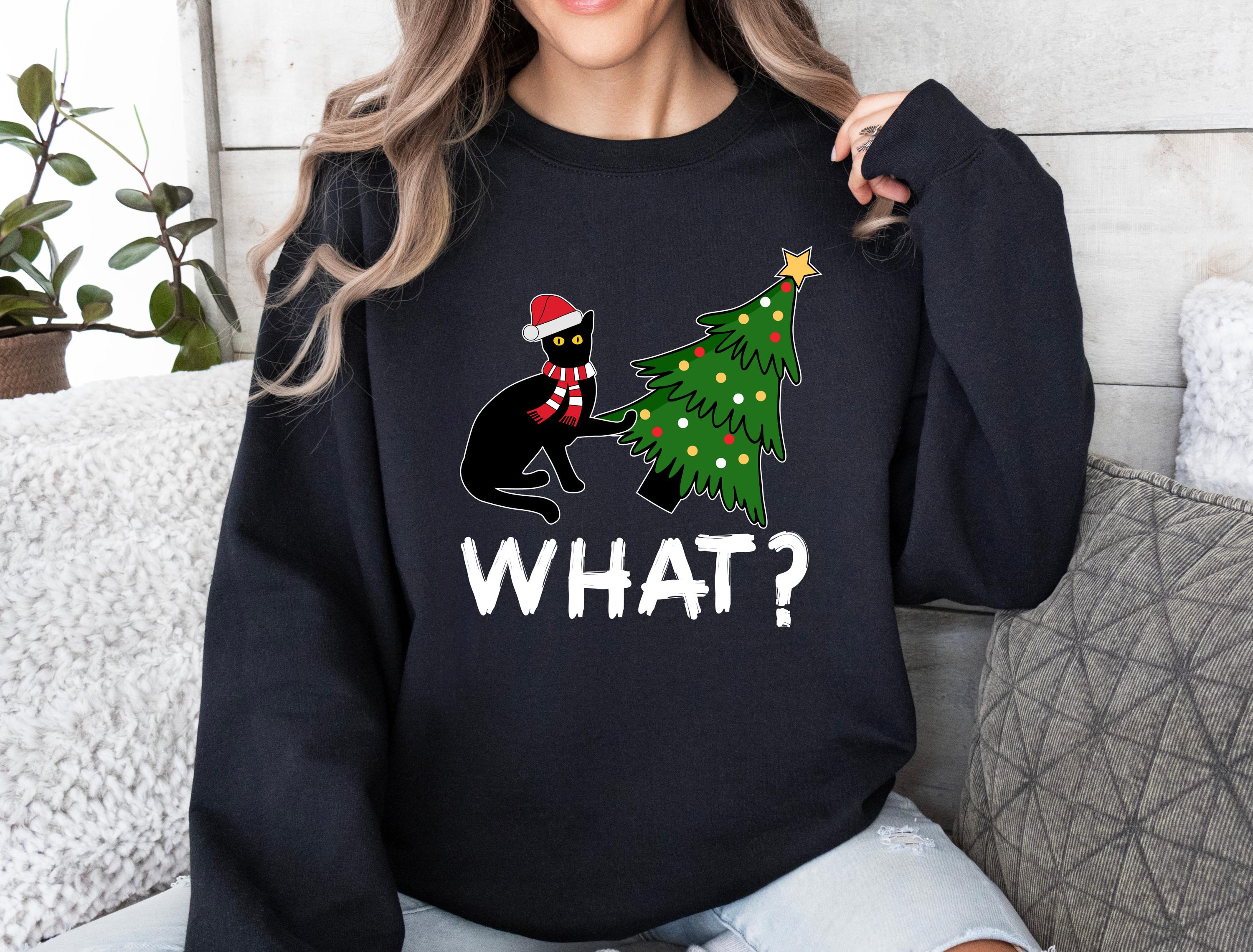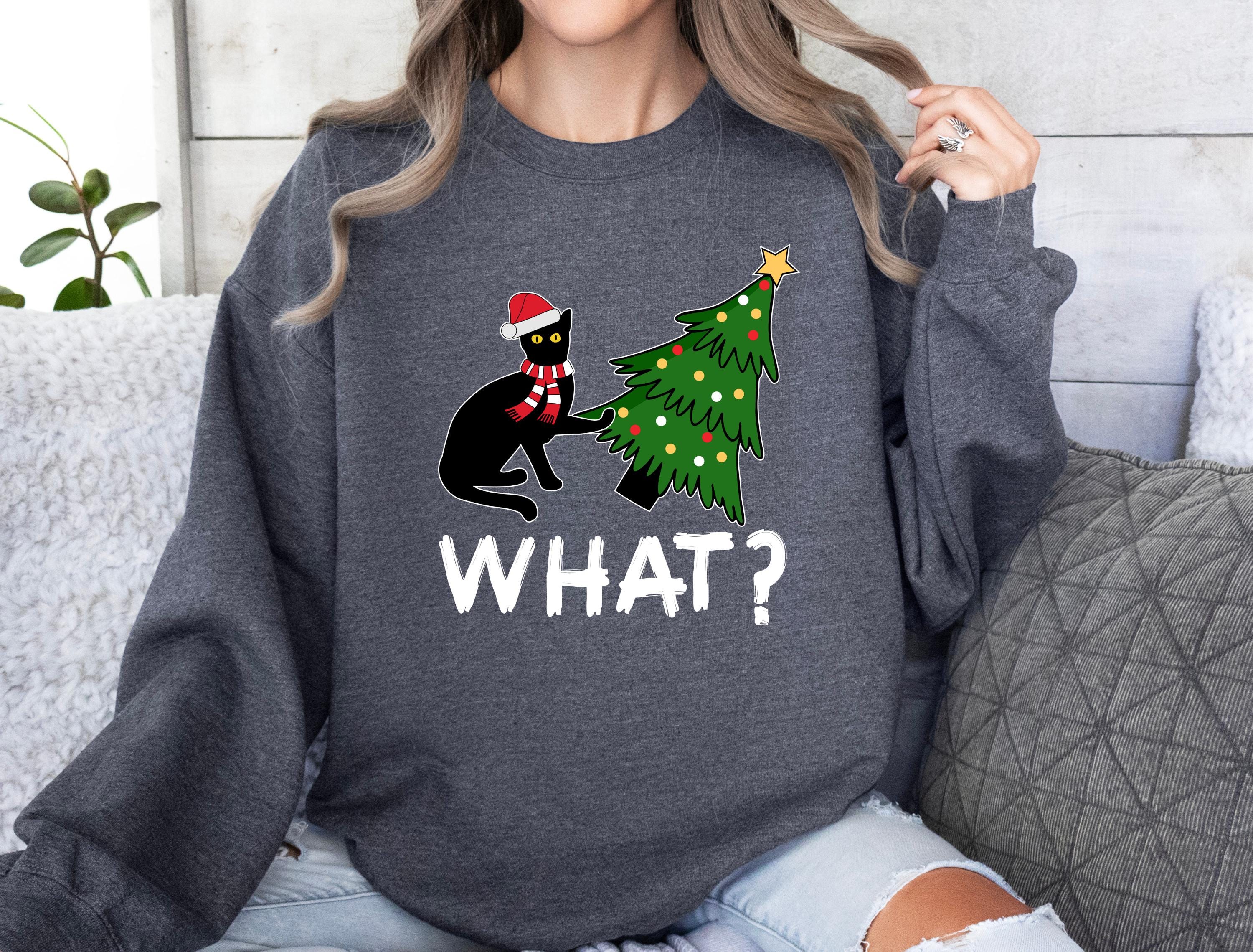 Available as both t-shirt and sweatshirt, this cute unisex style brings the perfect mix of humor and Christmas vibes. 🐱🎄✨