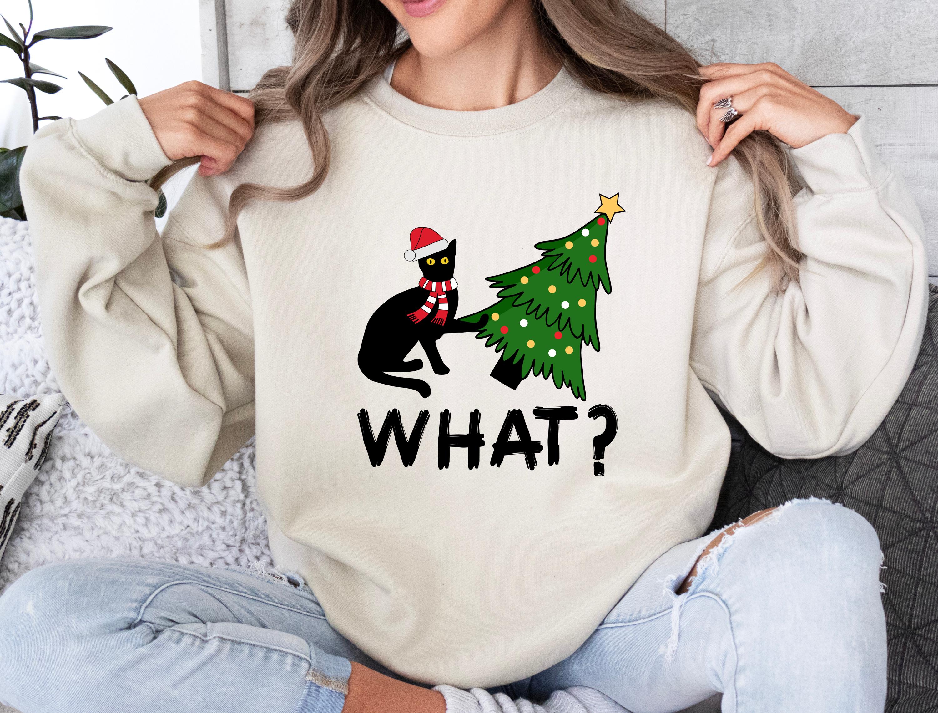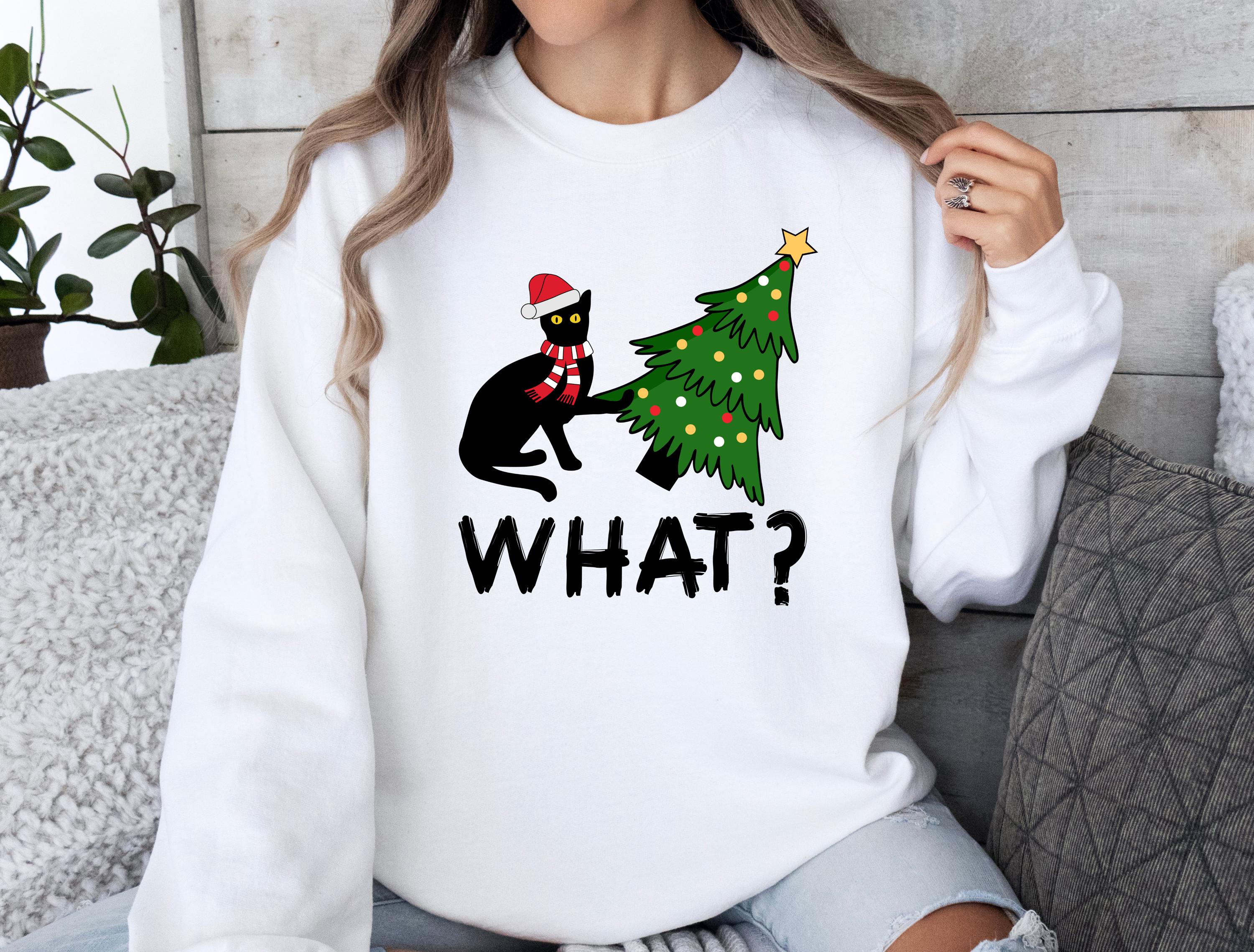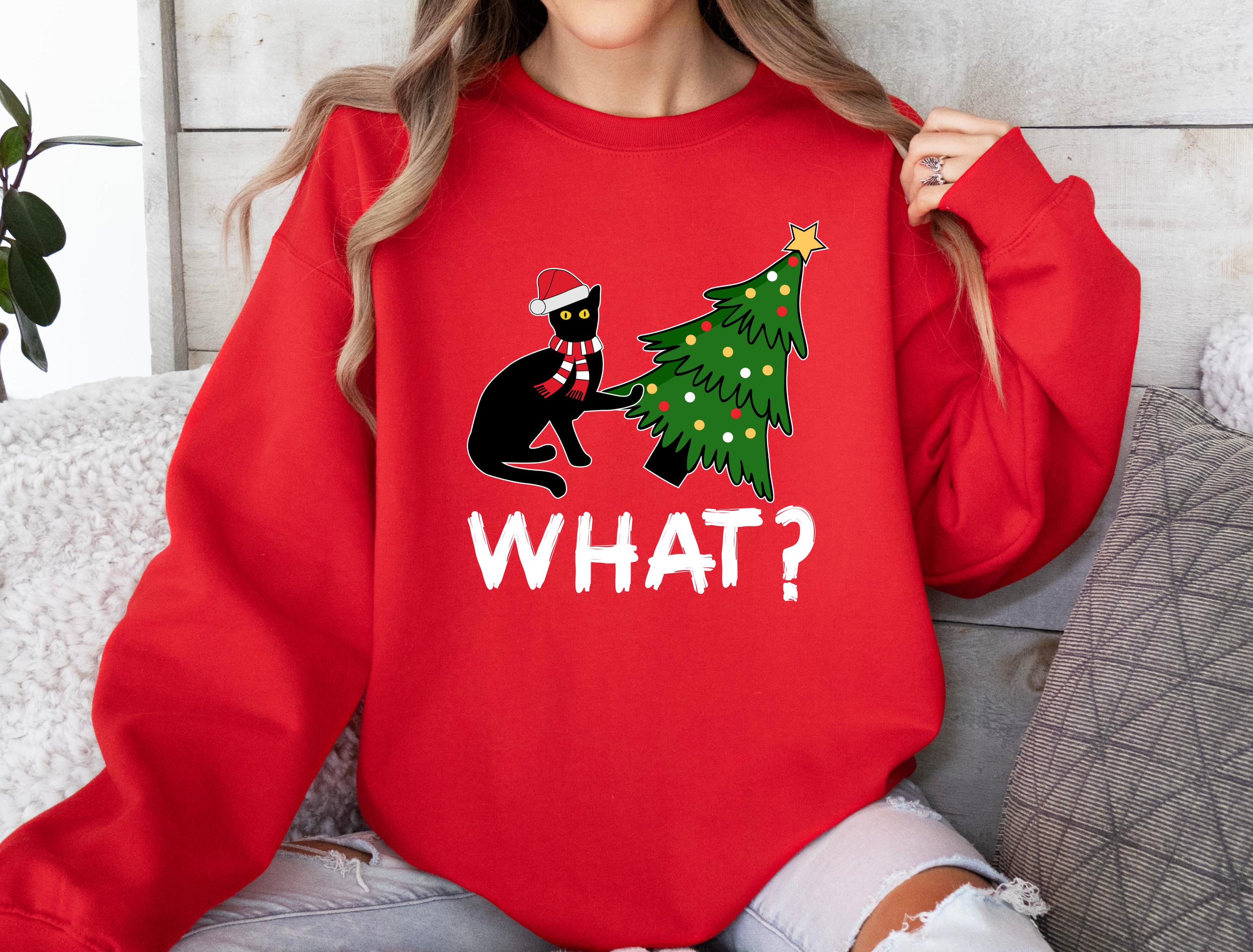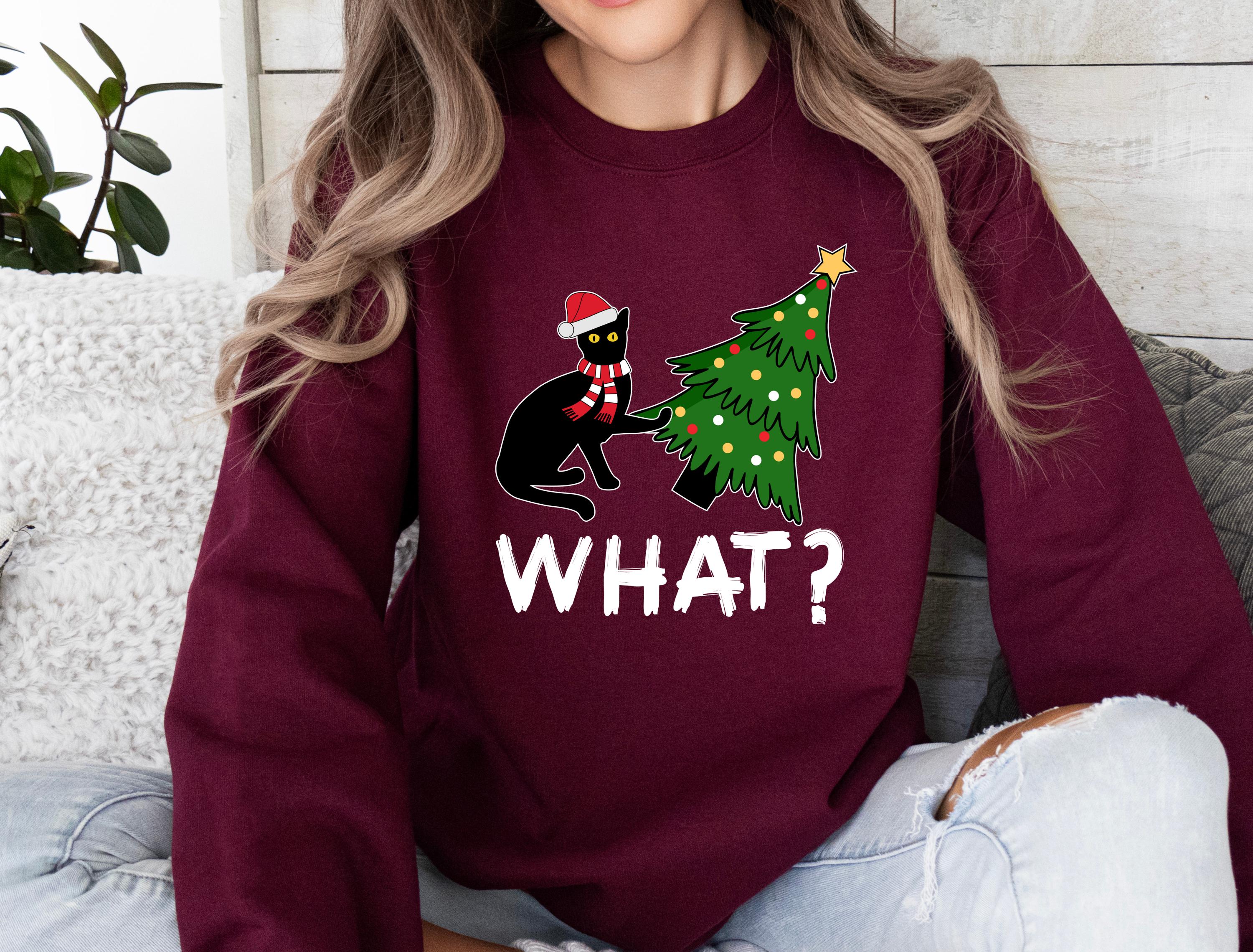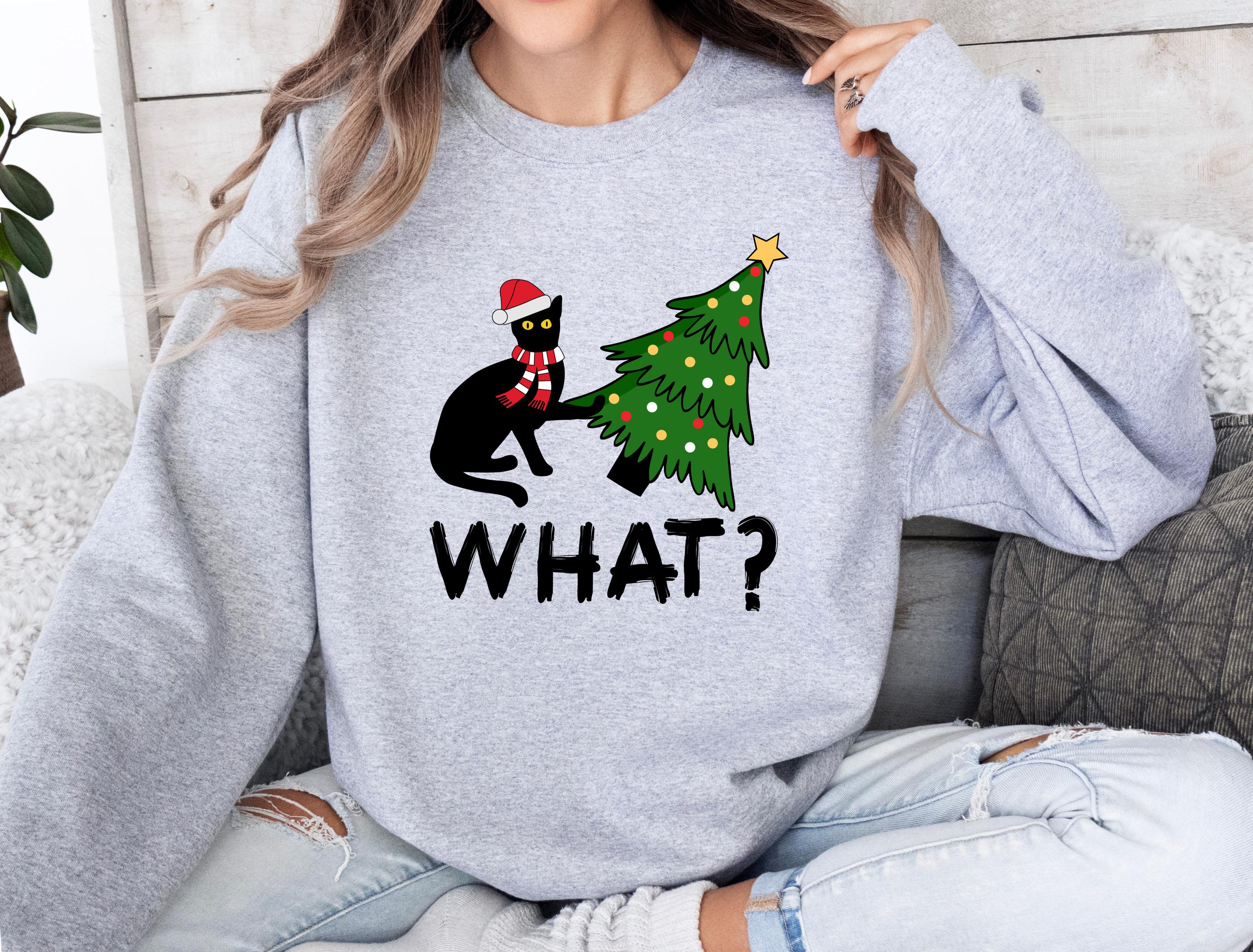 Available as both t-shirt and sweatshirt, this cute unisex style brings the perfect mix of humor and Christmas vibes. 🐱🎄✨