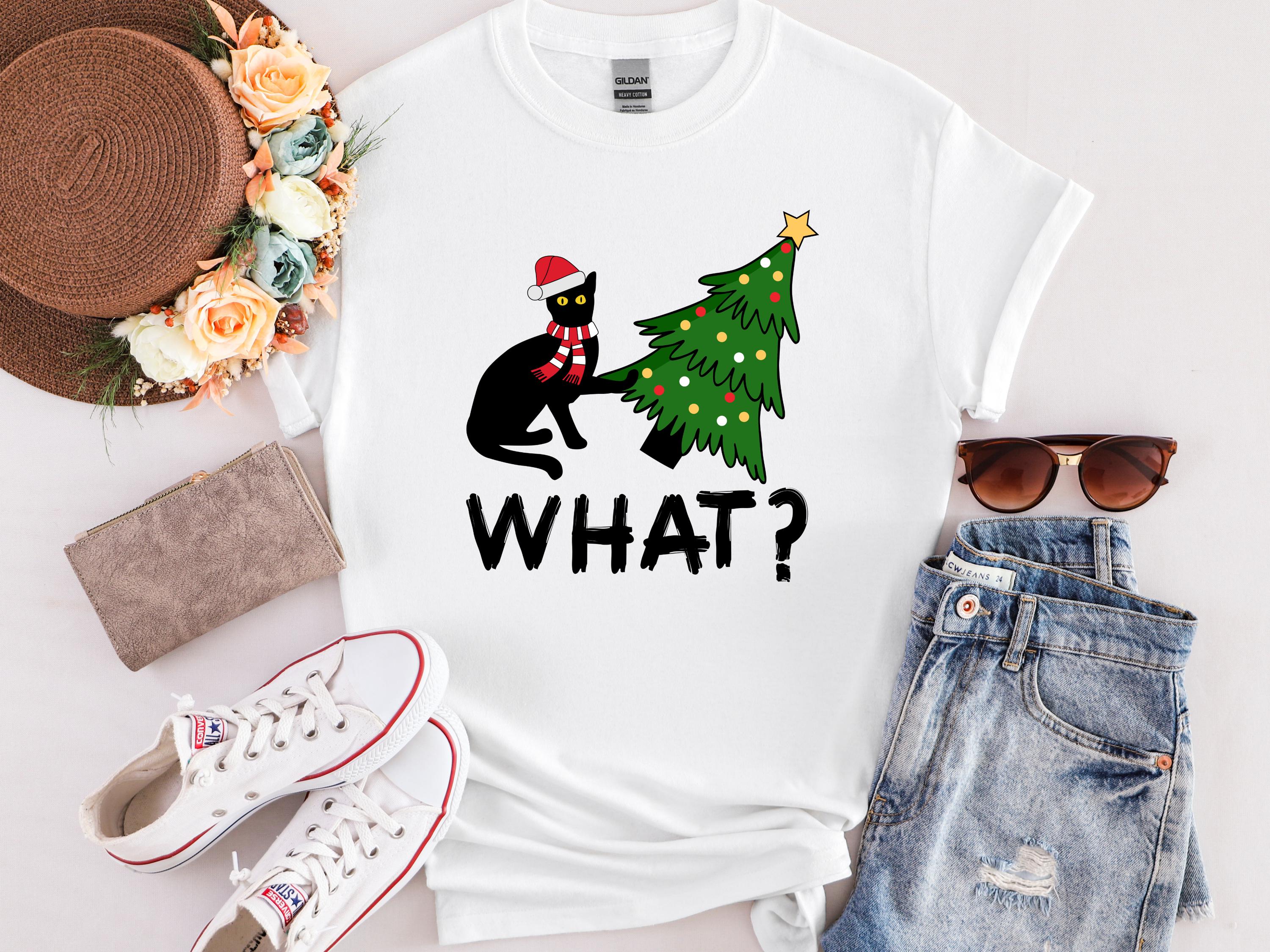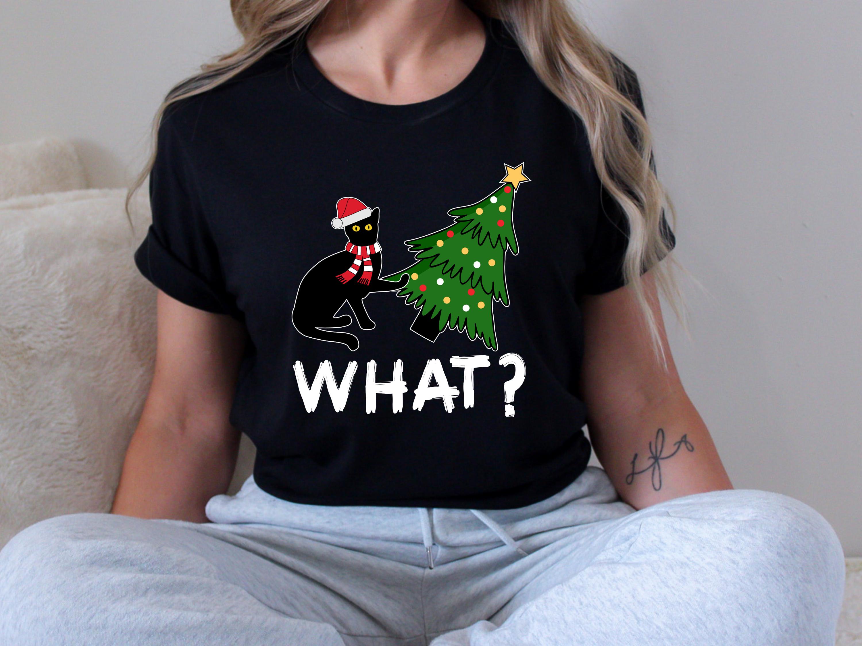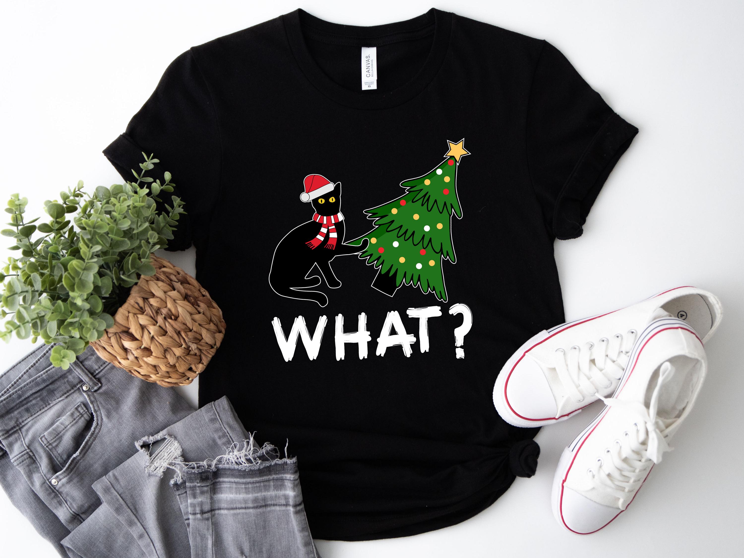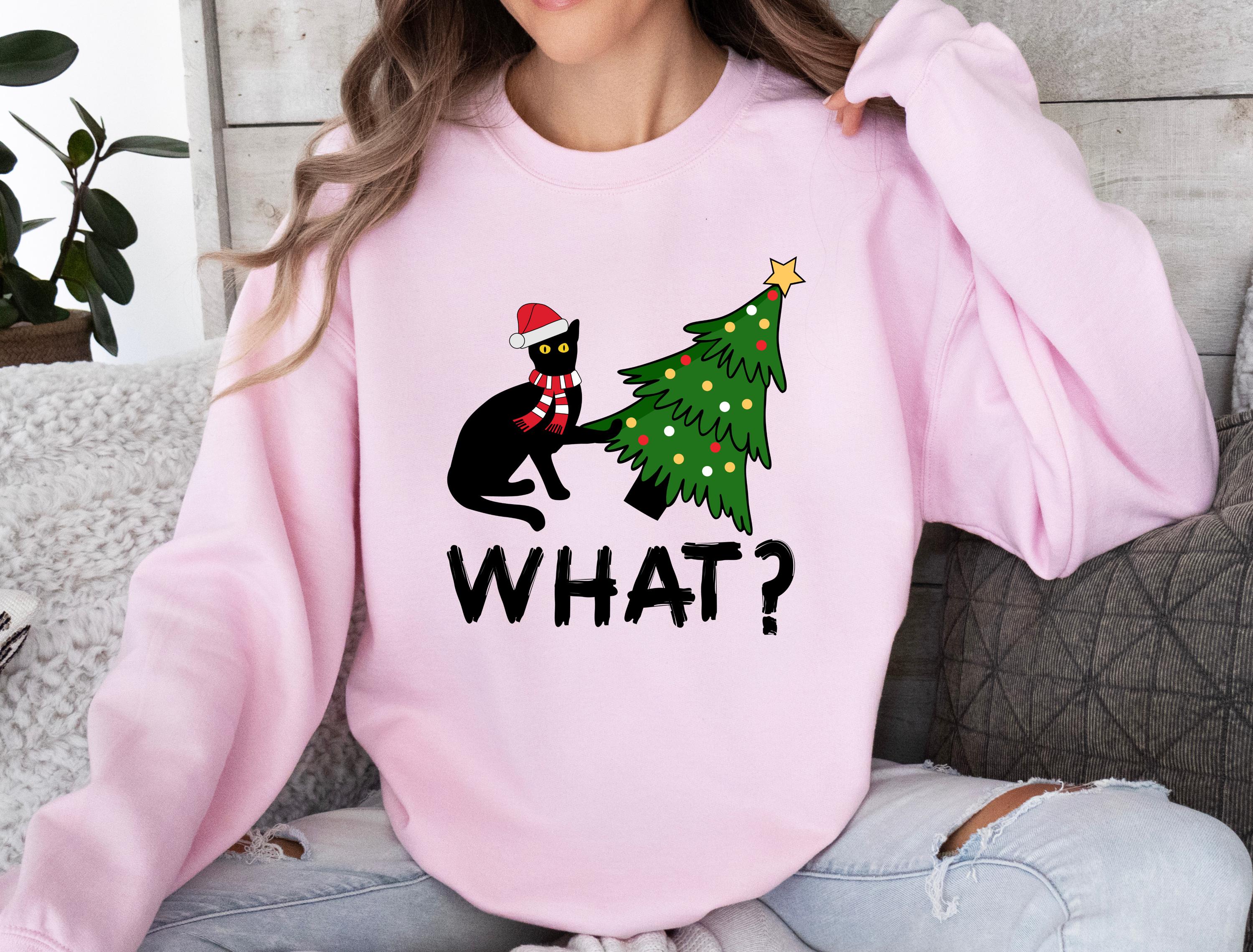 Available as both t-shirt and sweatshirt, this cute unisex style brings the perfect mix of humor and Christmas vibes. 🐱🎄✨