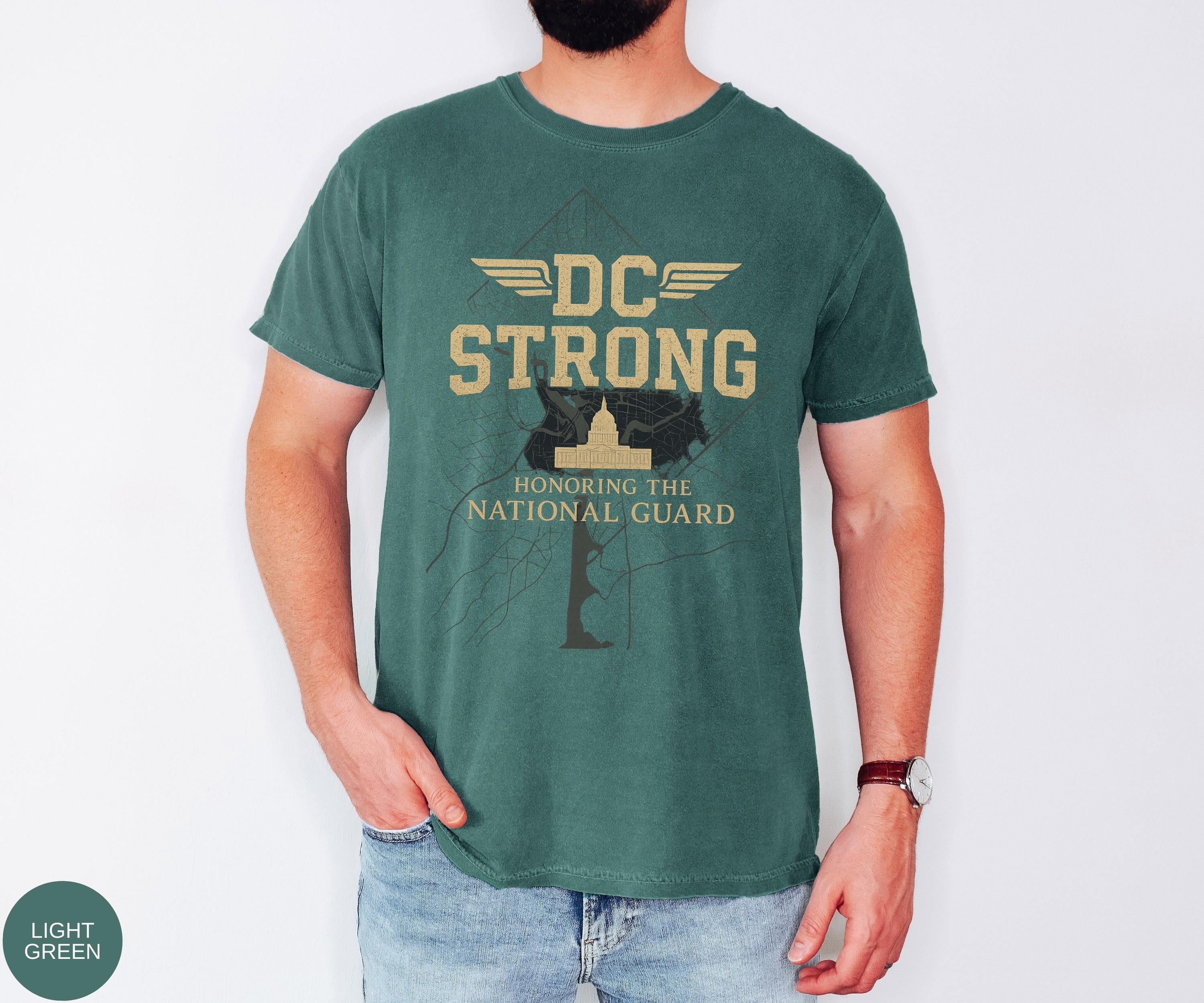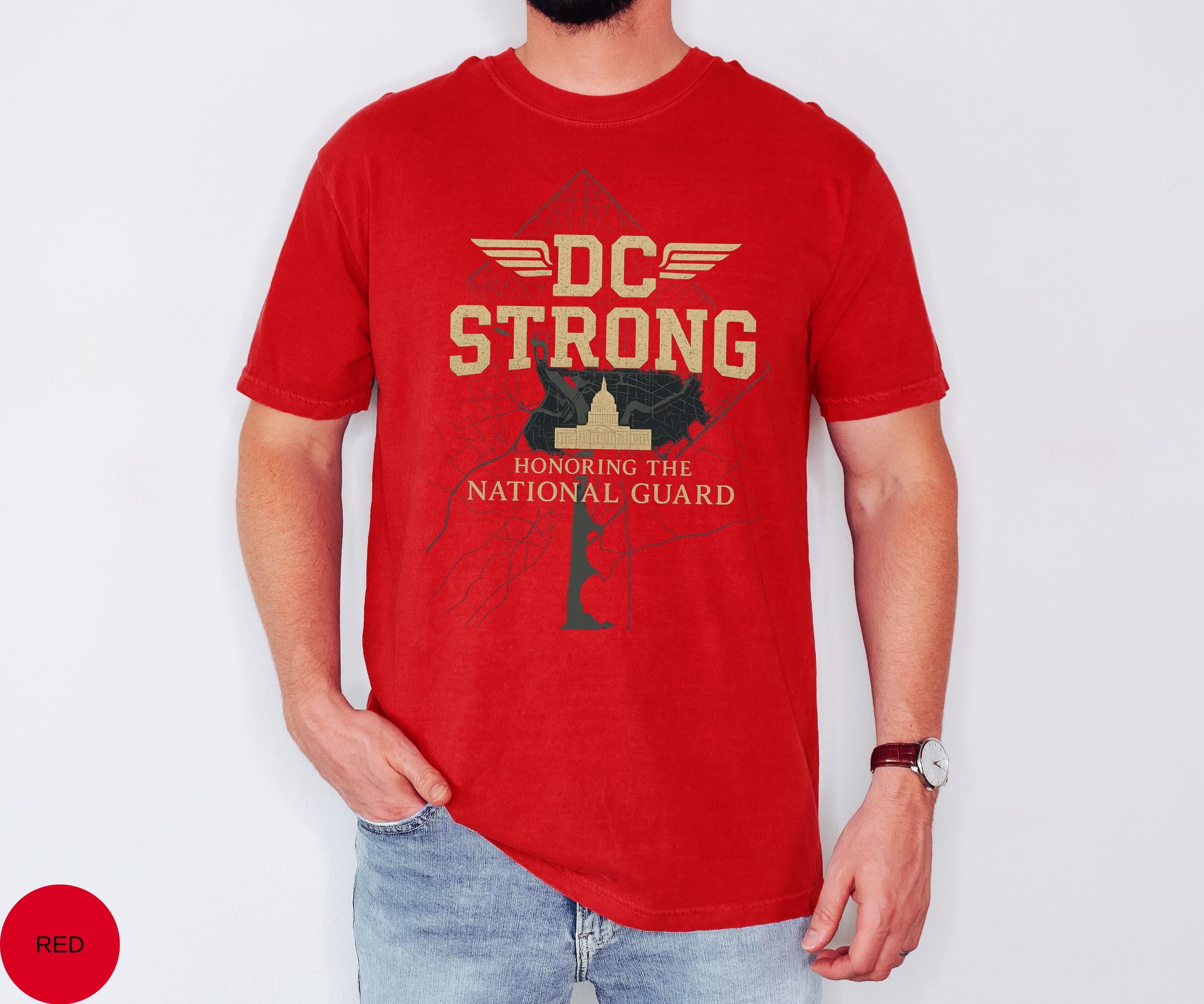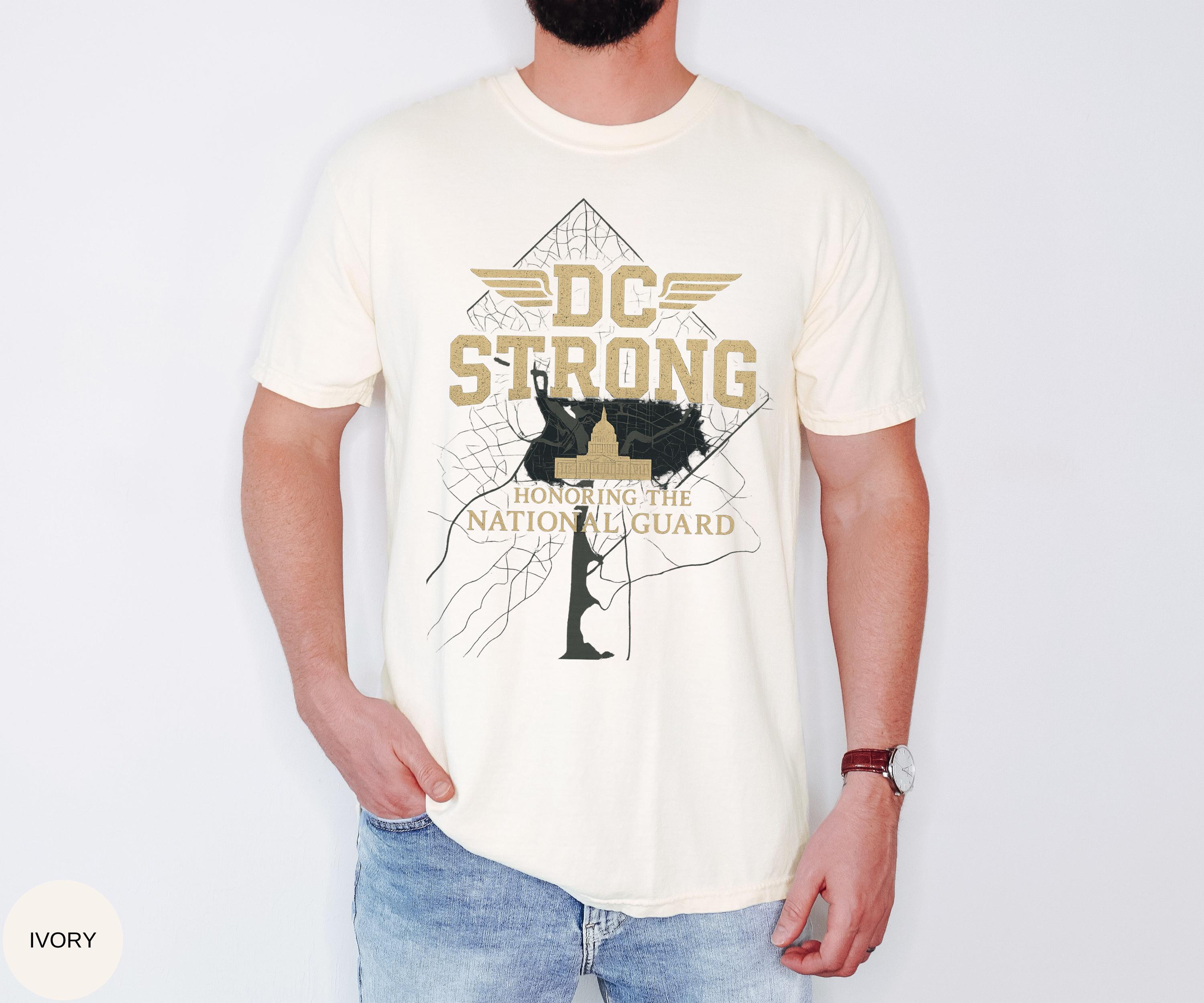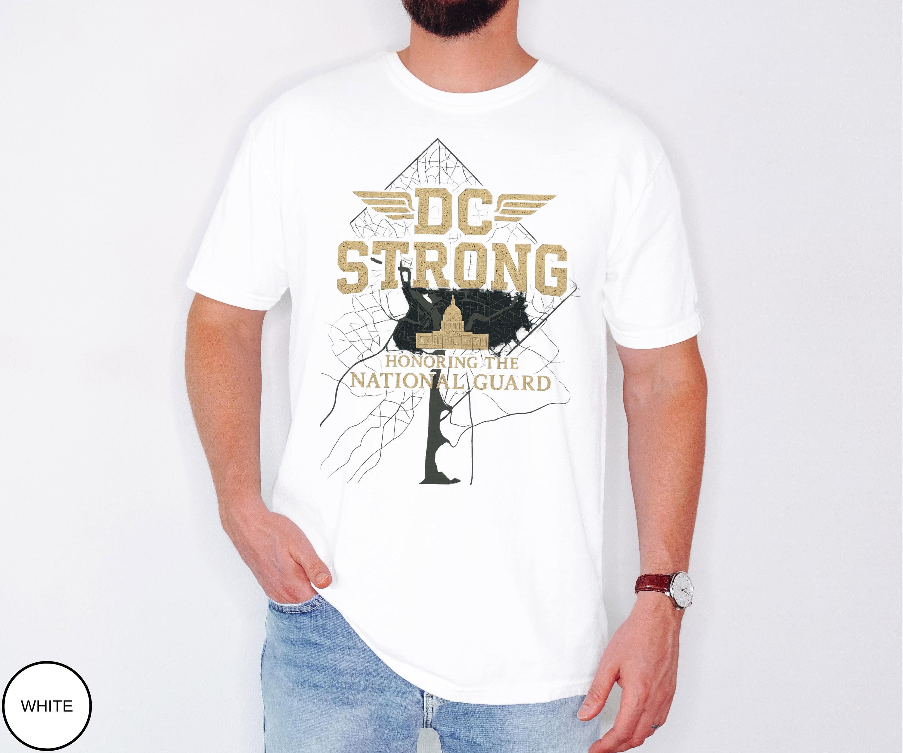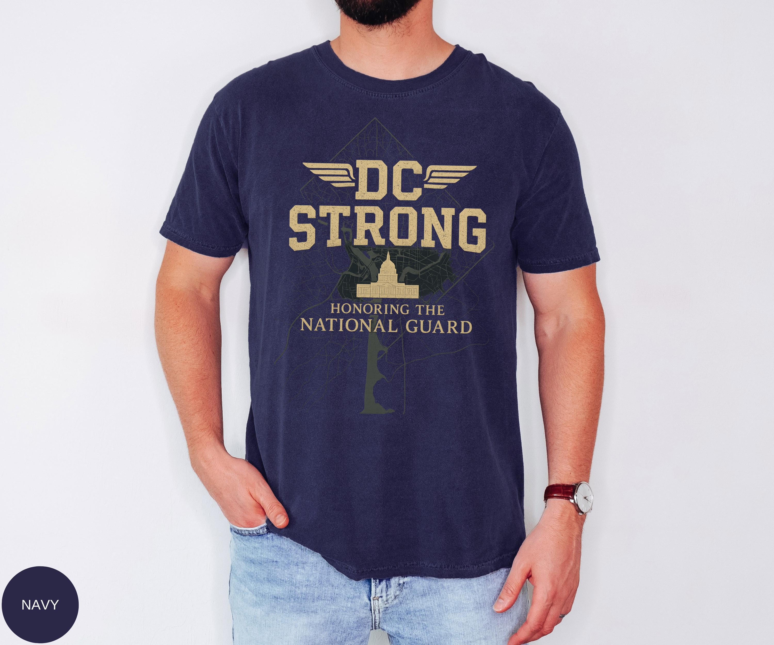 DC Strong tribute shirt honoring the National Guard. A meaningful patriotic design to support our heroes and stand with Washington D.C. Perfect for military families, veterans, memorial events, parades, ceremonies, and national pride occasions. A powerful gift for those who support our troops and remember their sacrifice. Custom date or location available.
