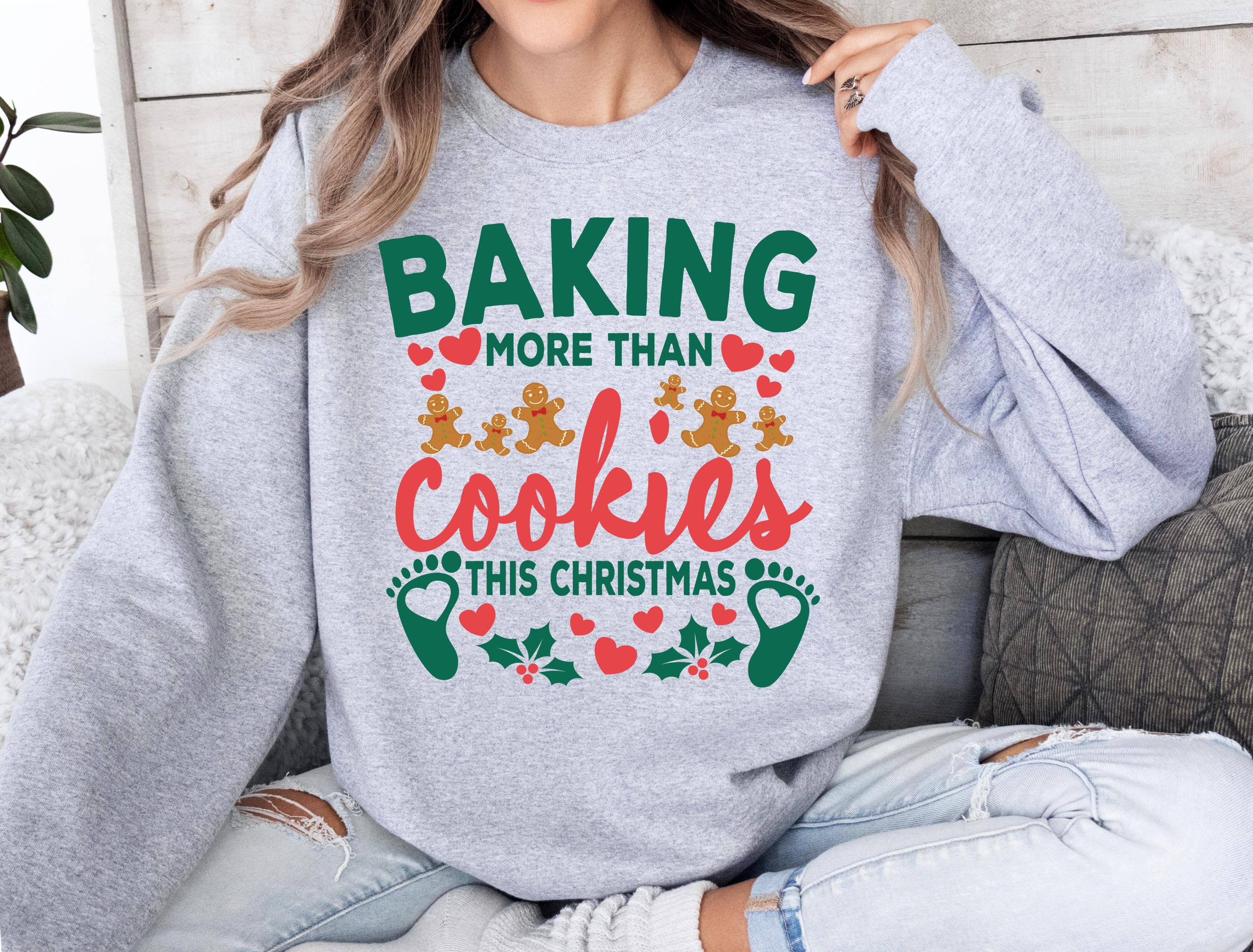 Make your holiday season extra sweet and memorable with this adorable "Baking More Than Cookies" design! Perfect for a festive pregnancy announcement, this custom shirt is the cutest way to share your big news at a family Christmas party or in a holiday card photo.