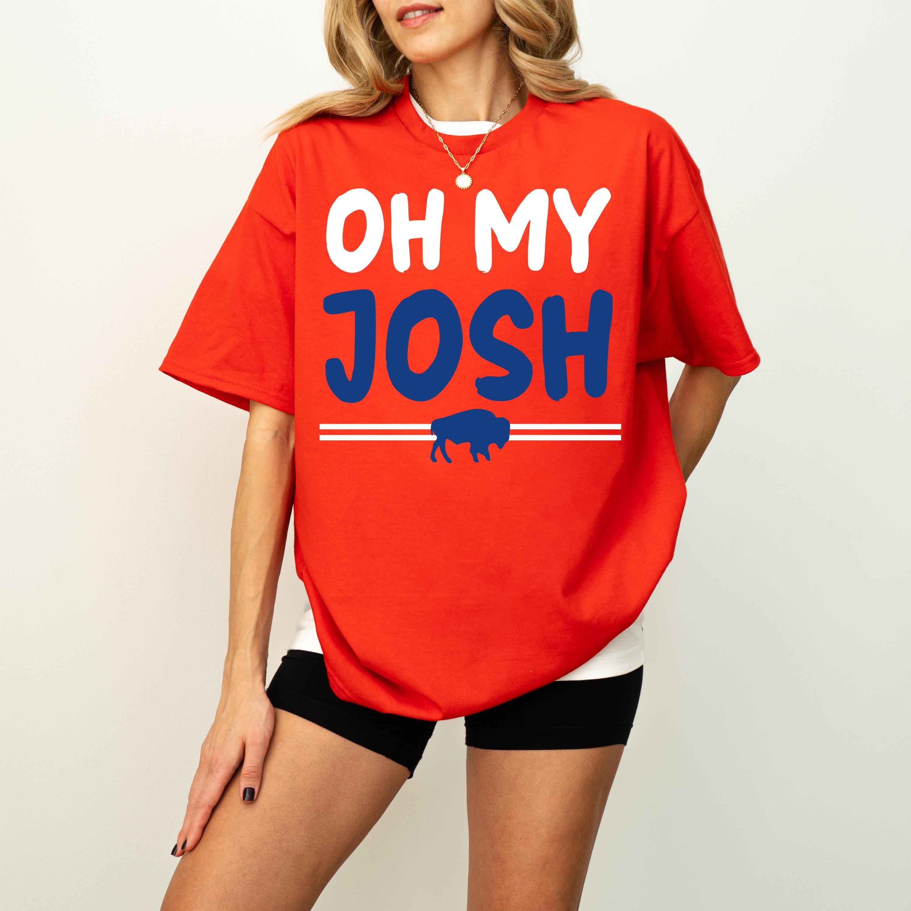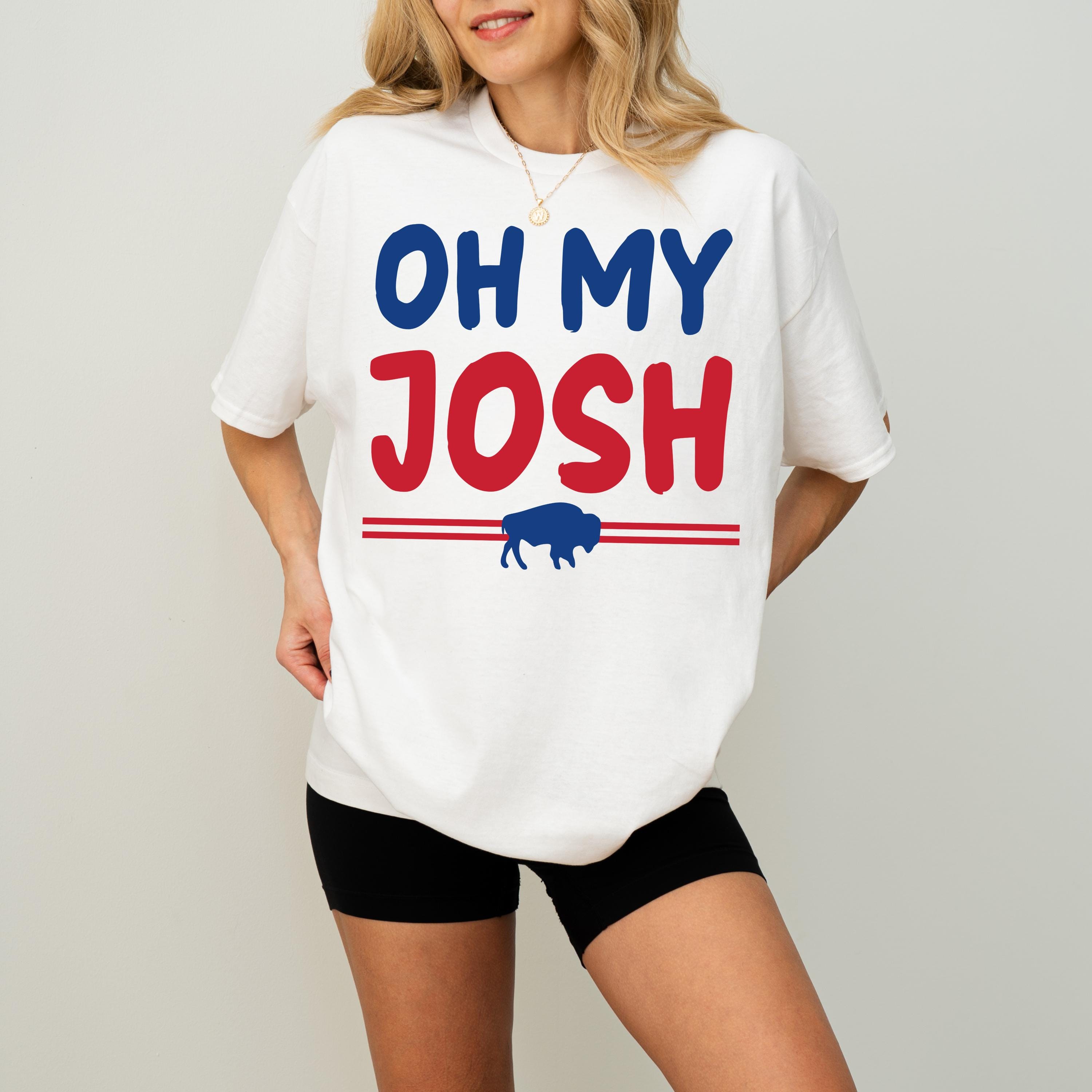 Get ready to cheer on your favorite quarterback in style with this fun "Oh My Josh" shirt! Perfect for Sunday football, this design captures the excitement of Buffalo game days with its classic red, white, and blue aesthetic.