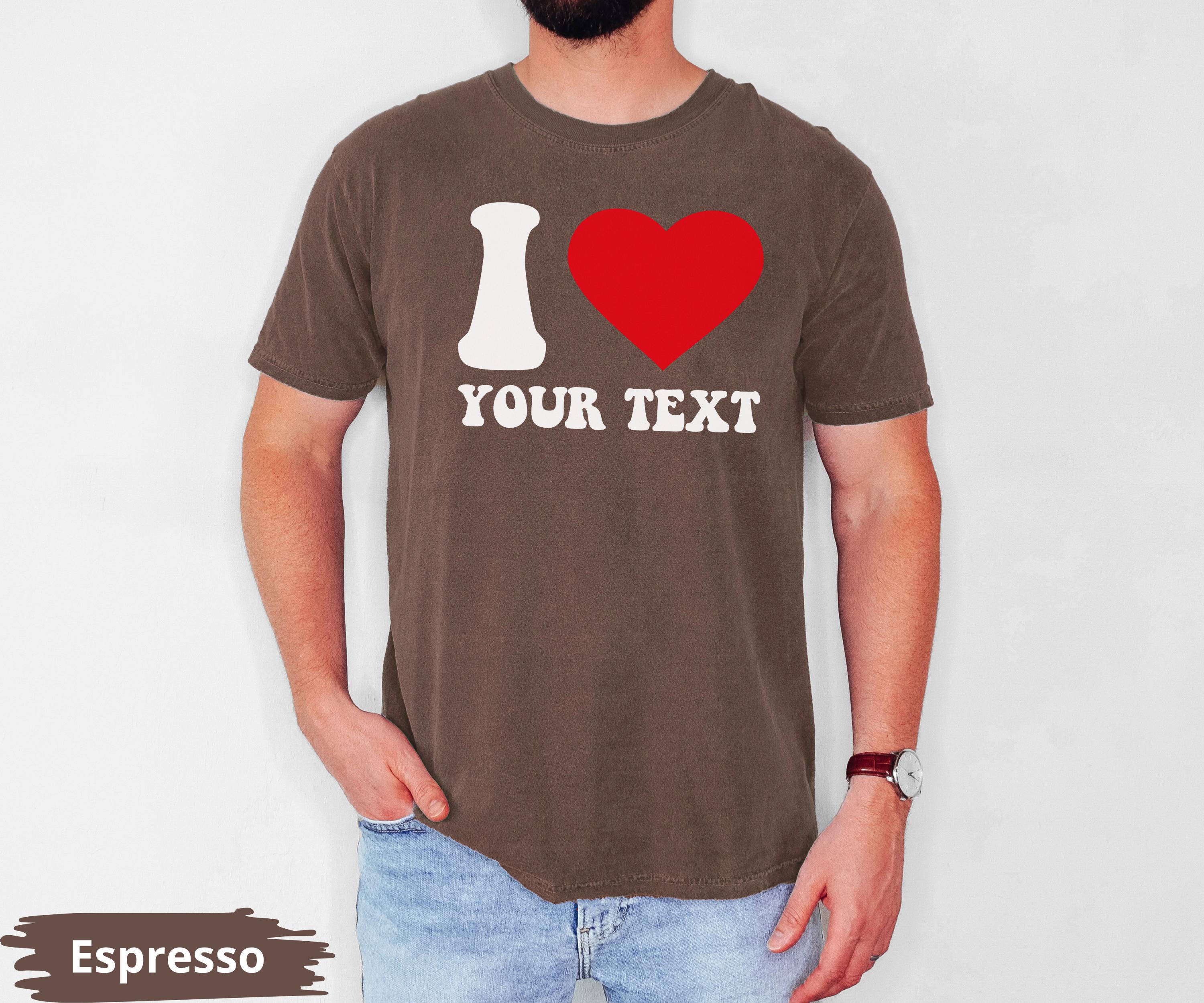 Create a one-of-a-kind unisex statement piece with this personalized “I ❤️ YOUR TEXT” design—made to fit everyone and perfect for everyday wear. Add any name, word, or phrase to make it yours: boyfriend, husband, kids, bestie, dog, teacher, city, team name, nickname, and more.