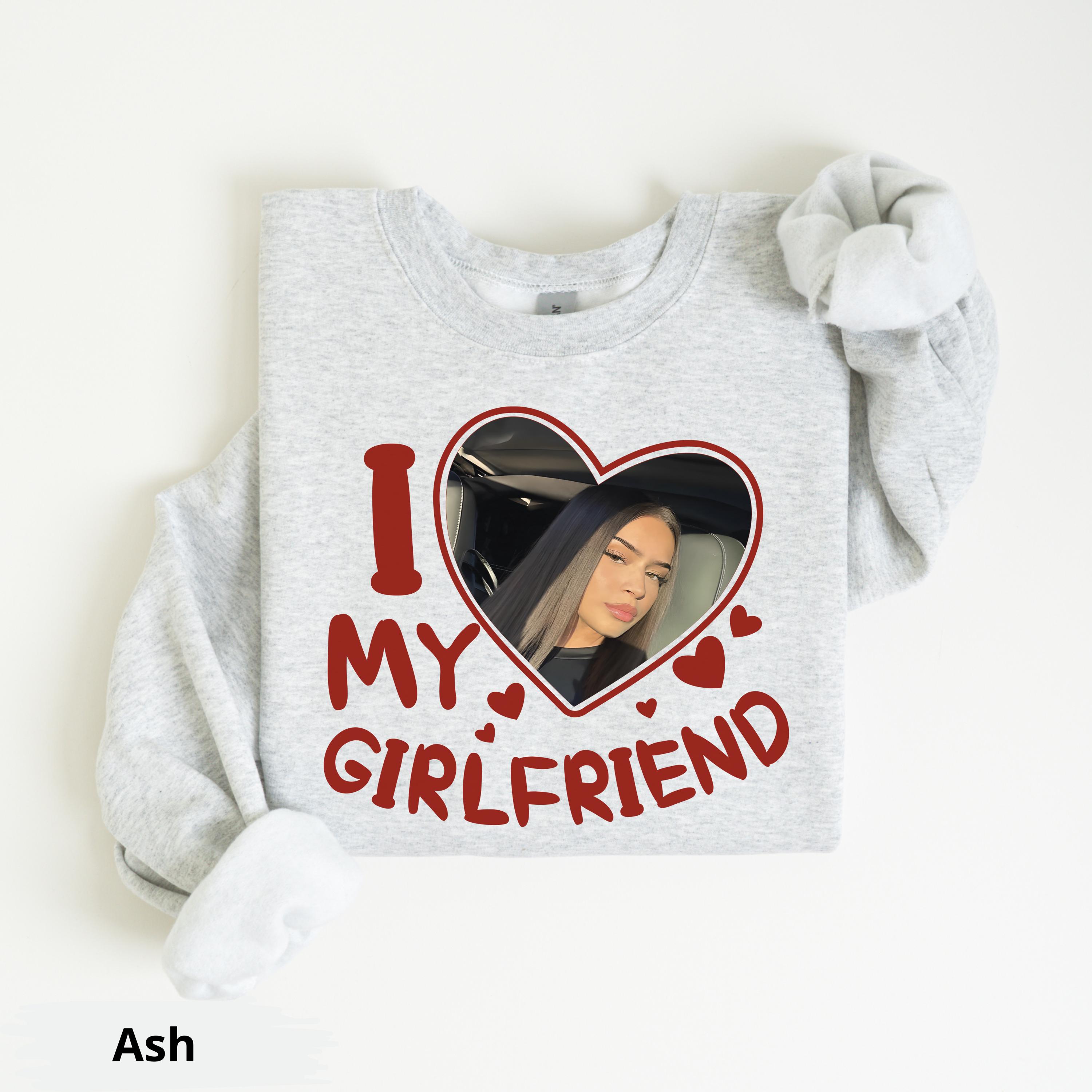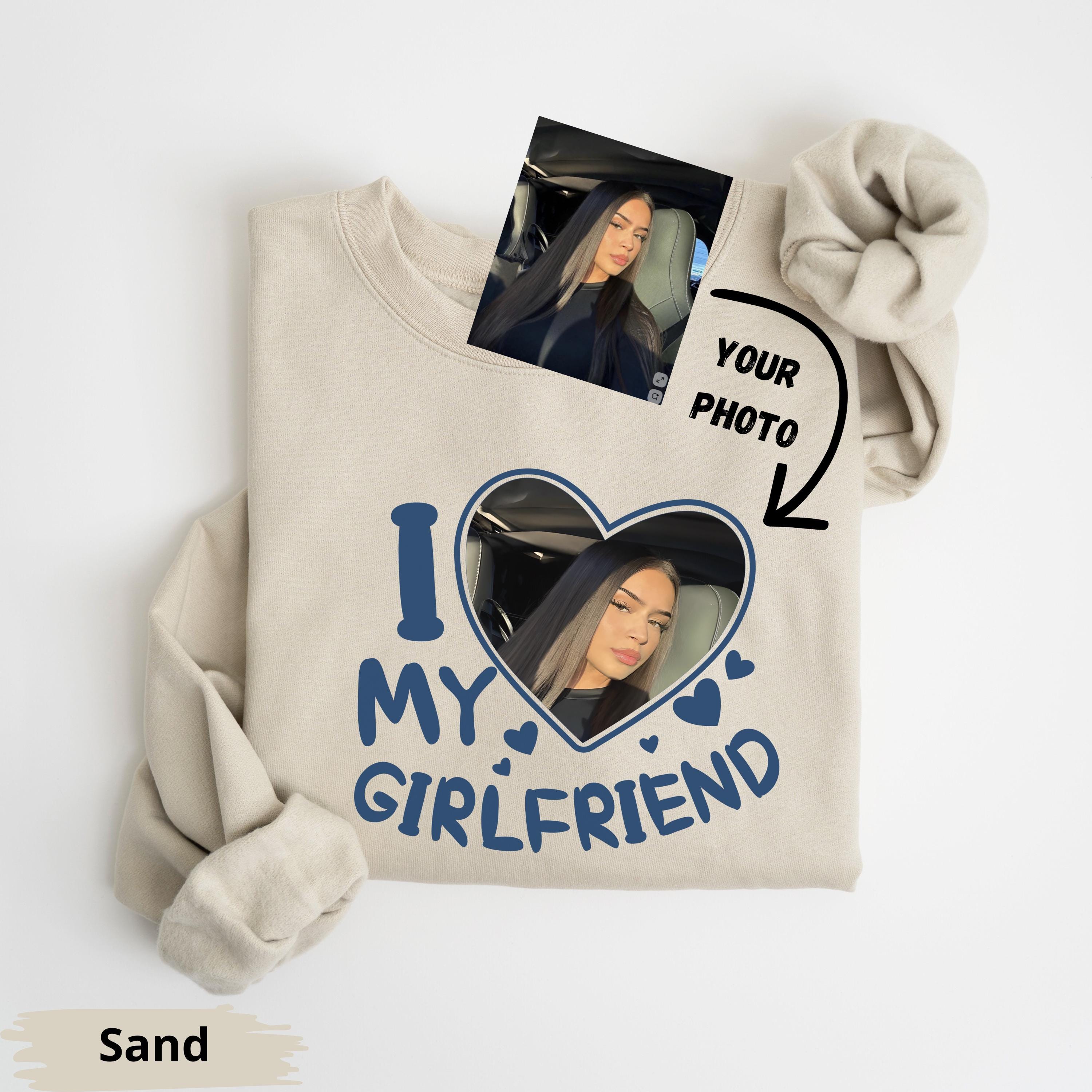 Surprise your partner with the ultimate romantic gesture! Our custom photo I love my girlfriend shirt is the perfect way to wear your heart on your sleeve—literally. Whether you are looking for a unique personalized picture hoodie for a cozy night in or a trendy custom girlfriend sweatshirt for daily wear, this design is made to celebrate your special bond.