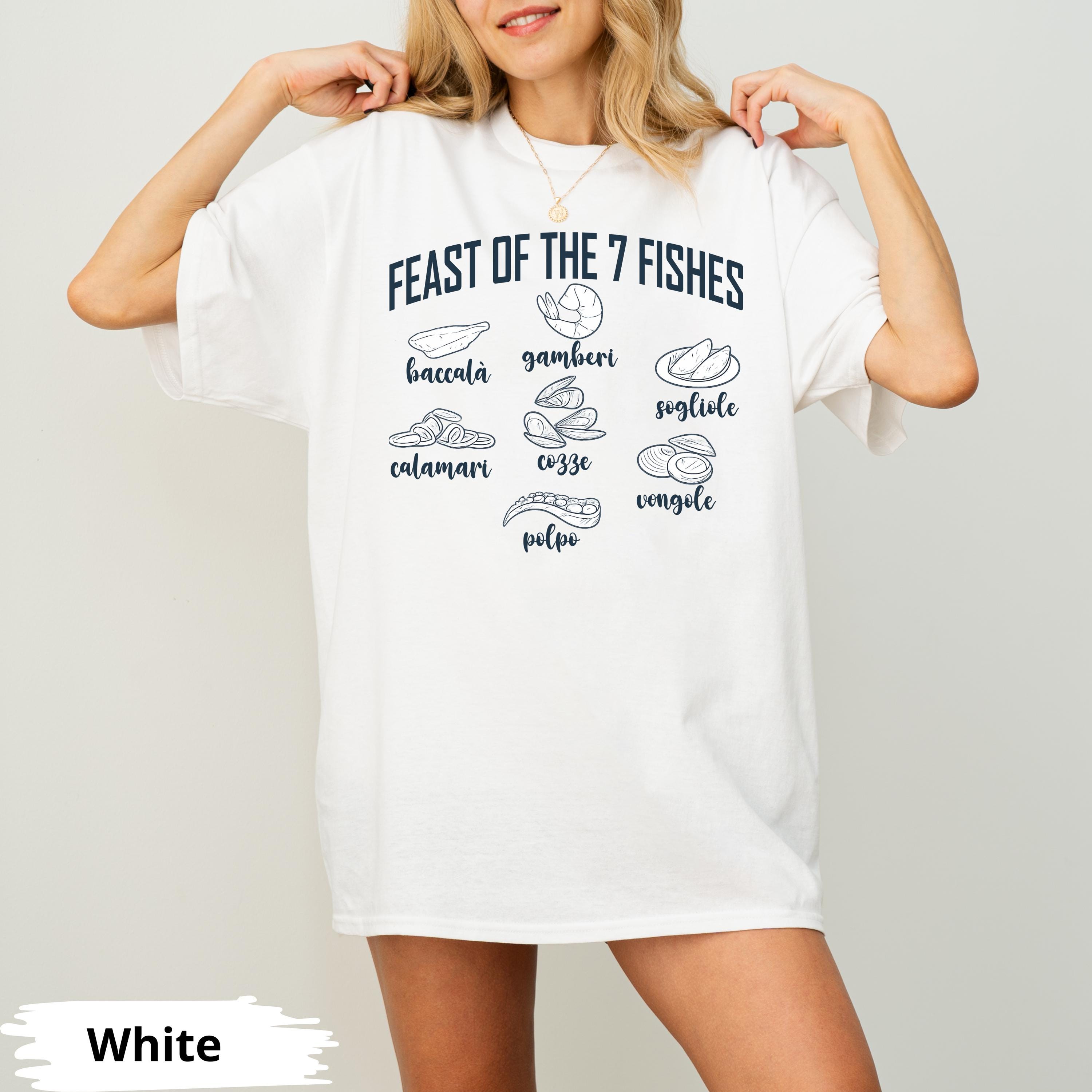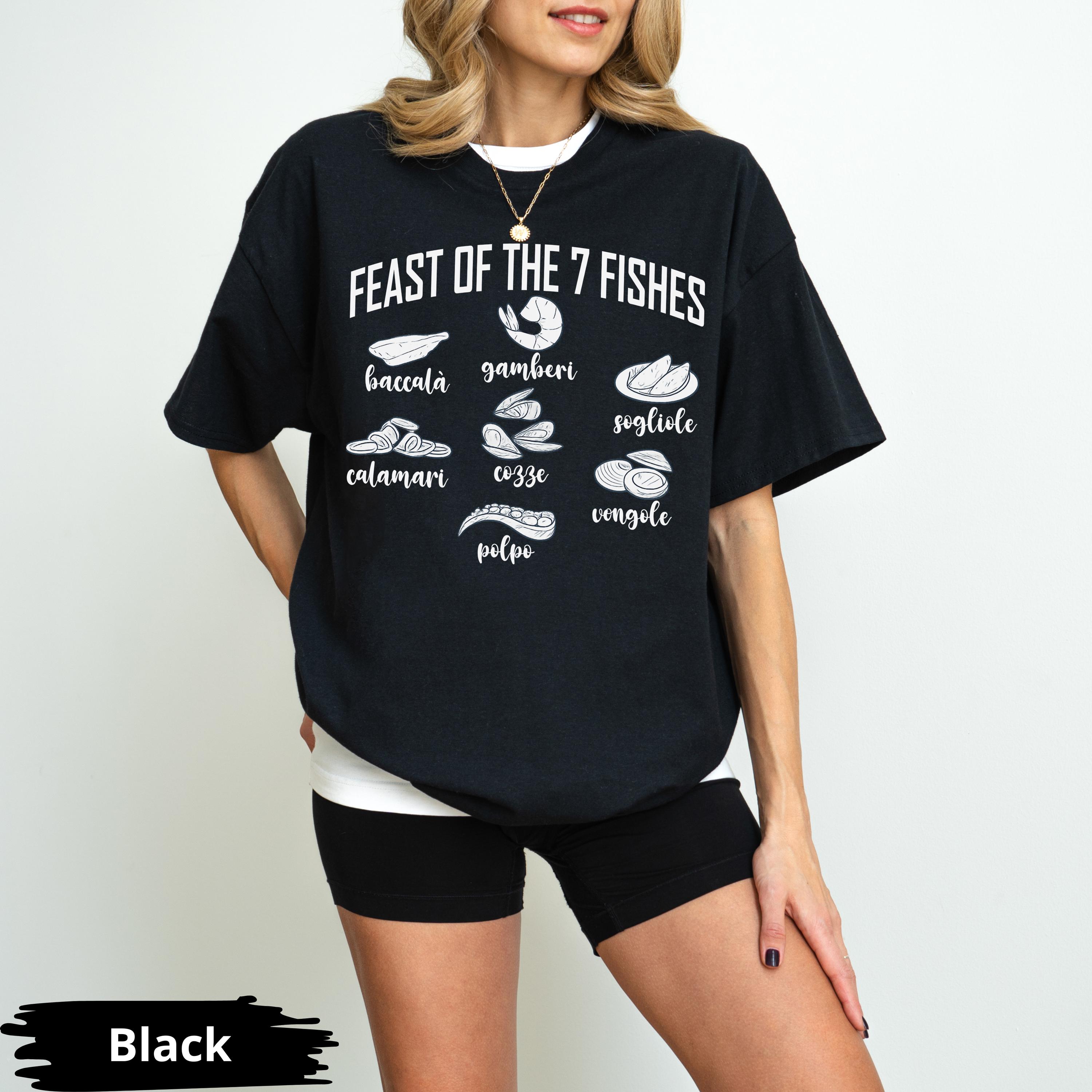 The design features detailed illustrations of the traditional seven seafood dishes—from Baccalà and Calamari to Vongole and Polpo—making it a great conversation starter at the dinner table. Available as a comfortable t-shirt, cozy sweatshirt, or warm hoodie, this holiday outfit ensures you stay festive while enjoying the seafood feast. It also makes a thoughtful and unique gift for the foodie in your life, your Nonna, or anyone who loves Italian traditions.
