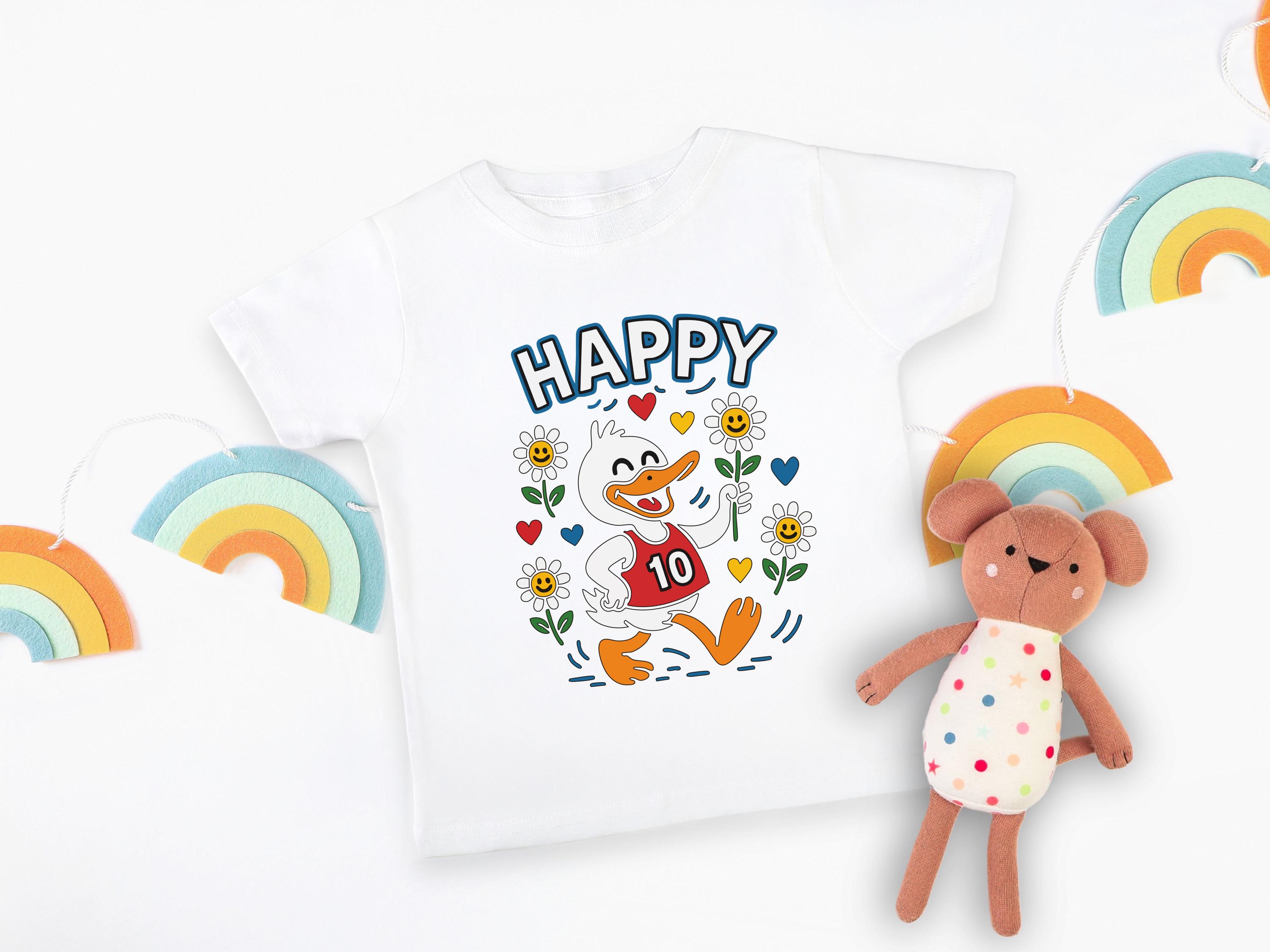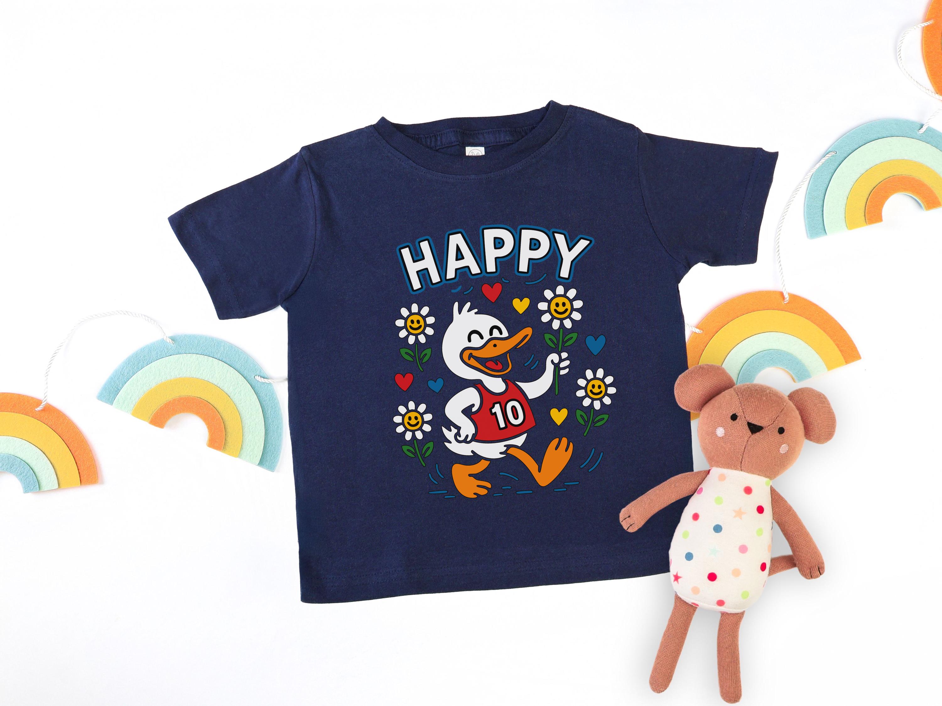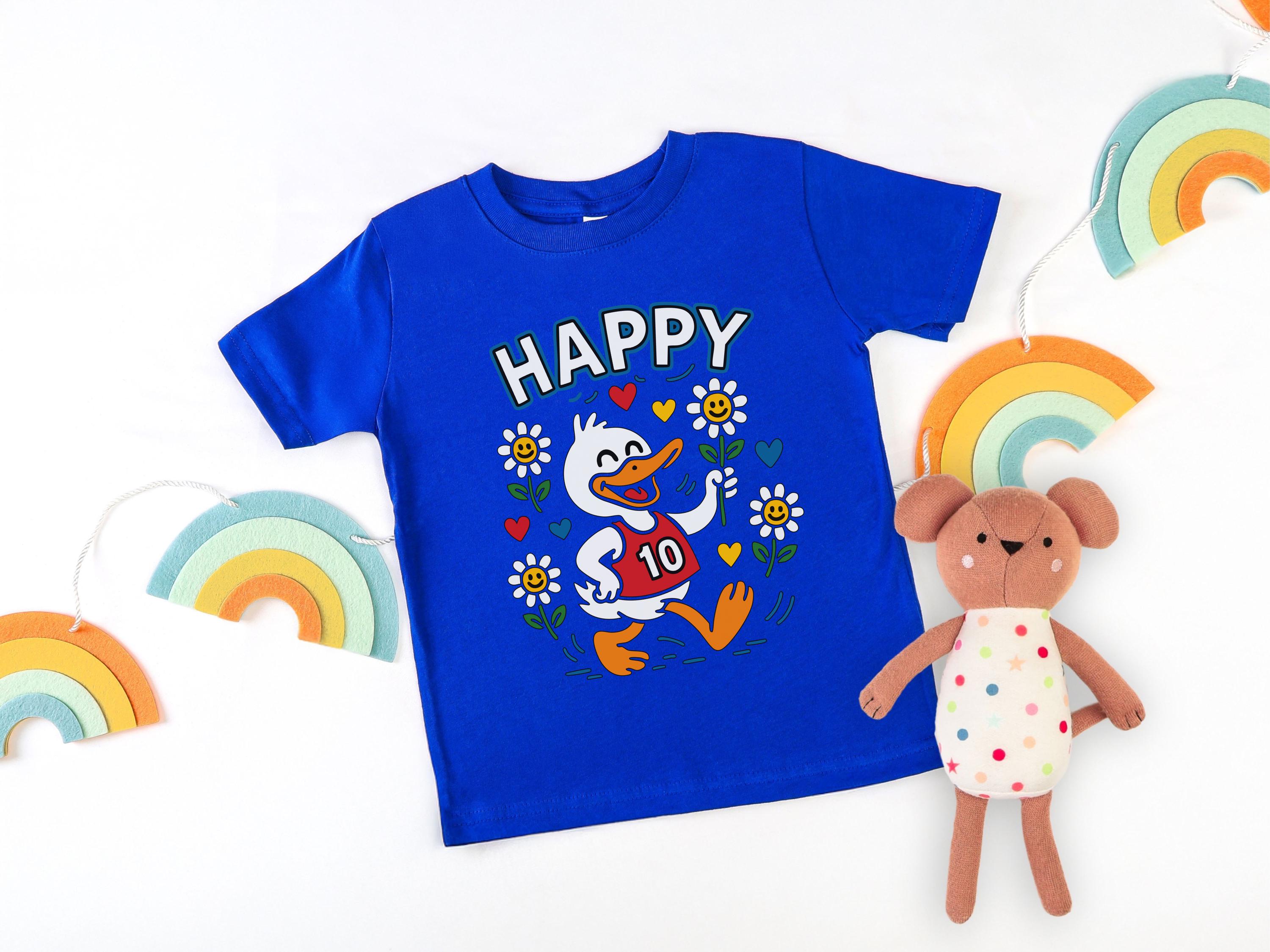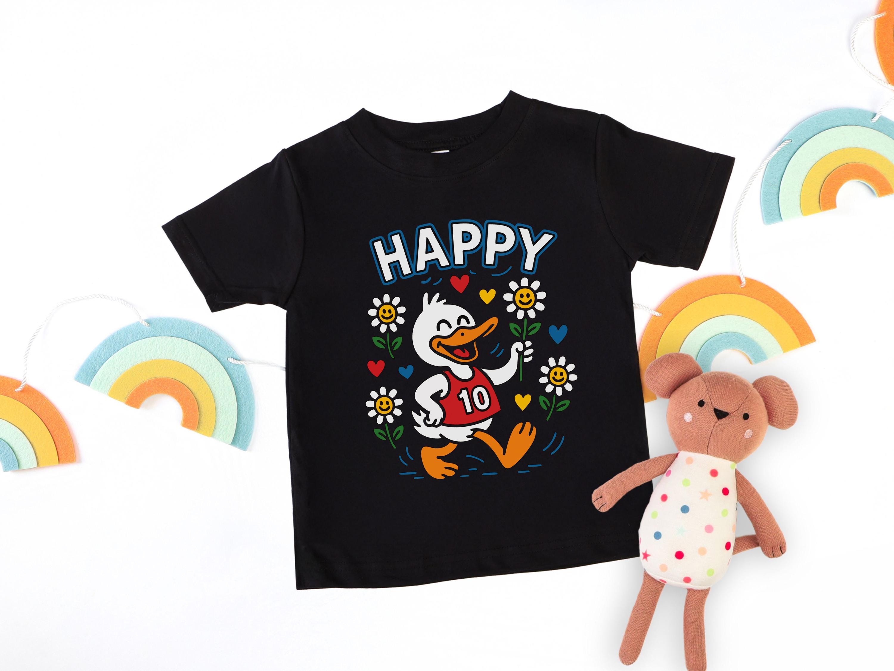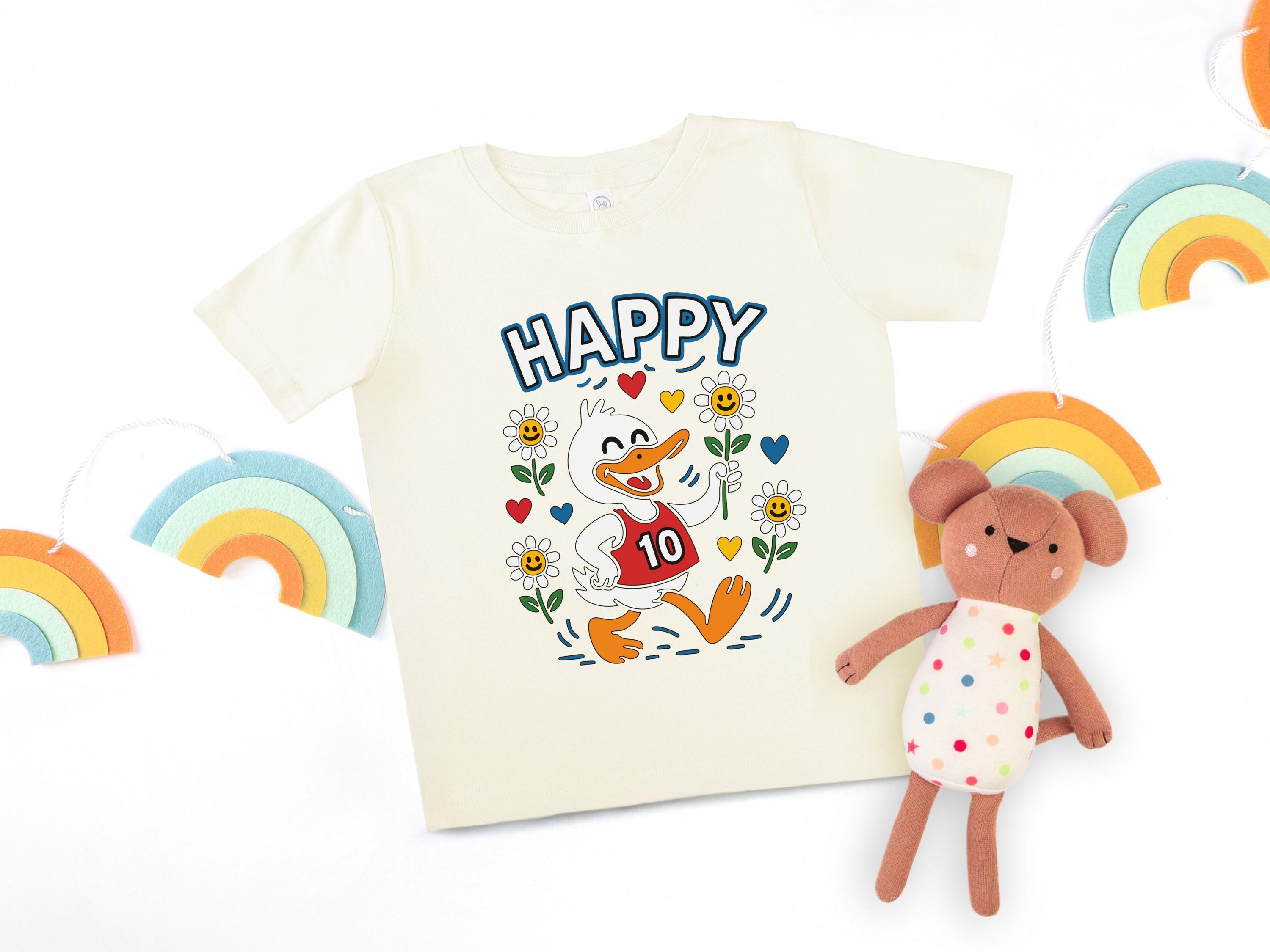 Celebrate a special double-digit milestone with this vibrant happy duck 10th birthday youth shirt. This cheerful retro animal design is perfect for toddlers and kids who love cute cartoons and bright wildflowers.